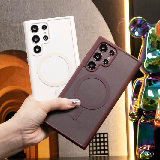 Transparent Magnetic Shockproof Hard Phone Case For Samsung Galaxy S24Ultra S24FE S23Ultra S23FE S22 Ultra S23 Plus Silicone Candy Color Edges Clear Acrylic Cover
