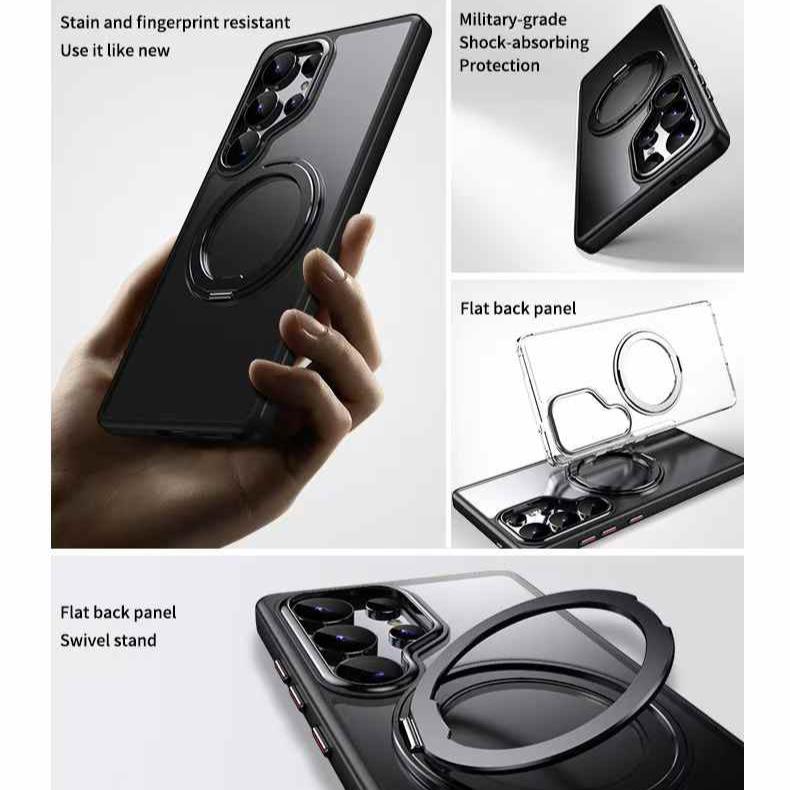 360 Degree Rotation Stand Holder Matte Ultra Clear Strong Shockproof Magnetic Phone Case Wireless Charging For Samsung S25Ultra S25 S24 S24Plus S24Ultra S23Ultra S23