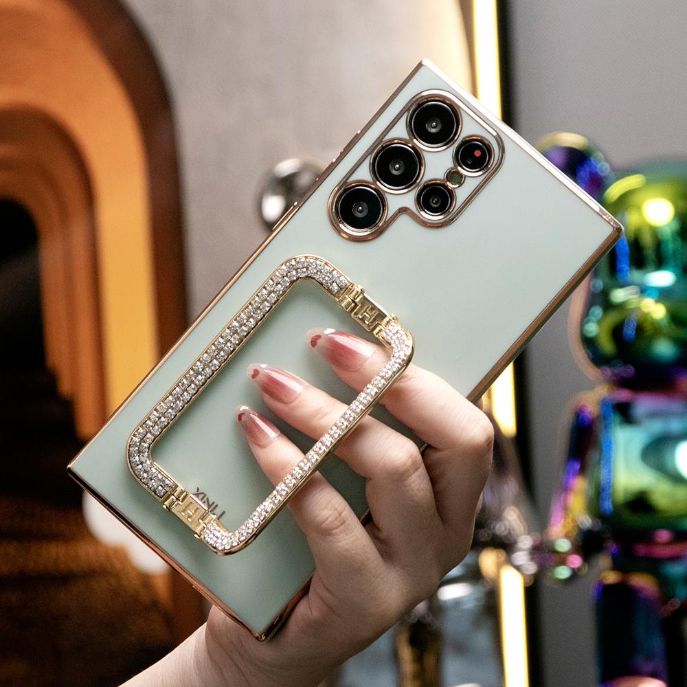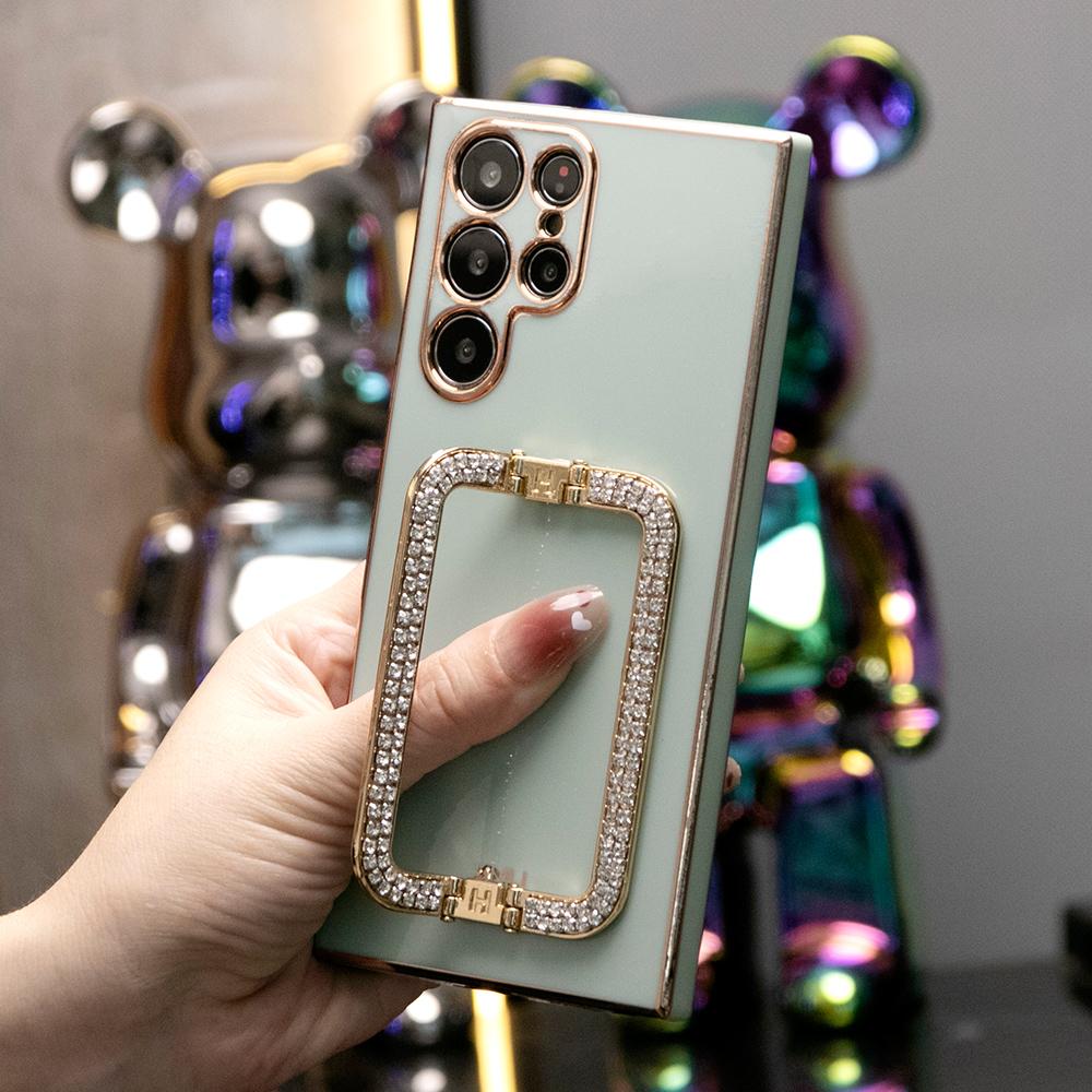 3D Crystal Square Holder Plating Phone Case for Samsung S25 S25Plus S25Ultra S24 S24FE S24Plus S24Ultra