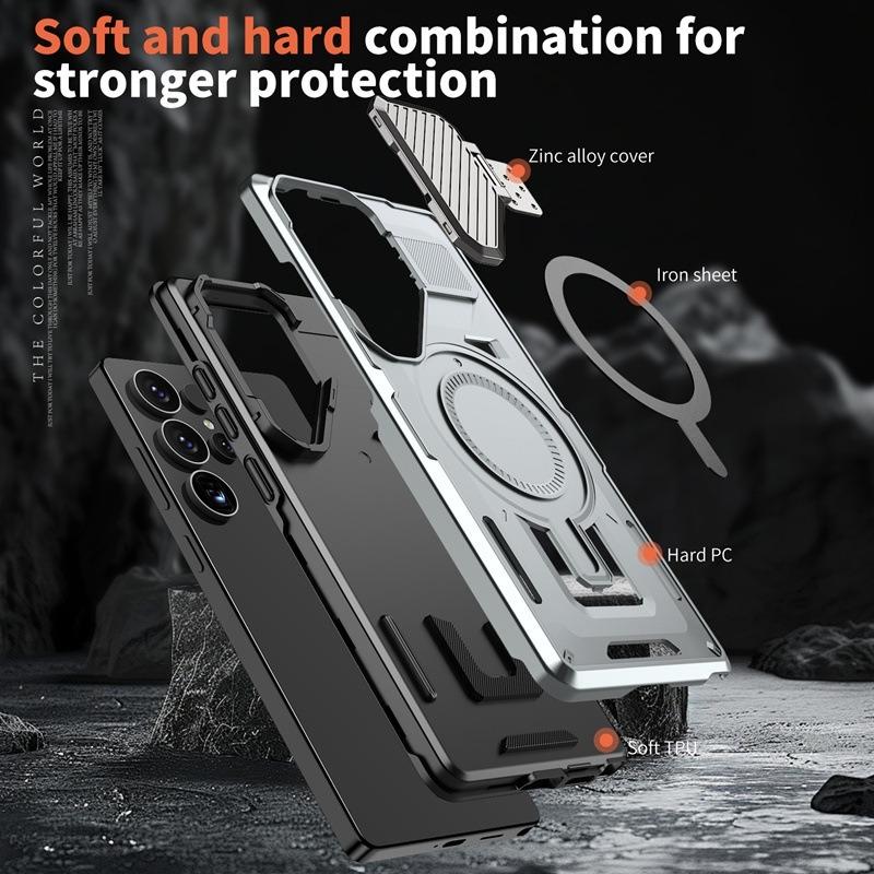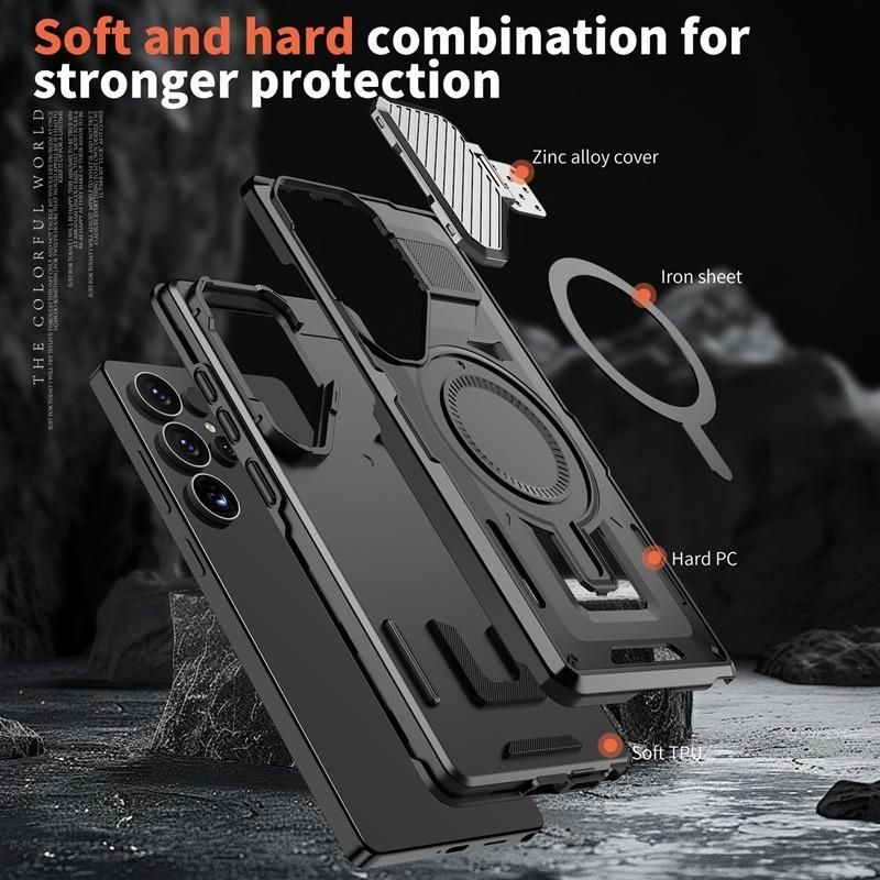 Anti-Dust Anti-Fall Heavy Duty Protection Shockproof Magnetic Phone Case With Camera Kickstand for Samsung S25Ultra S24 S23FE S23 A06 A05 A16 A15 A25 A35 A55 Bumper Matte Hard Cover