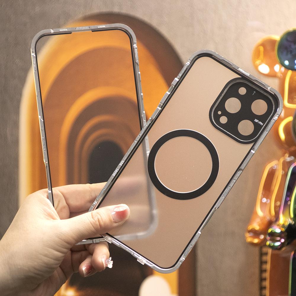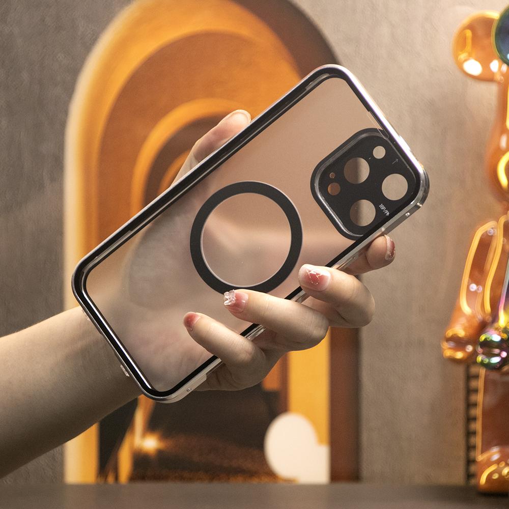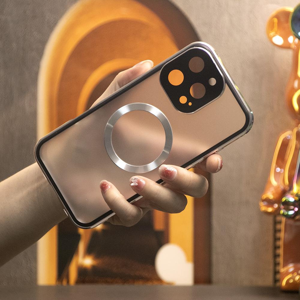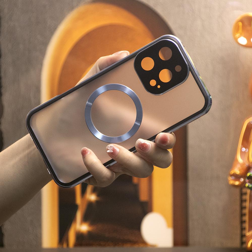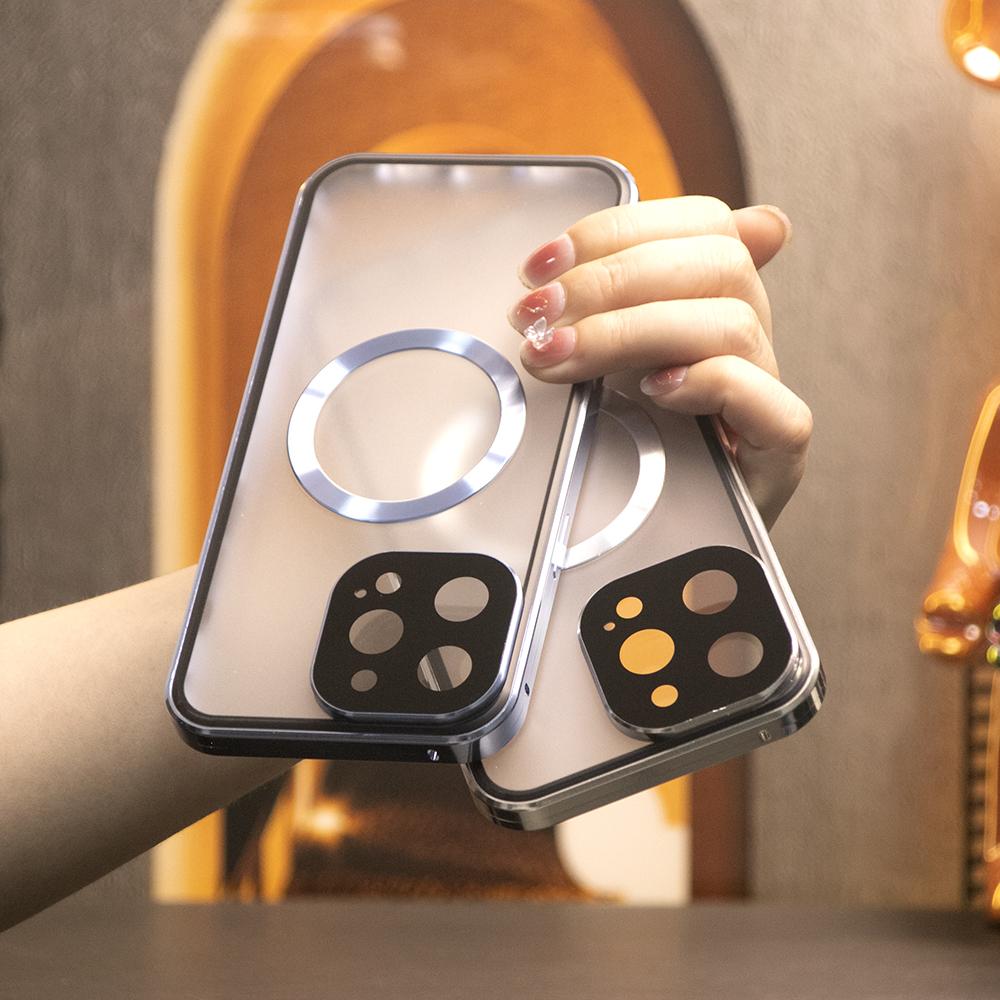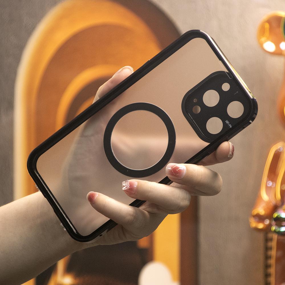 Double Sided HD Glass Matte Back Cover Aluminium Alloy For Magsafe Full Cover 360 Magnetic Ring High Definition Metal Case For iPhone 16ProMax 16 15 14 13 12 Pro Max Glass Full Cover