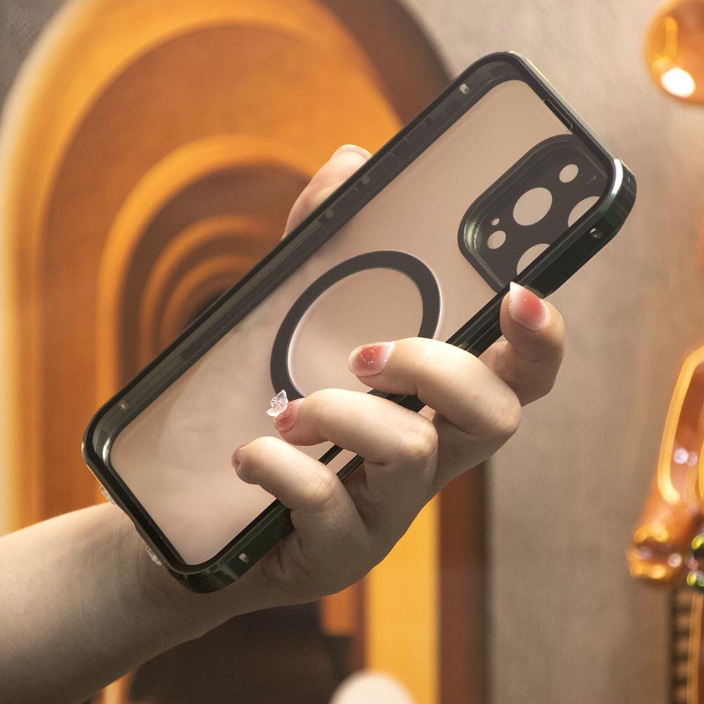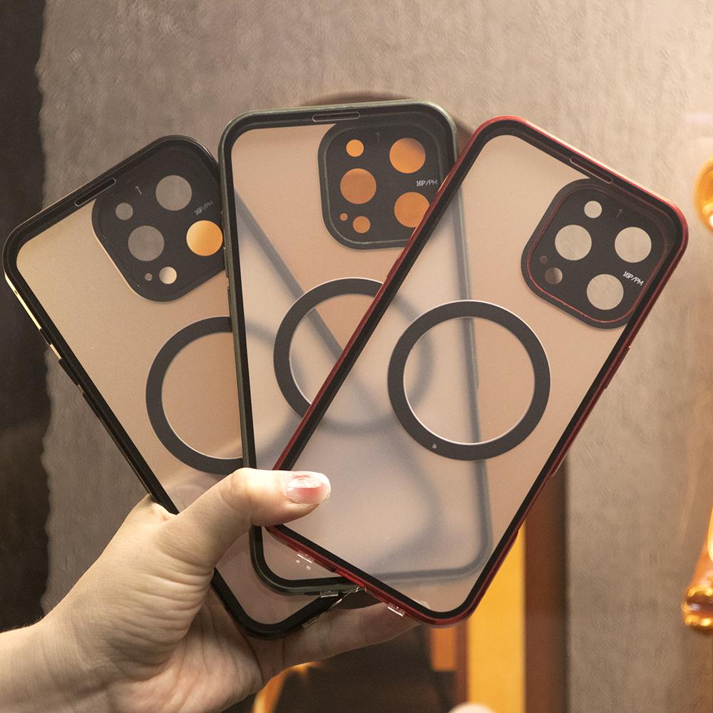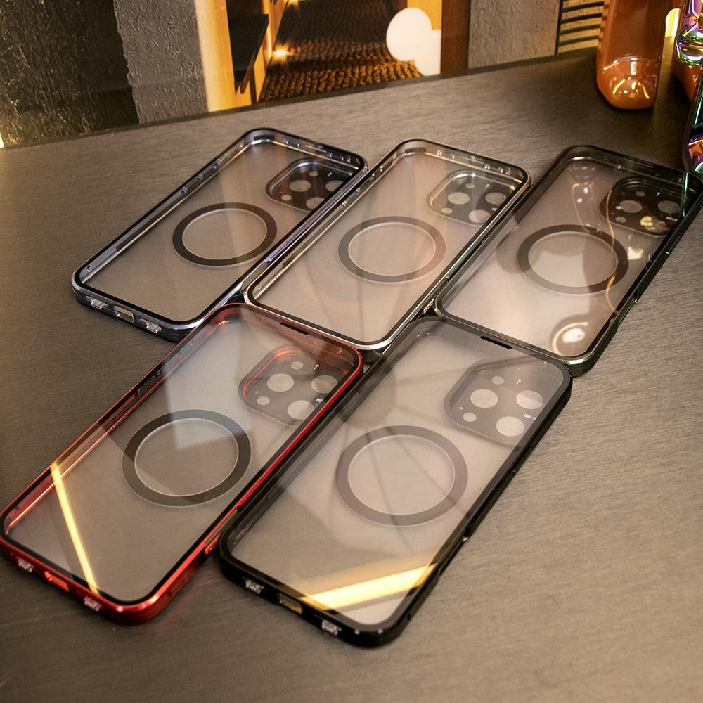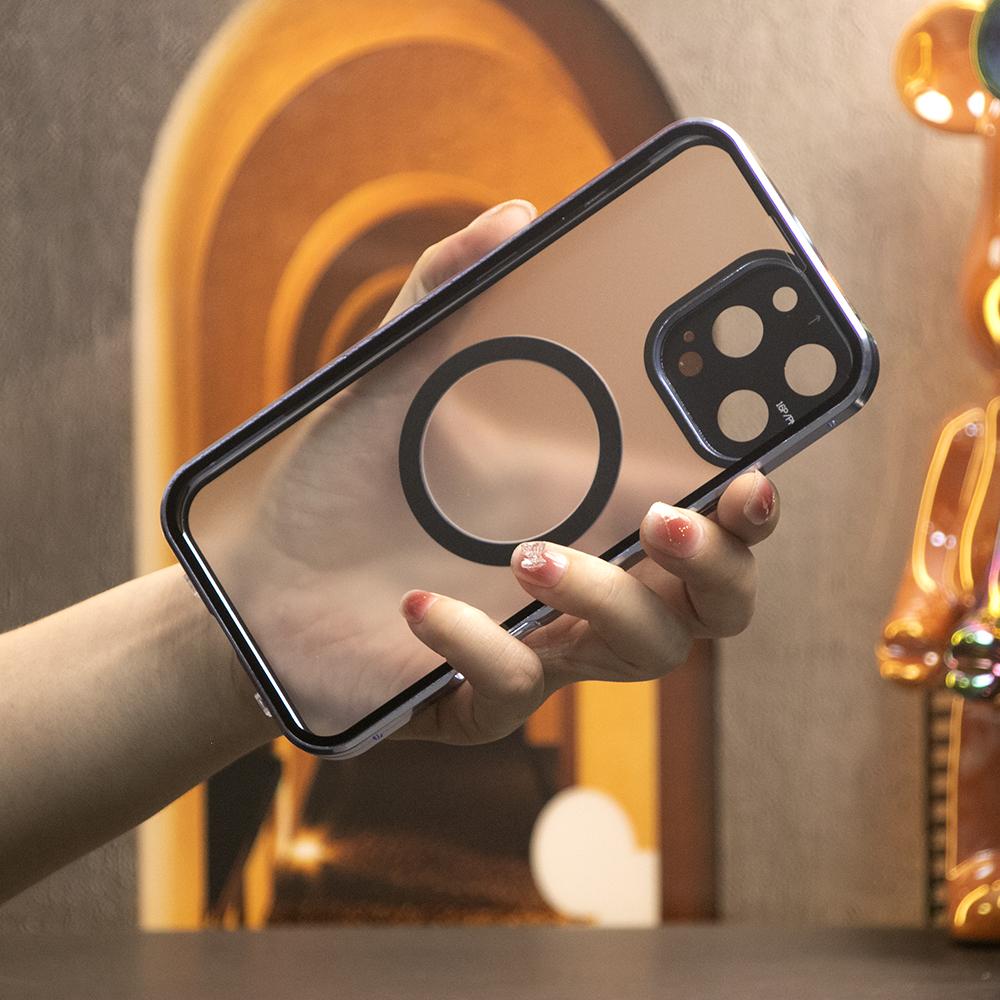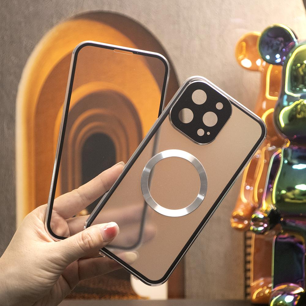 Double Sided HD Glass Matte Back Cover Aluminium Alloy For Magsafe Full Cover 360 Magnetic Ring High Definition Metal Case For iPhone 16ProMax 16 15 14 13 12 Pro Max Glass Full Cover