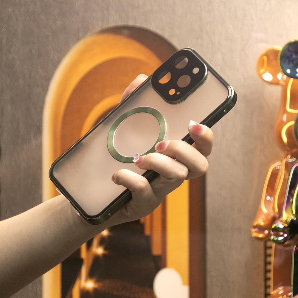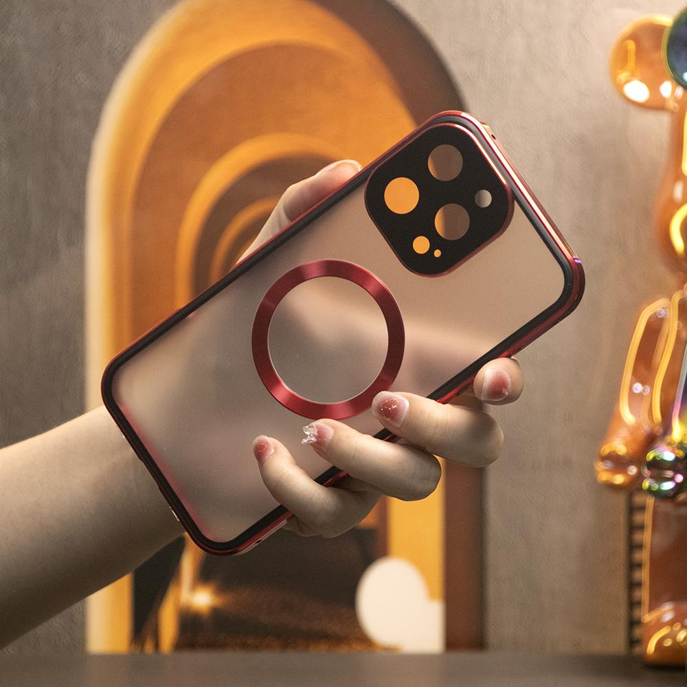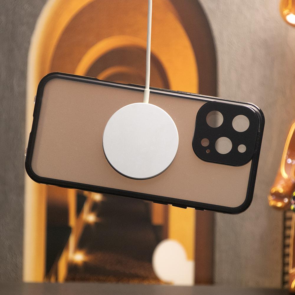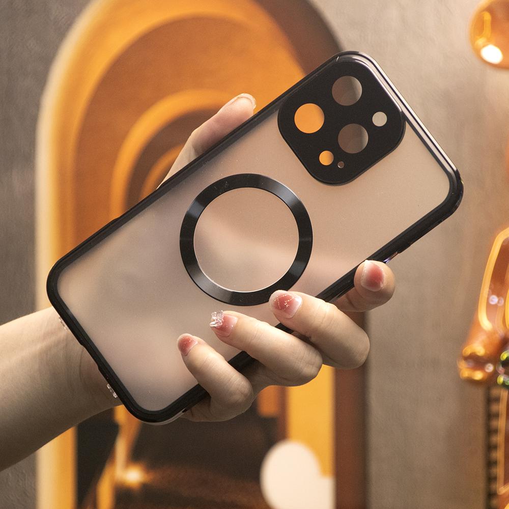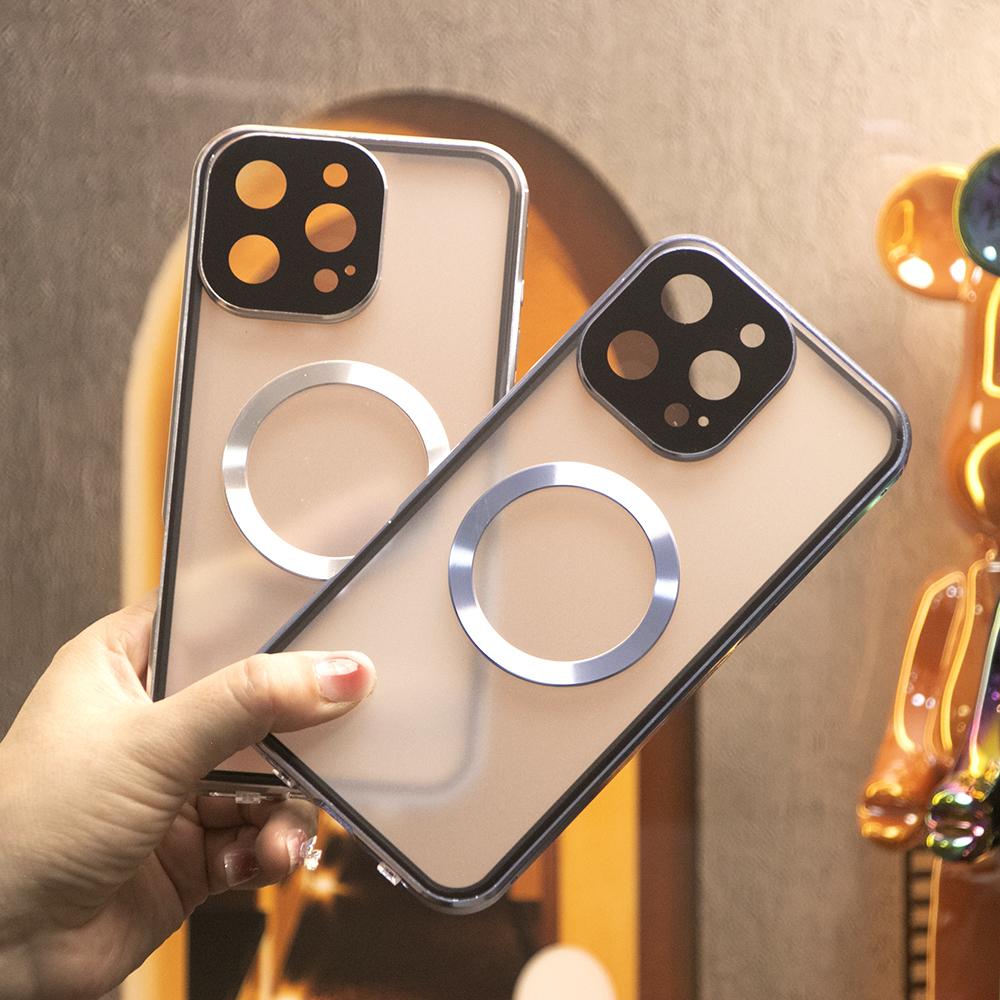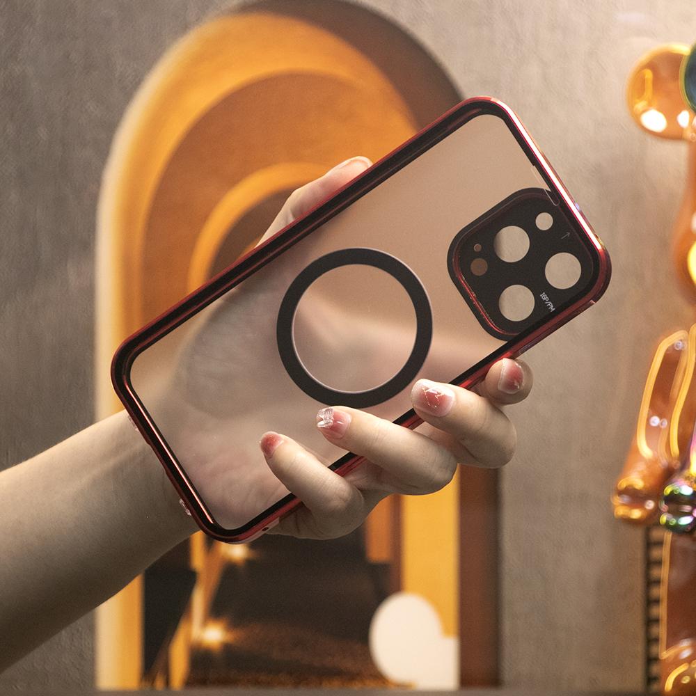 Double Sided HD Glass Matte Back Cover Aluminium Alloy For Magsafe Full Cover 360 Magnetic Ring High Definition Metal Case For iPhone 16ProMax 16 15 14 13 12 Pro Max Glass Full Cover