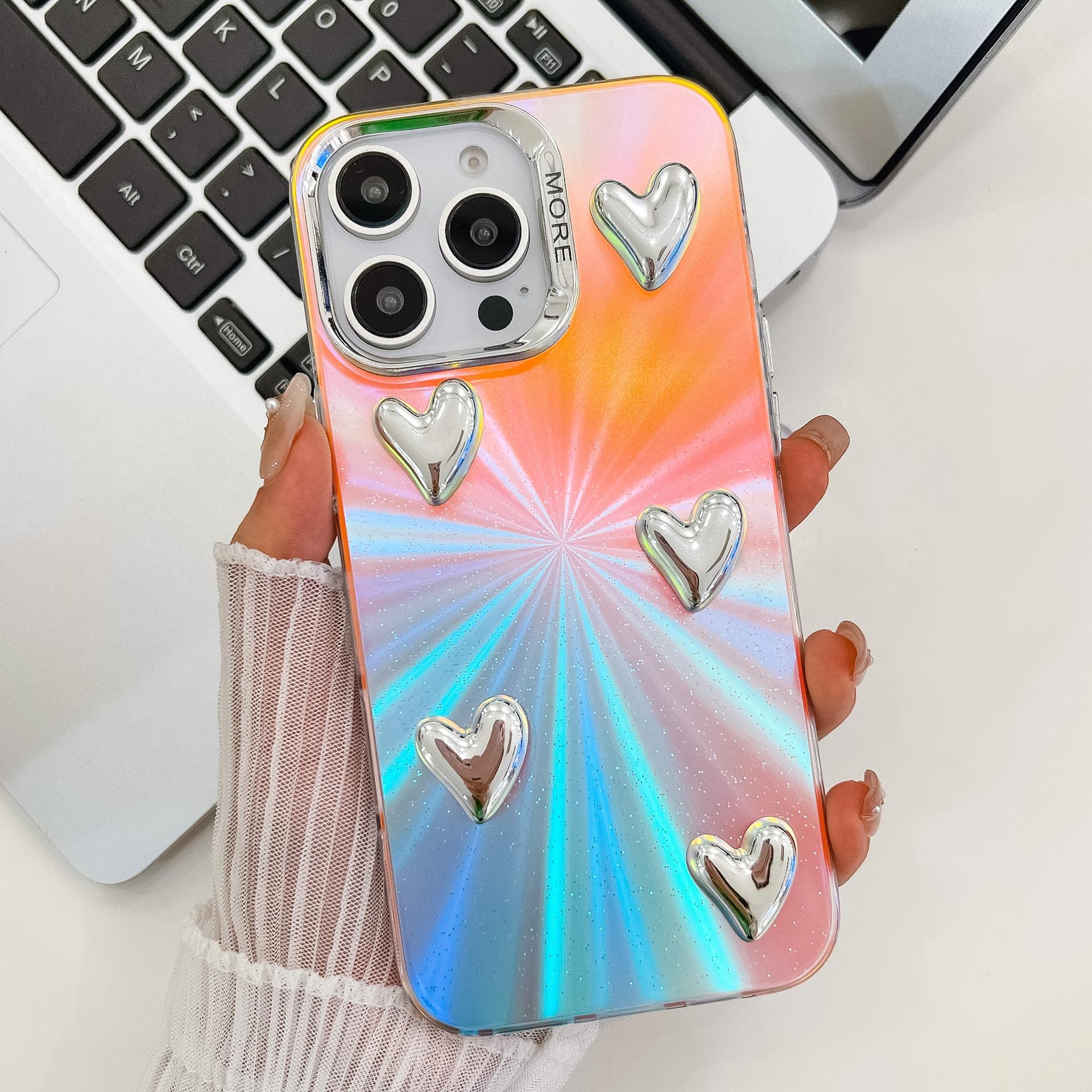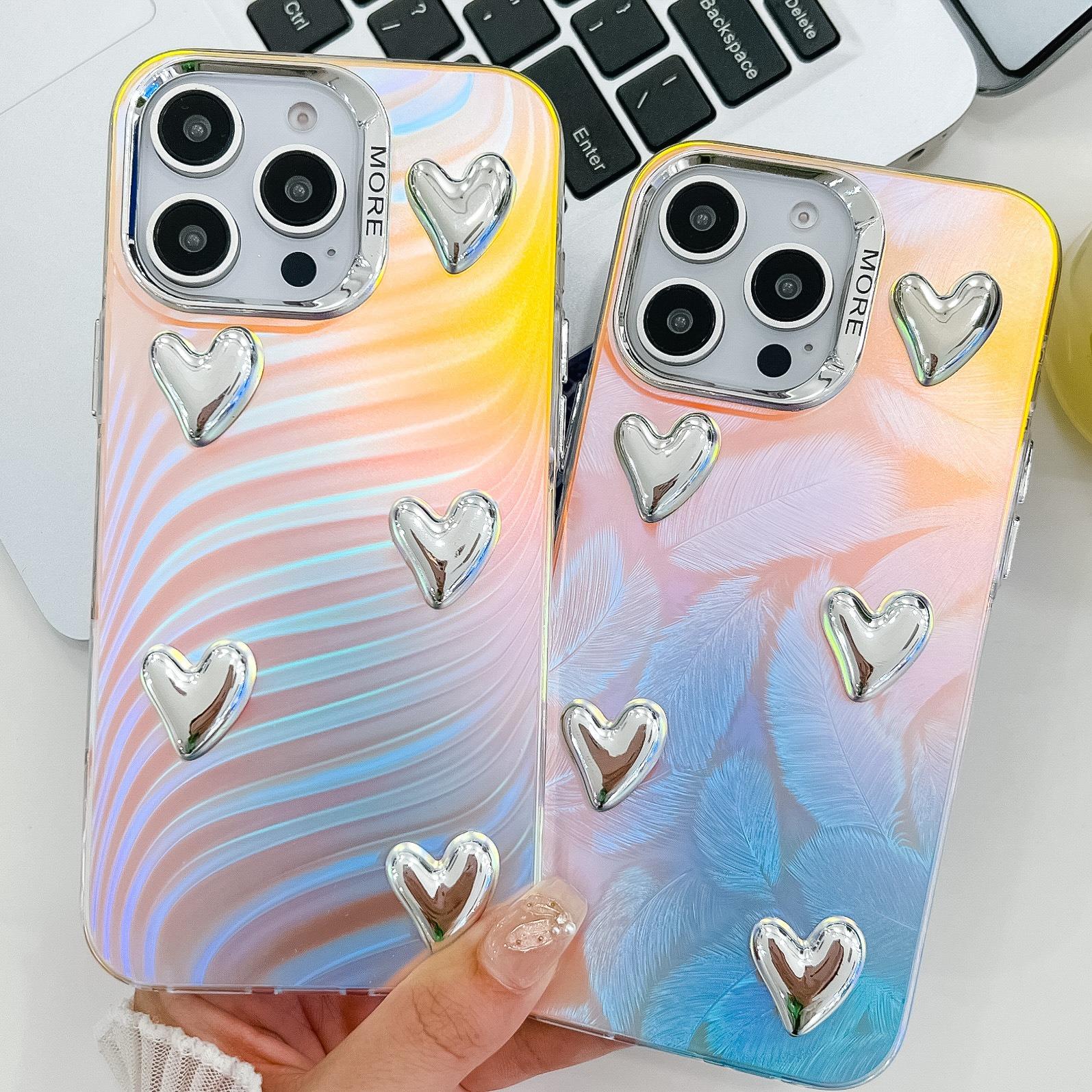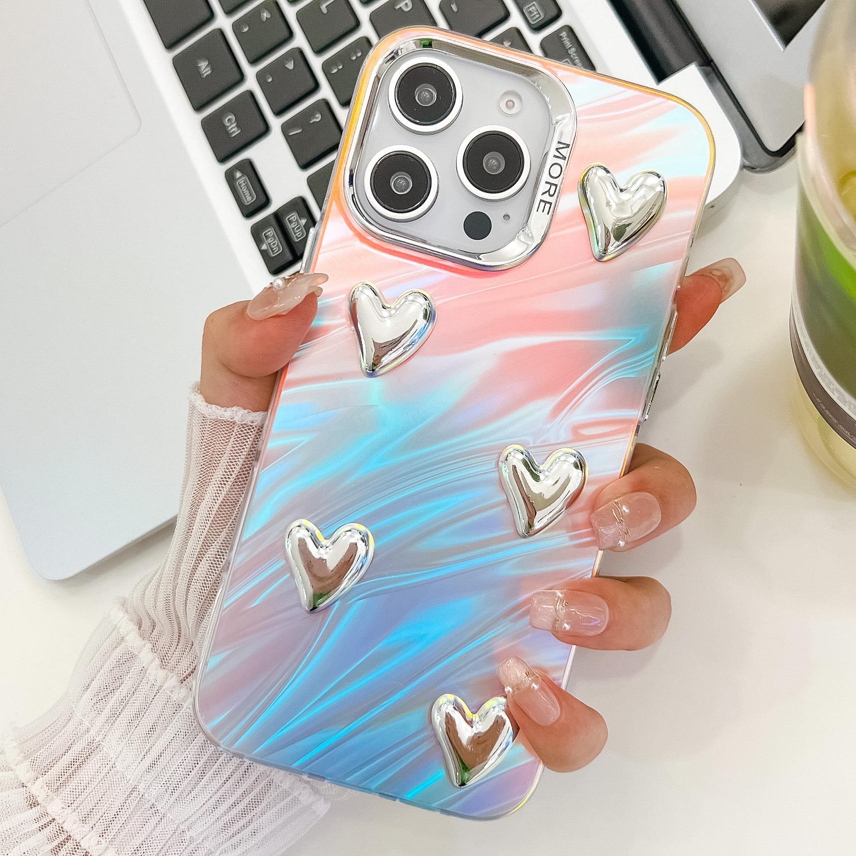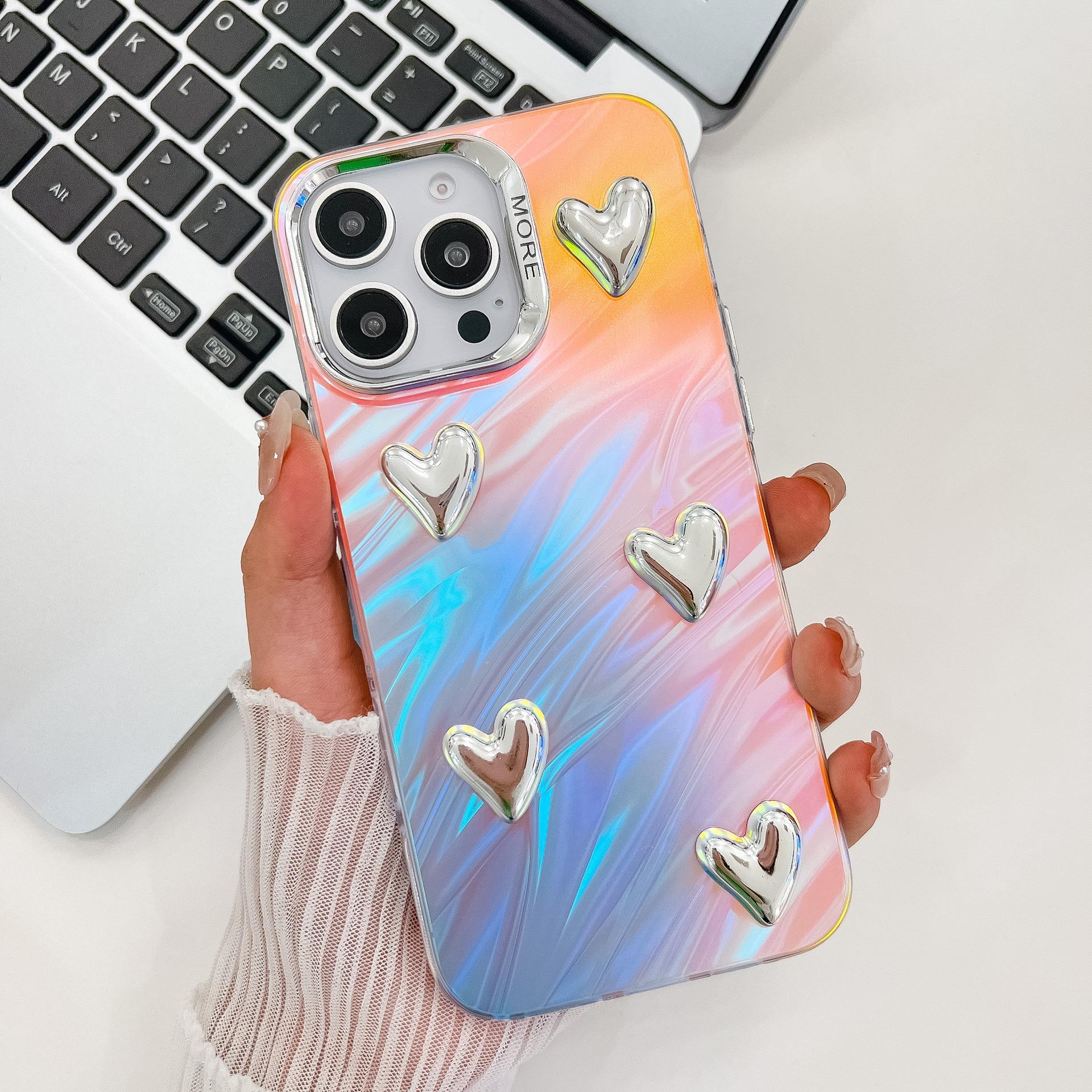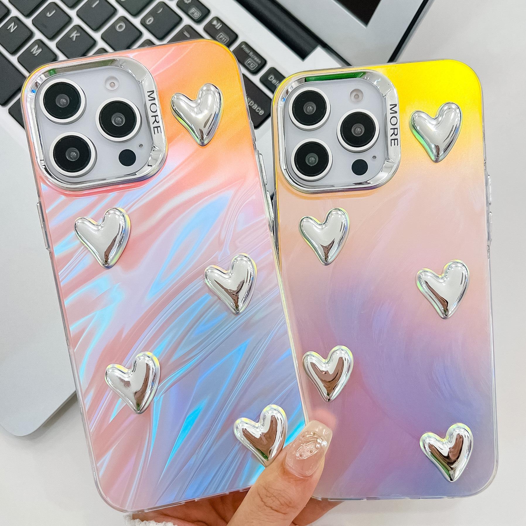 For iPhone 16ProMax 16 15 14 13 Phone Case, Electroplating Laser Love Heart Pattern Acrylic Slim, Camera Protection Non-Yellowing Hard Cover