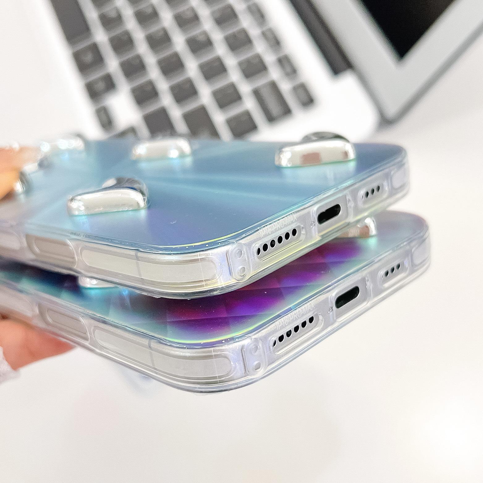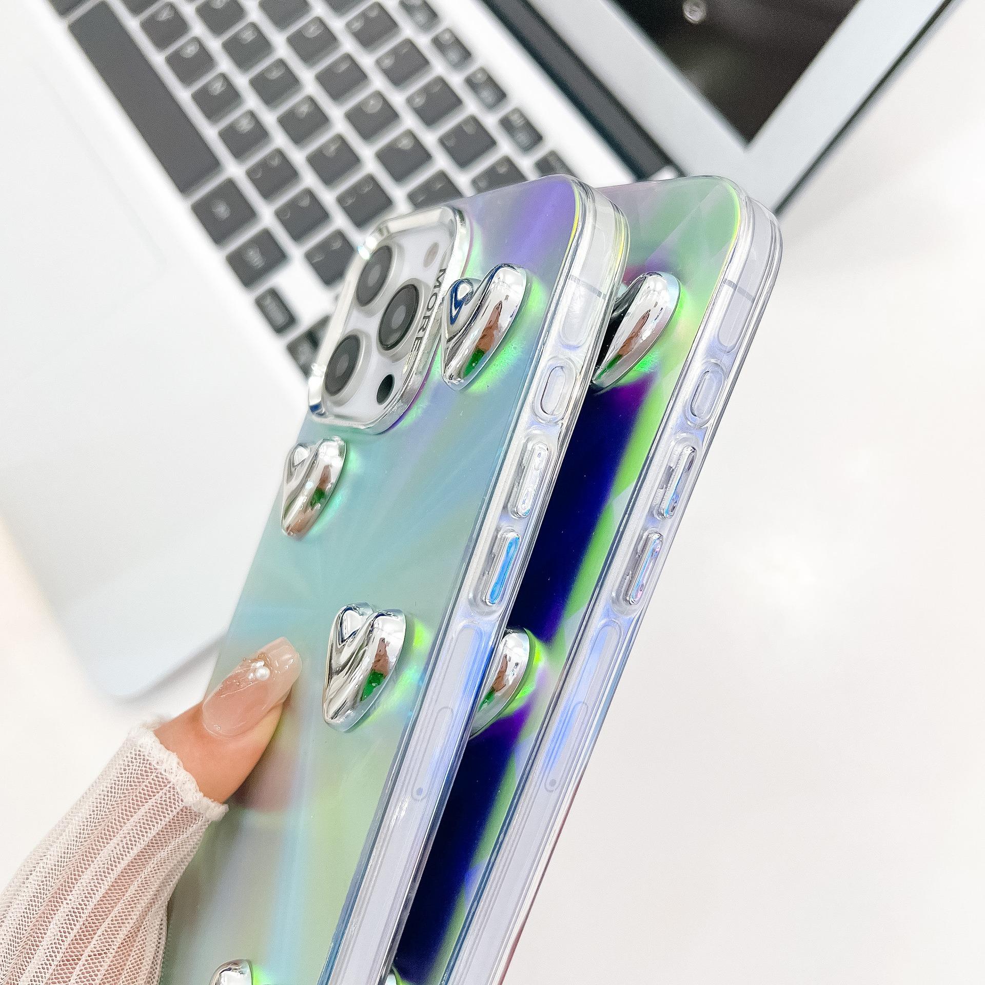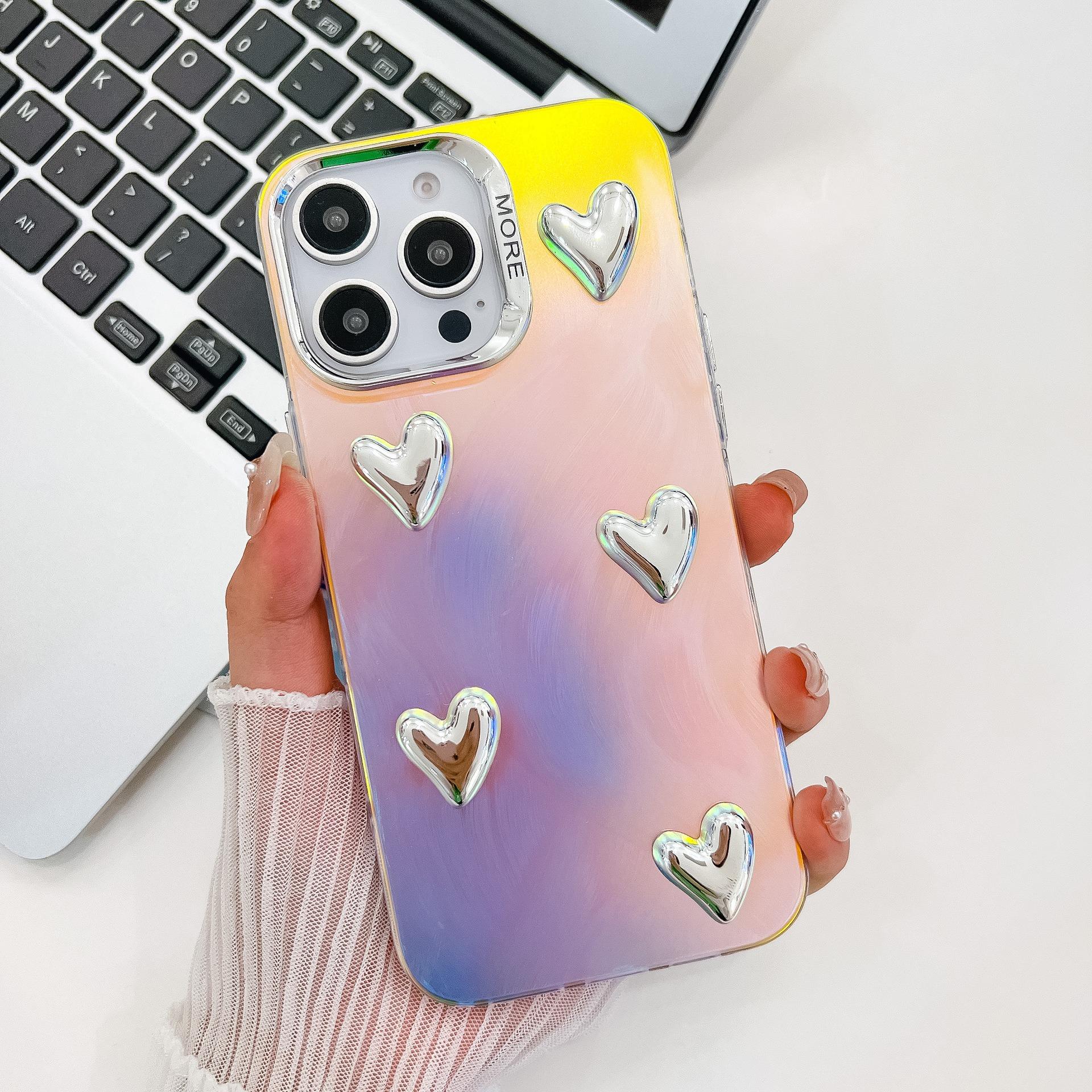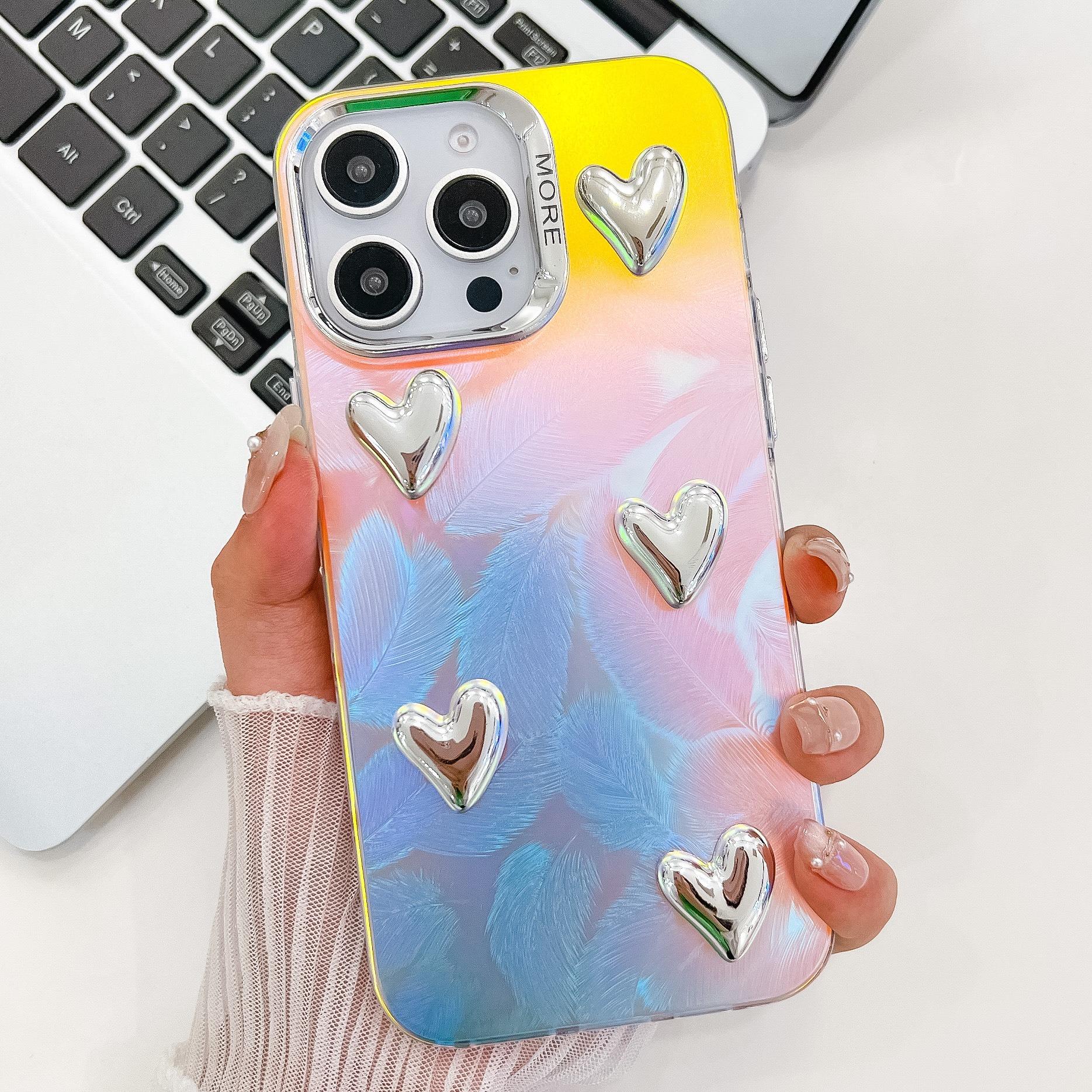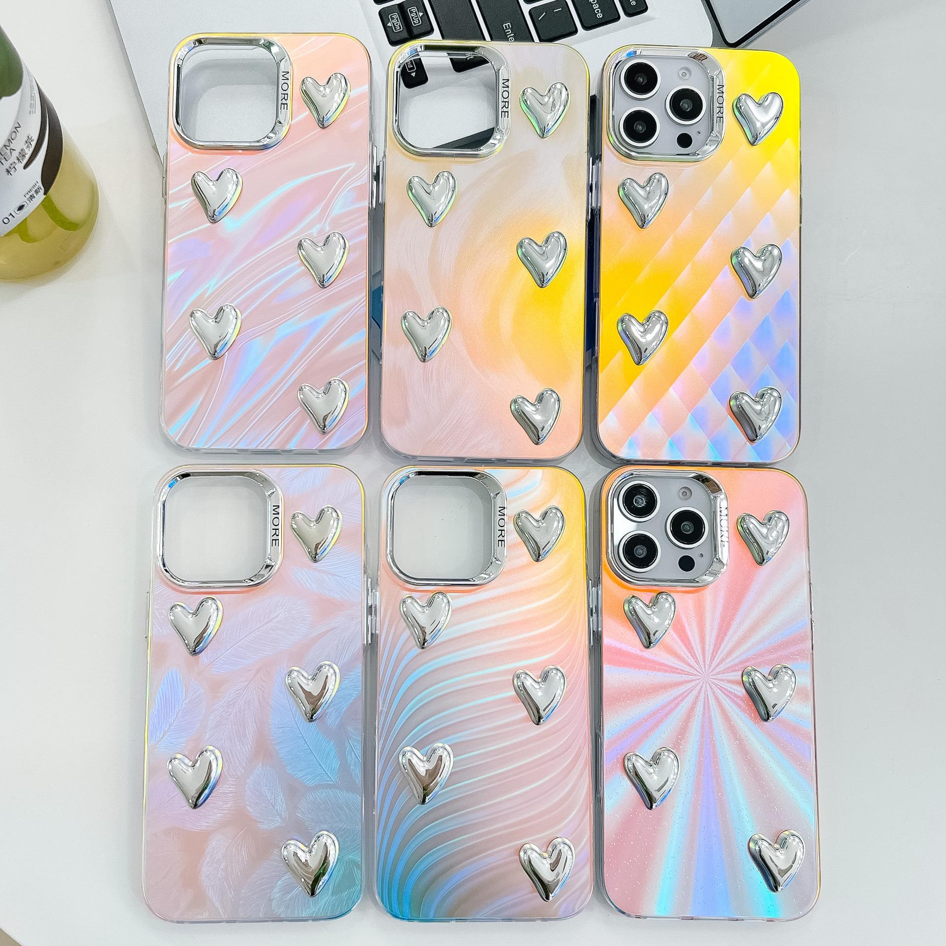 For iPhone 16ProMax 16 15 14 13 Phone Case, Electroplating Laser Love Heart Pattern Acrylic Slim, Camera Protection Non-Yellowing Hard Cover