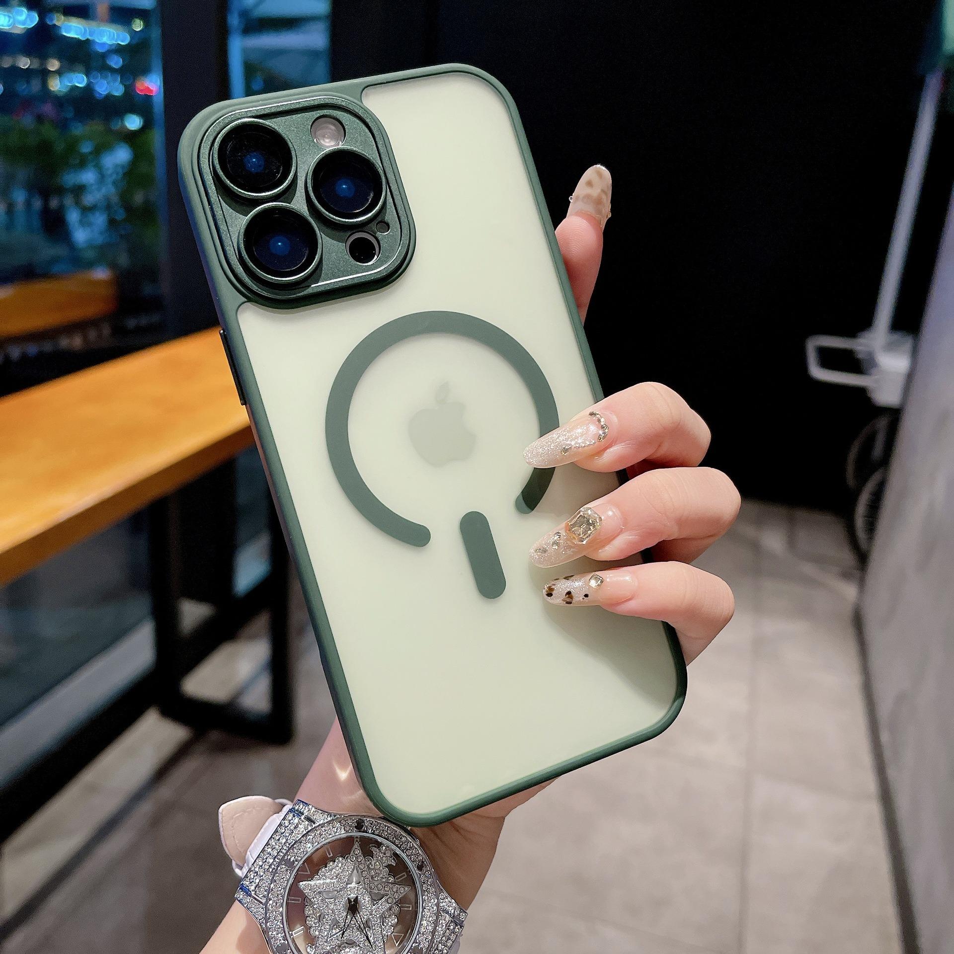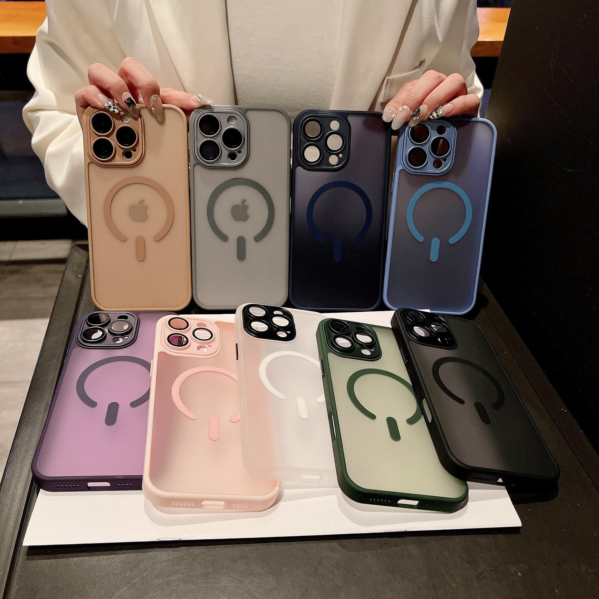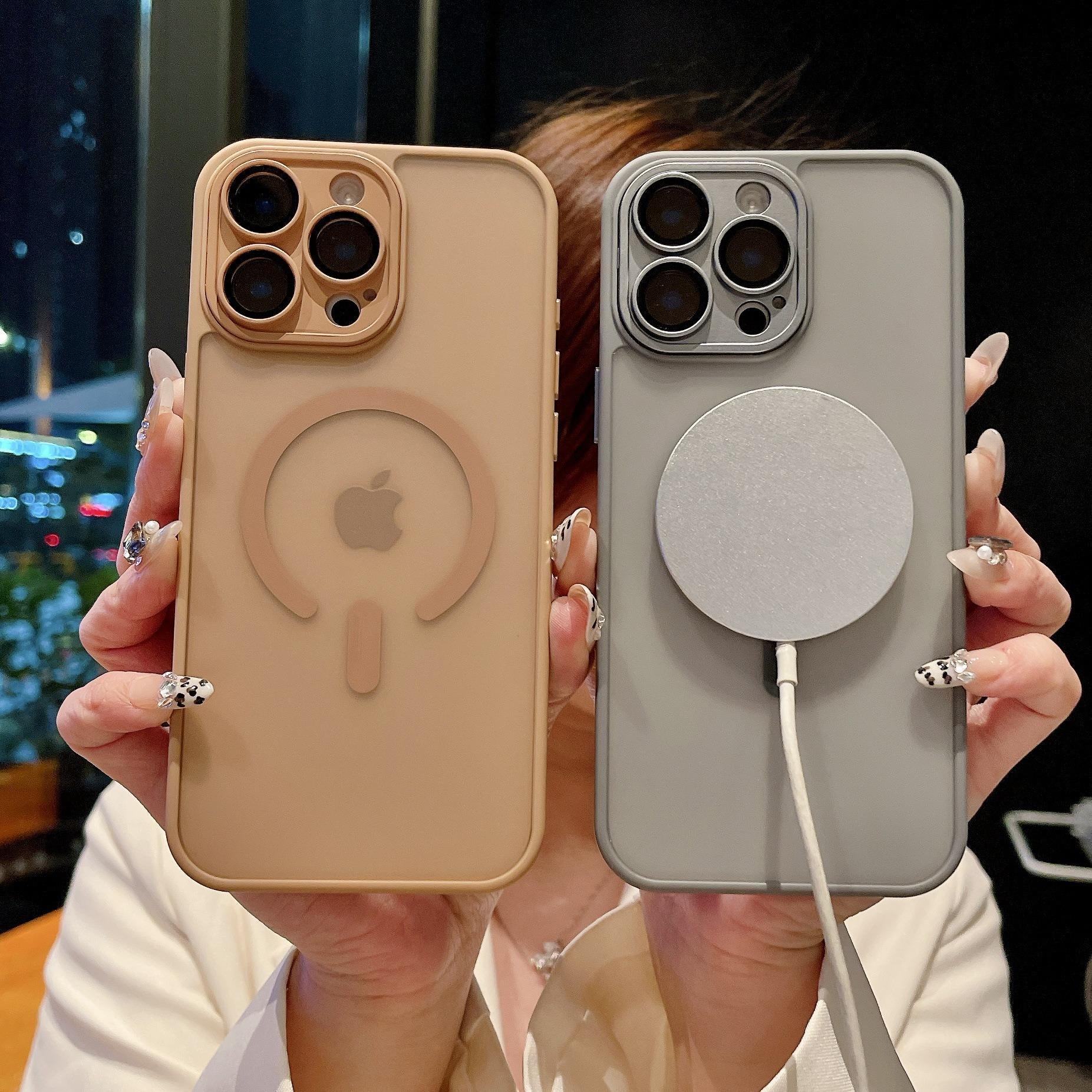 For iPhone 16ProMax 16 15 14 13 Phone Case, Matte Transparent C Pattern Magnetic Acrylic Slim, Camera Len Protector Cover Protection Hard Full Cover