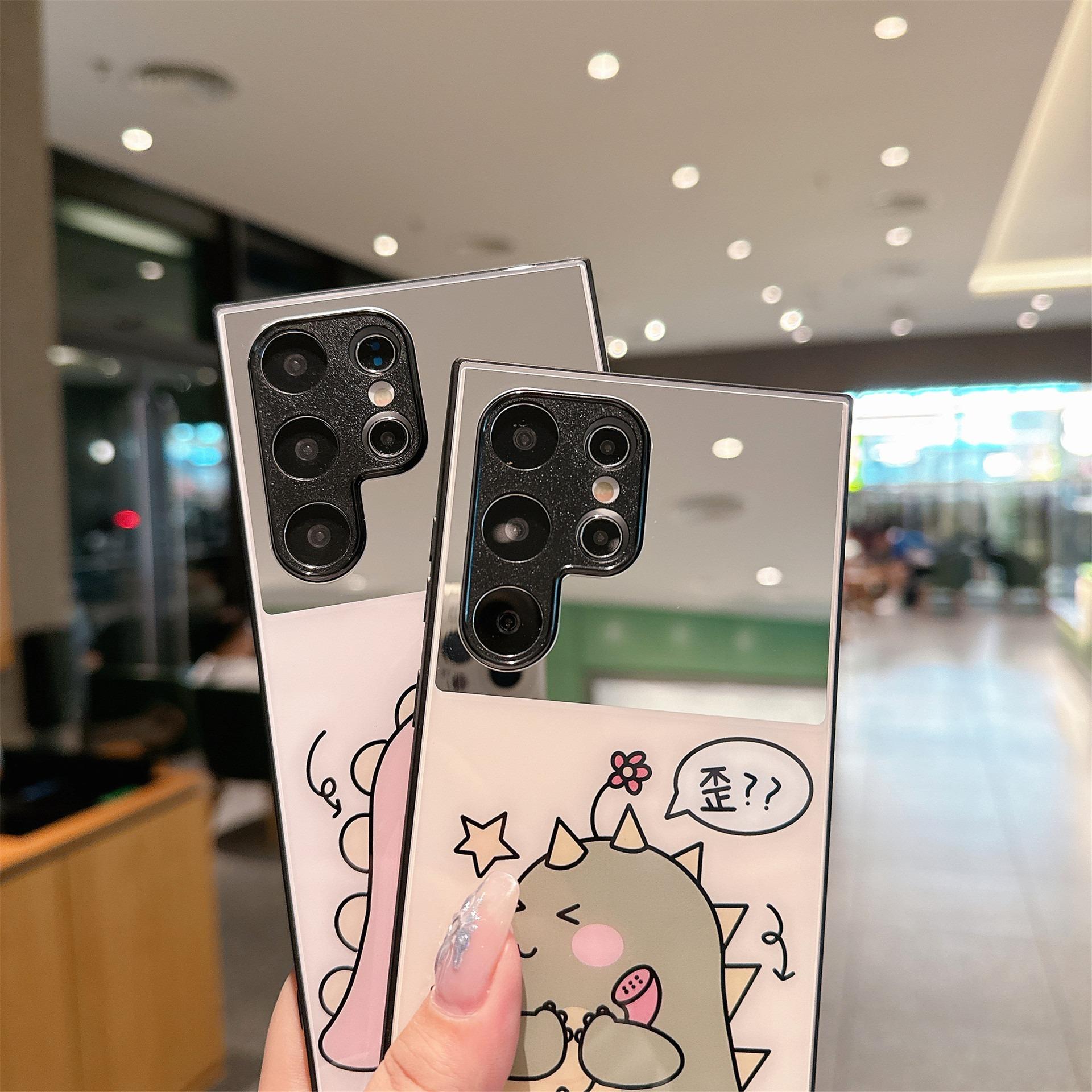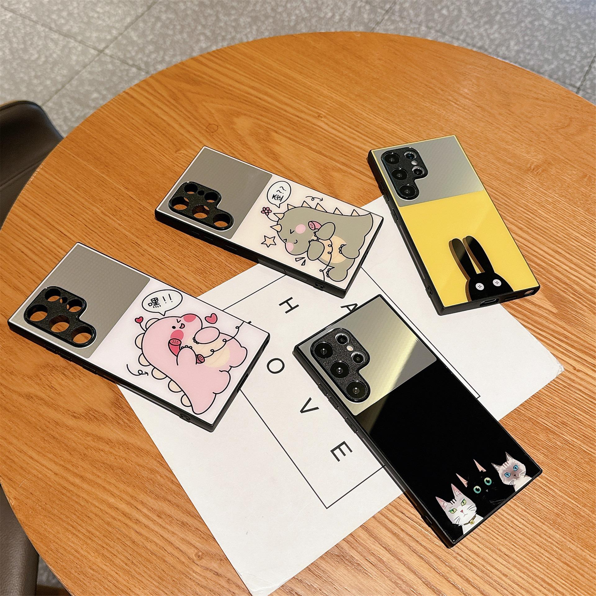 For Samsung S25Ultra S25 S24 S23 S22 S21 Phone Case, Luxury Glitter Rabbit Dinosaur Cat Mirror Cartoon Plating Acrylic, Camera Protection Hard Full Cover