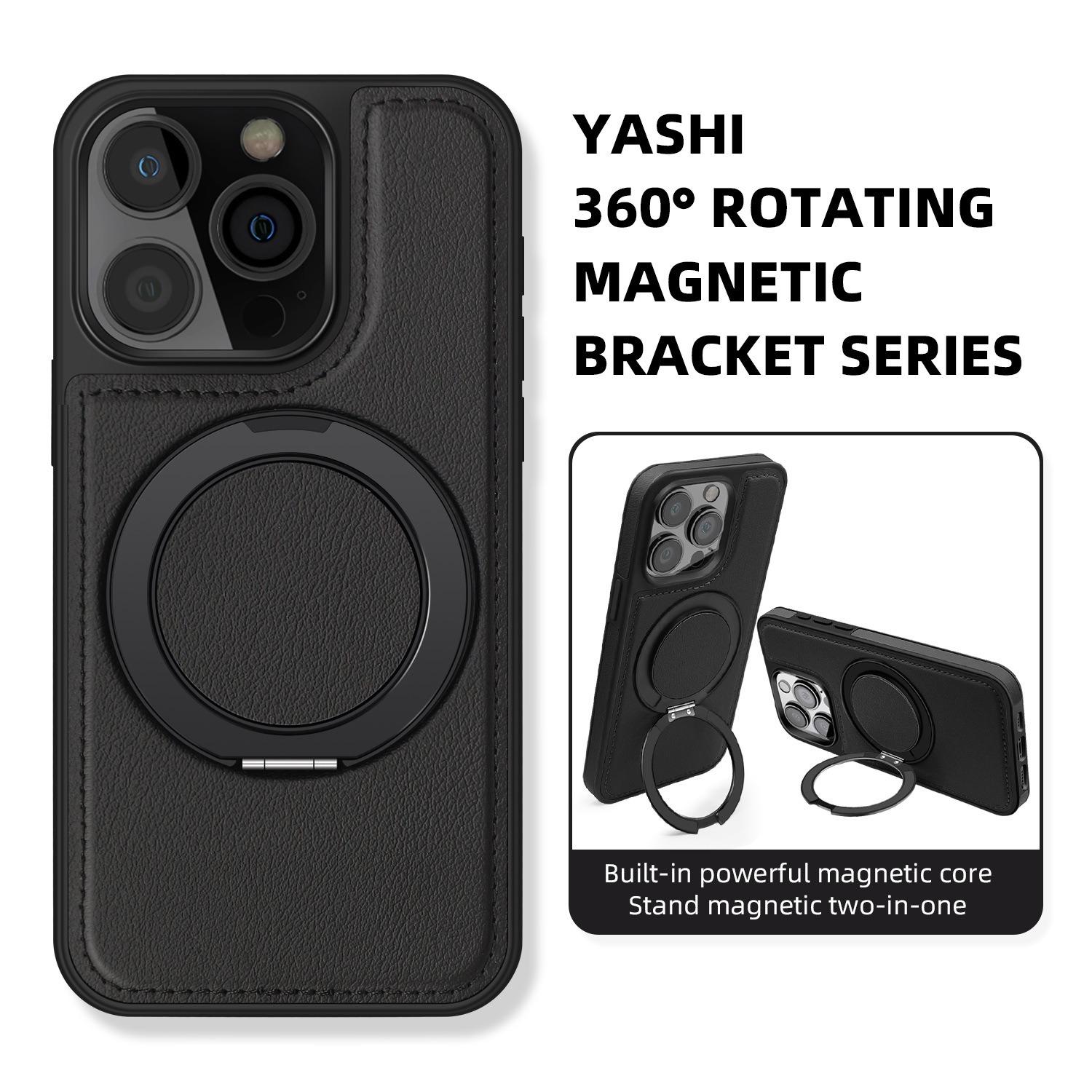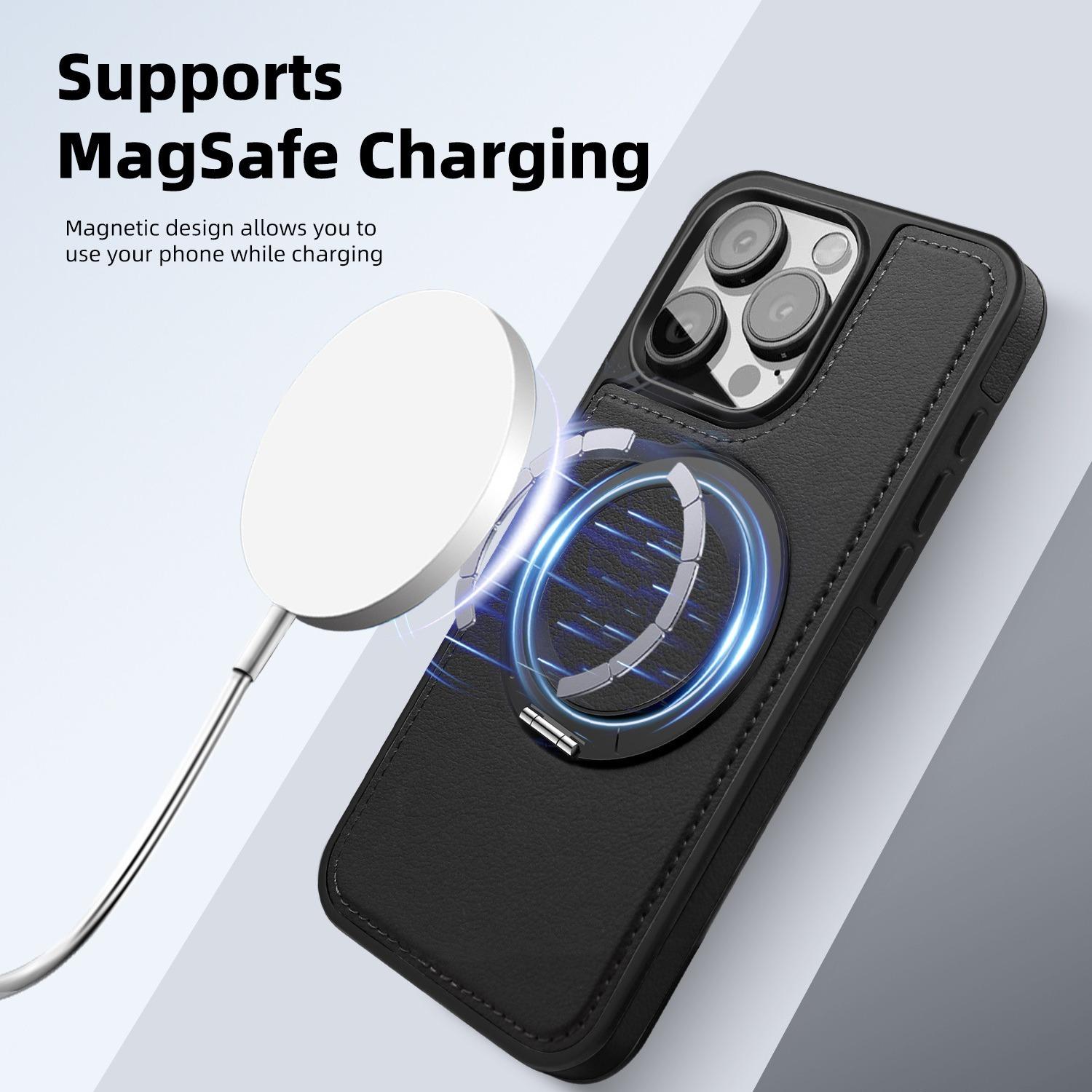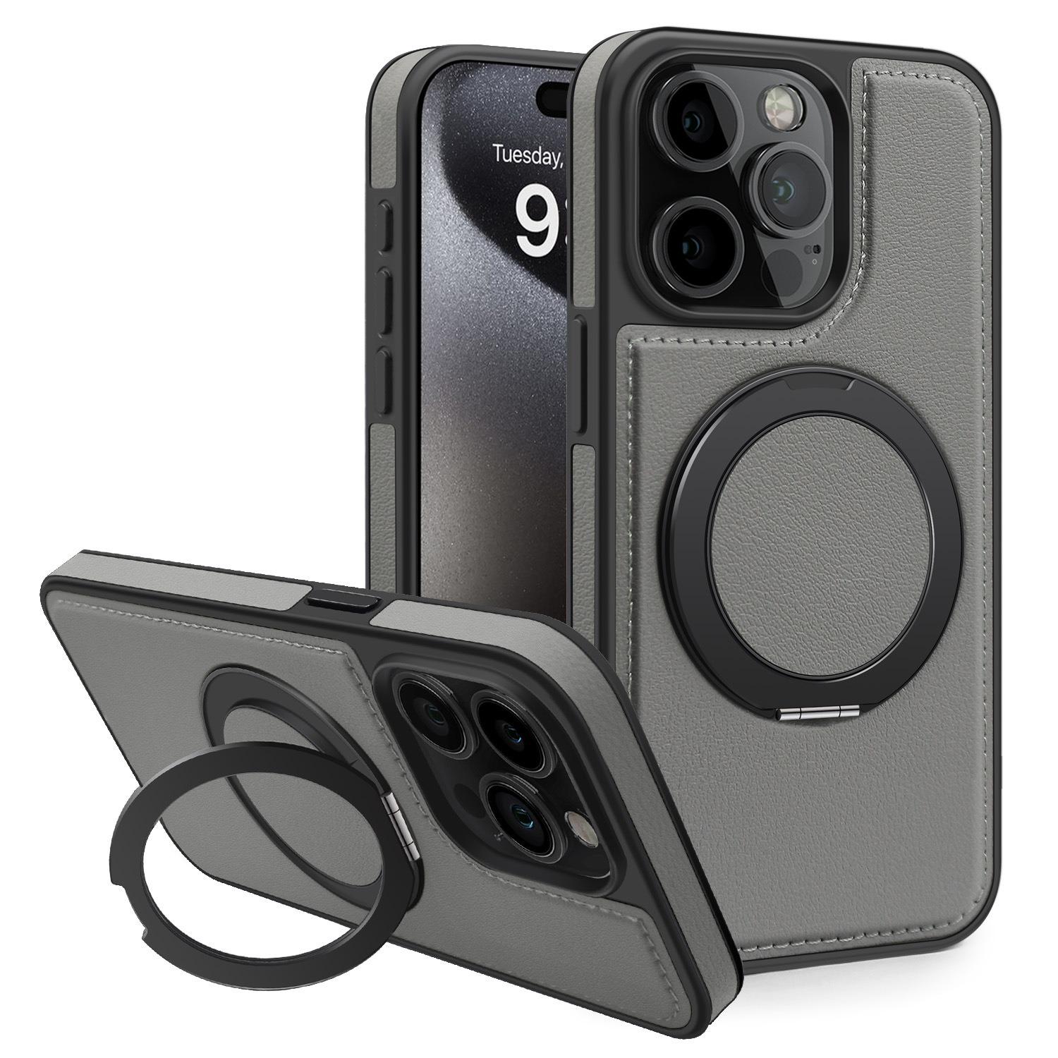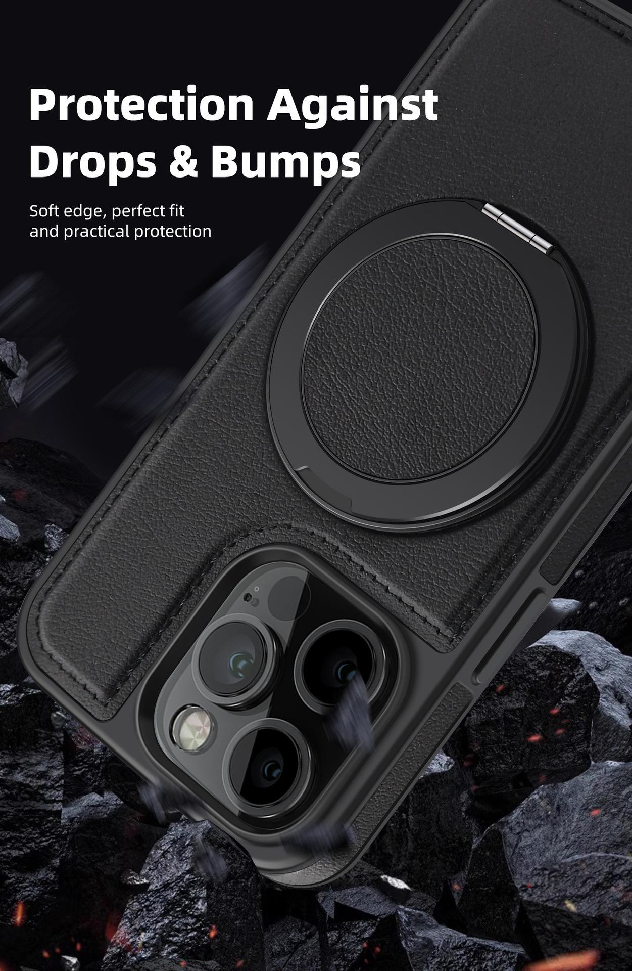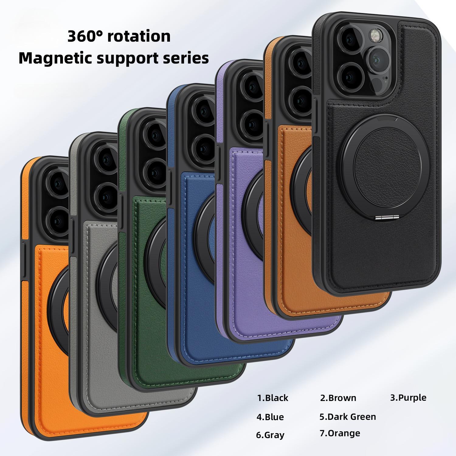 Luxury Full Leather Phone Case For iPhone 16ProMax 16 15 14 13 12 11 Magnetic Rotate Metal Holder Stand Back Cover