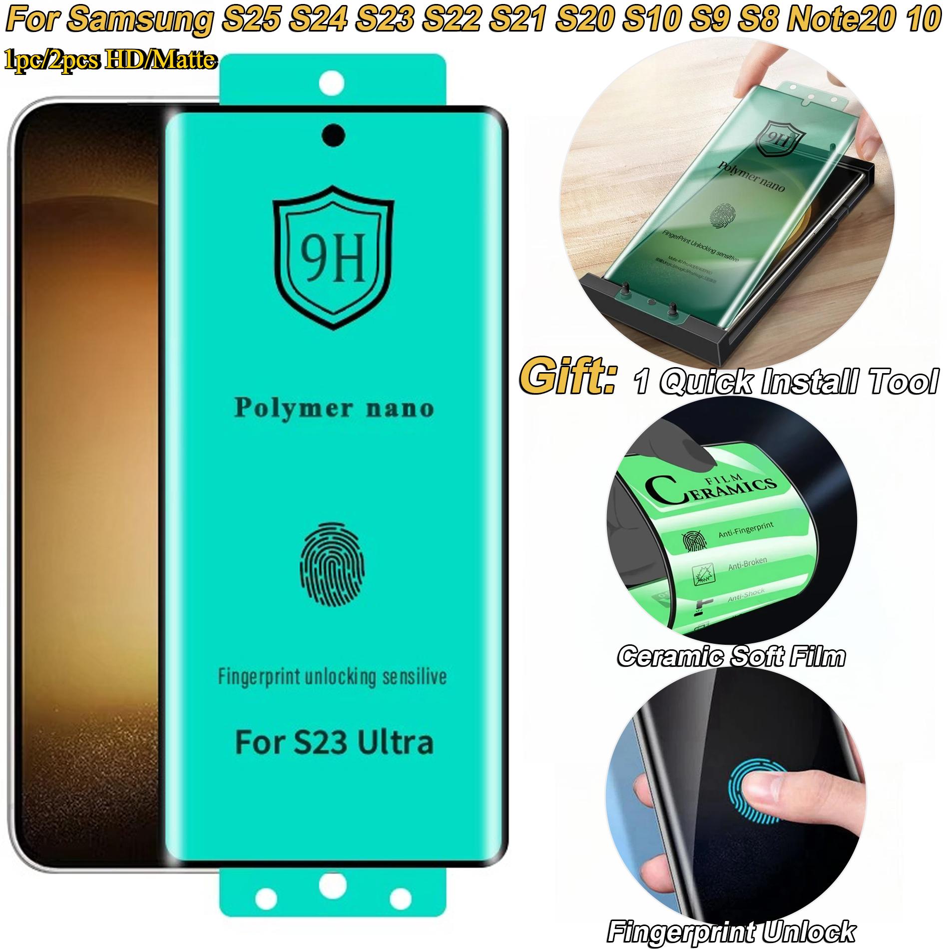 1pc/2pcs HD/Matte Full Coverage Fingerprint Unlock Anti-Broken Ceramic Soft Film For Samsung S25 S24 S23 S22 S21 S20 S10 S9 S8 Note20 10 Screen Protector with Free Installation Tool
