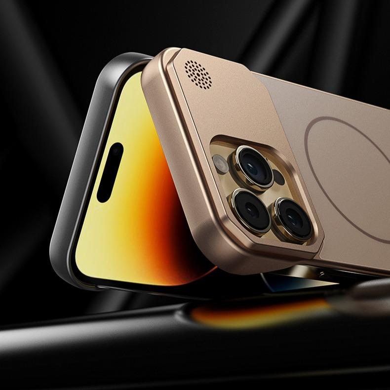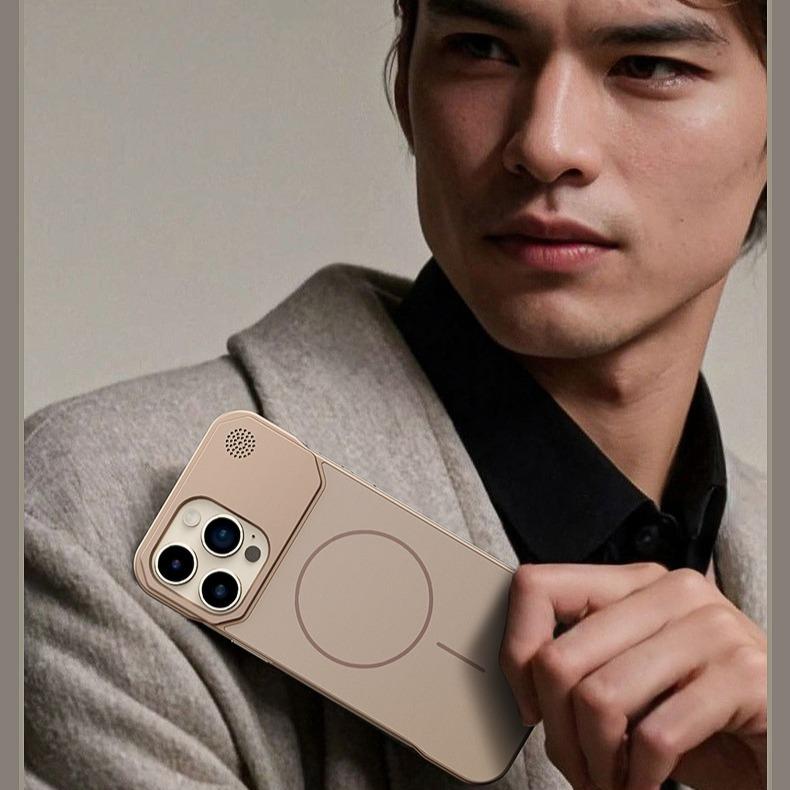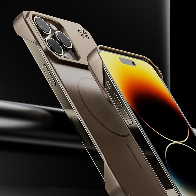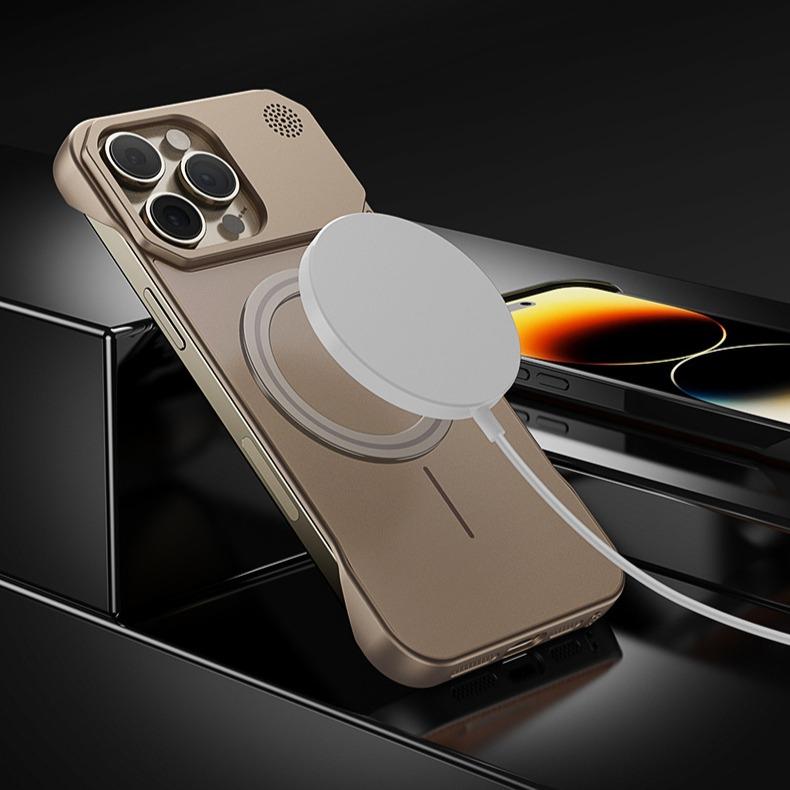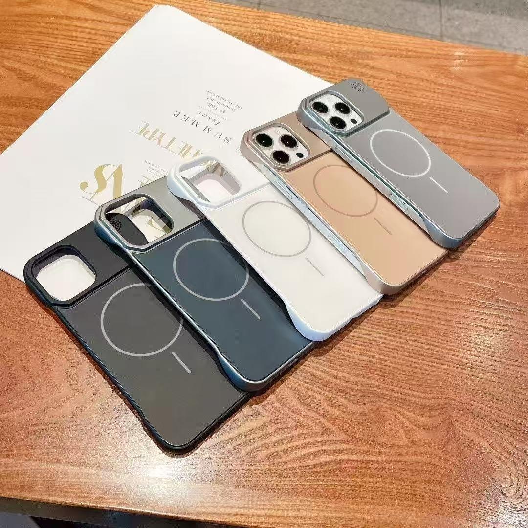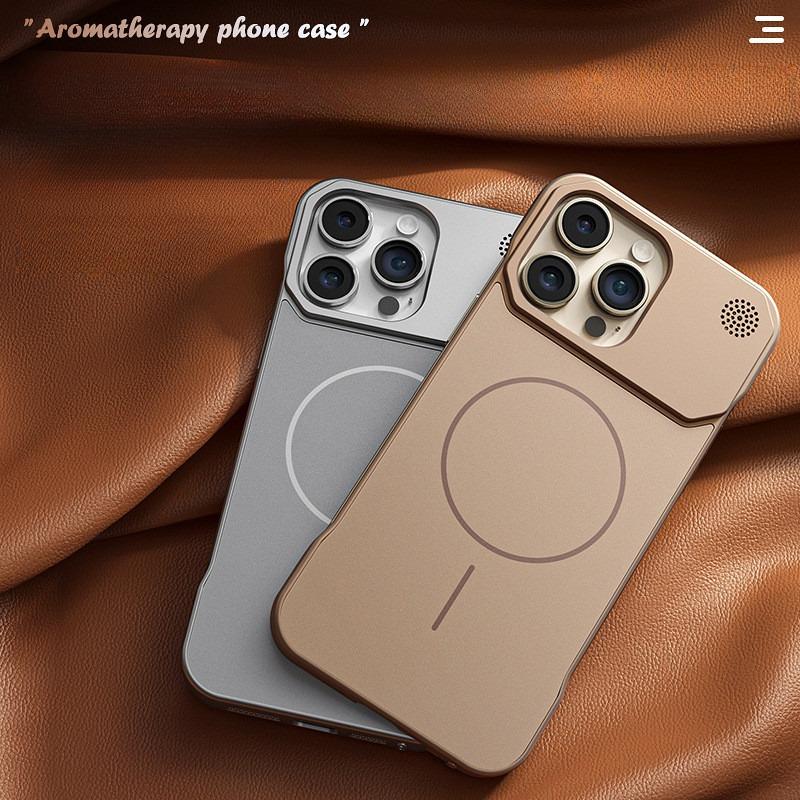 Aromatherapy Frameless Heat Dissipation Aluminium Alloy Strong Magnetic Len Protection Phone Case For iPhone 16ProMax 15 14 13 12 11, Skin Feel Shockproof Hard Full Cover