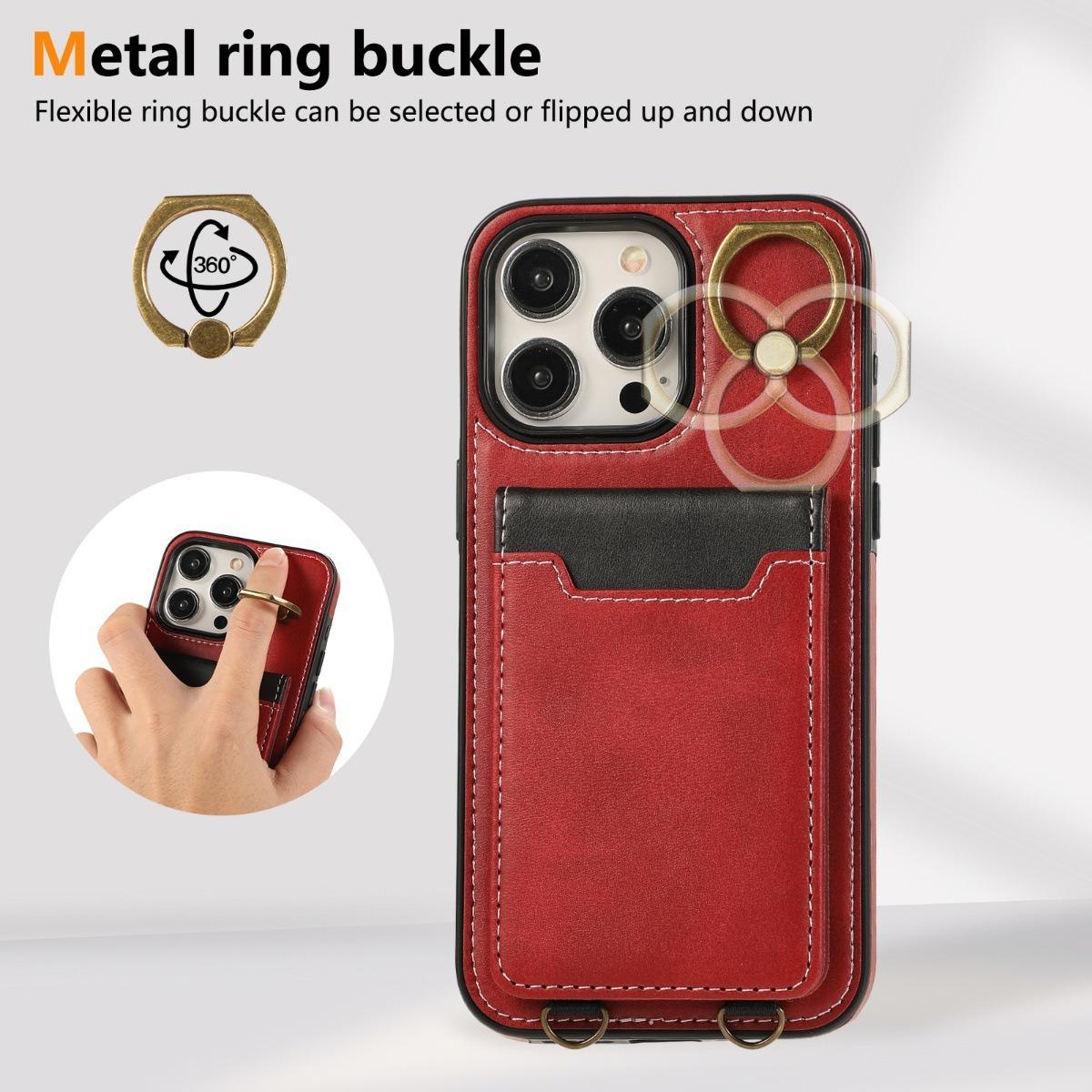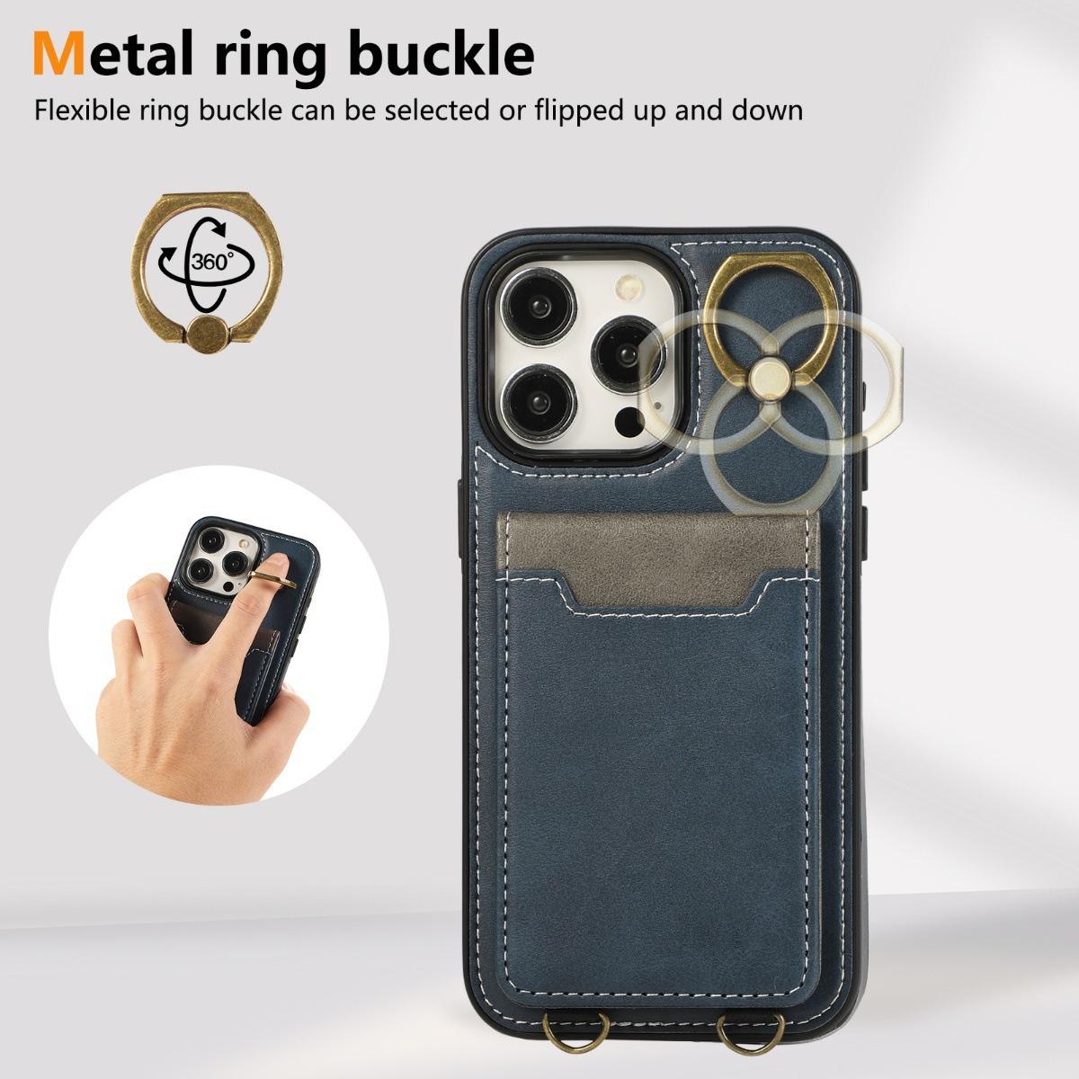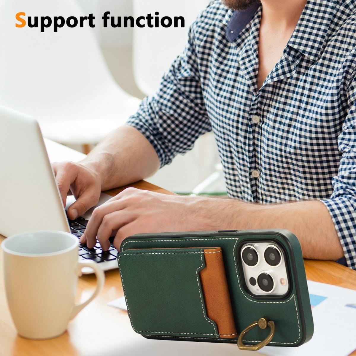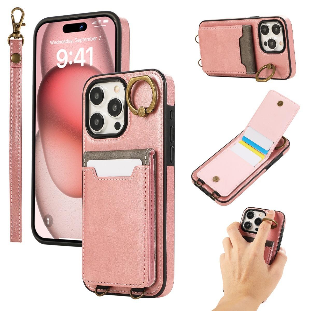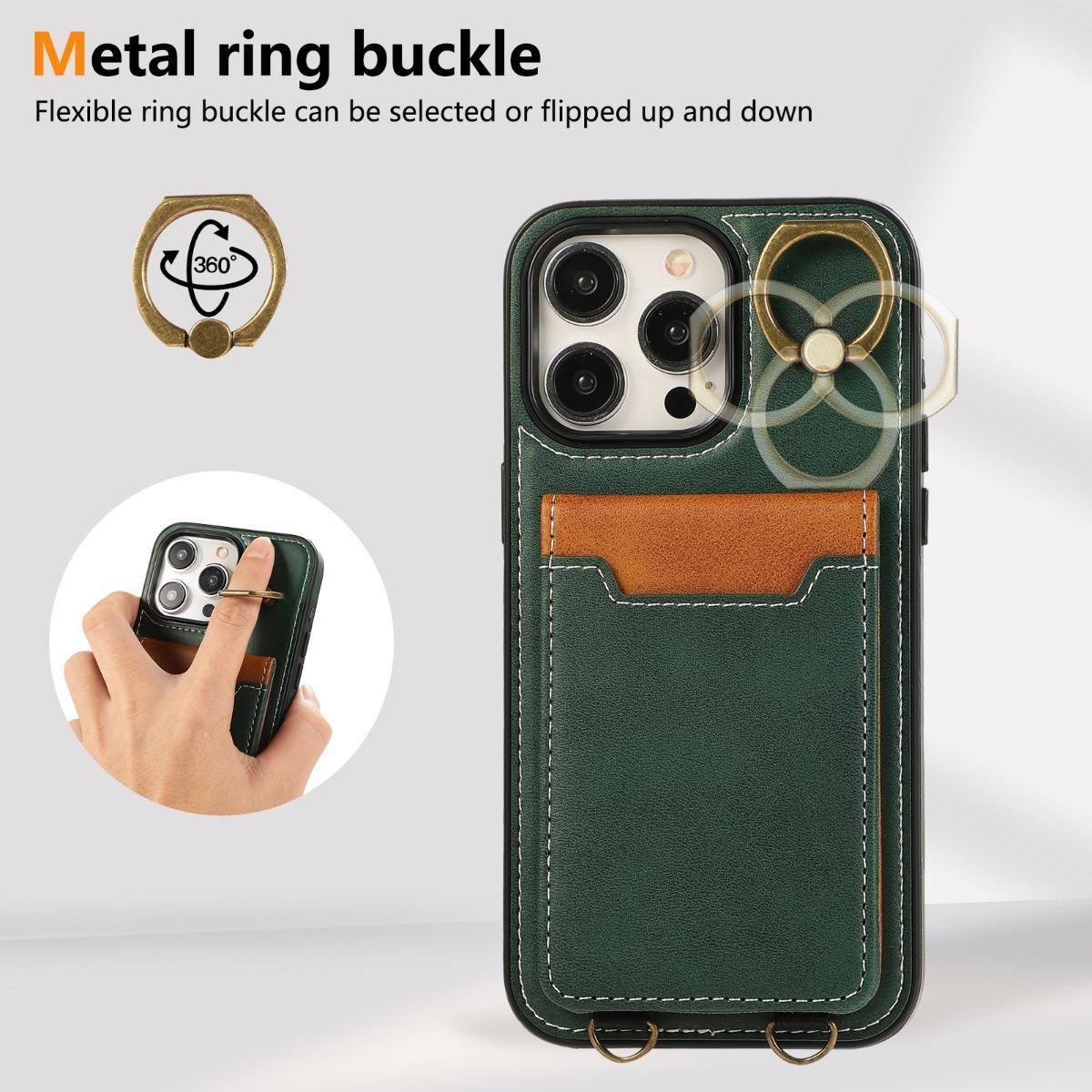 For iPhone 16ProMax 16 15 14 13 12 Leather Phone Case with Double Folding Wallet Wristband, Anti-Fall Card Slot Ring Kickstand Shockproof Business Hard Full Cover