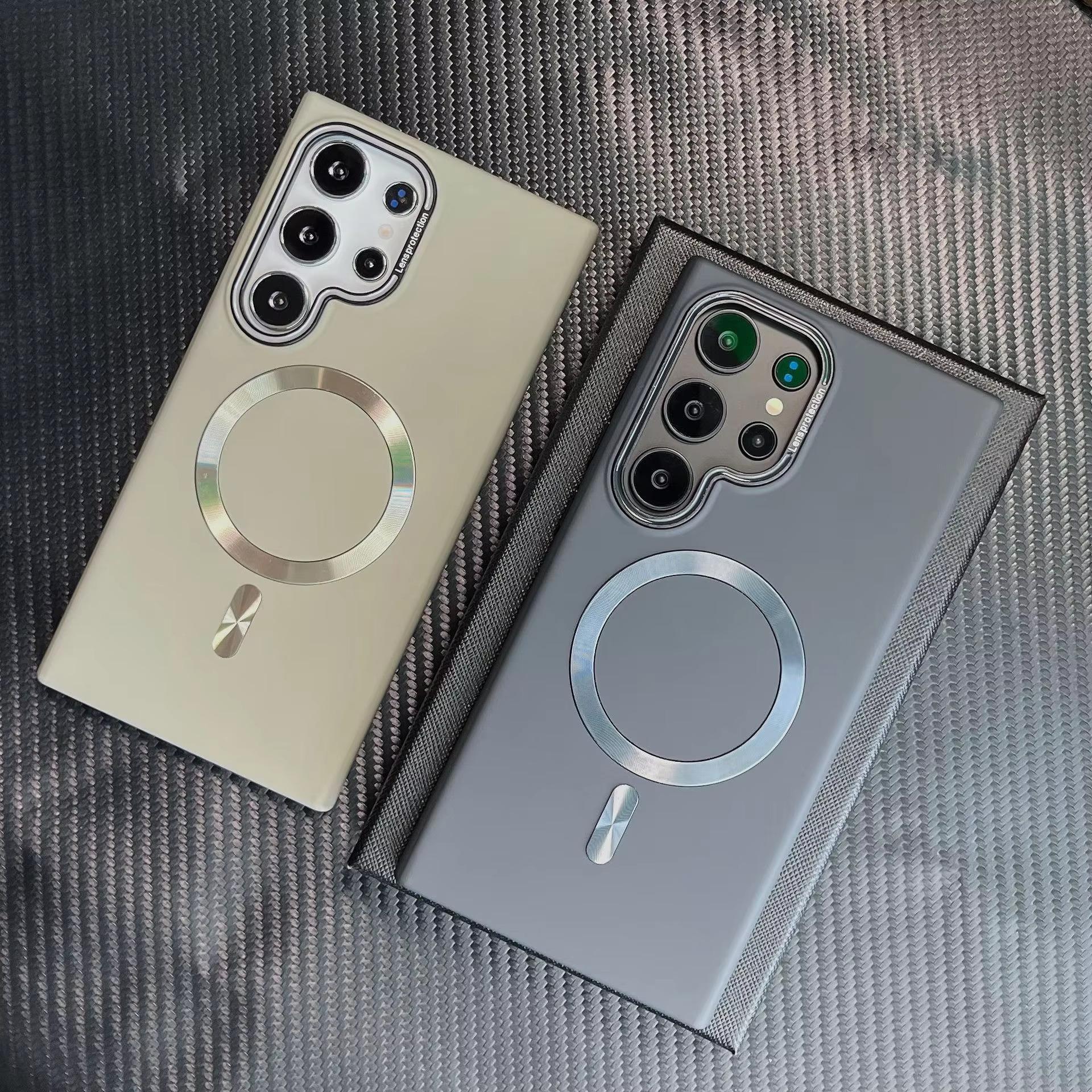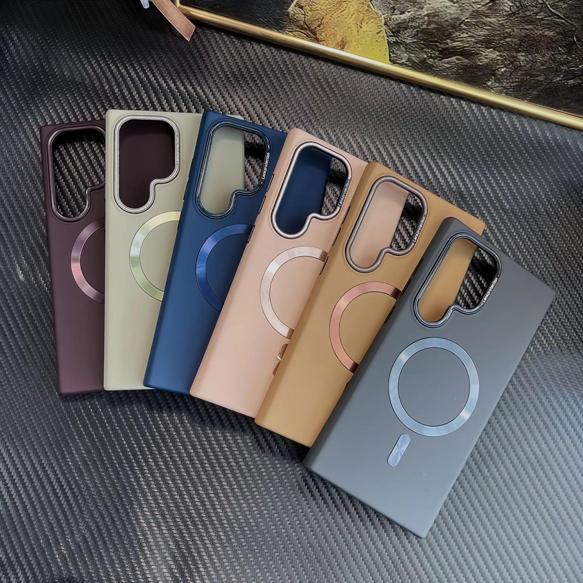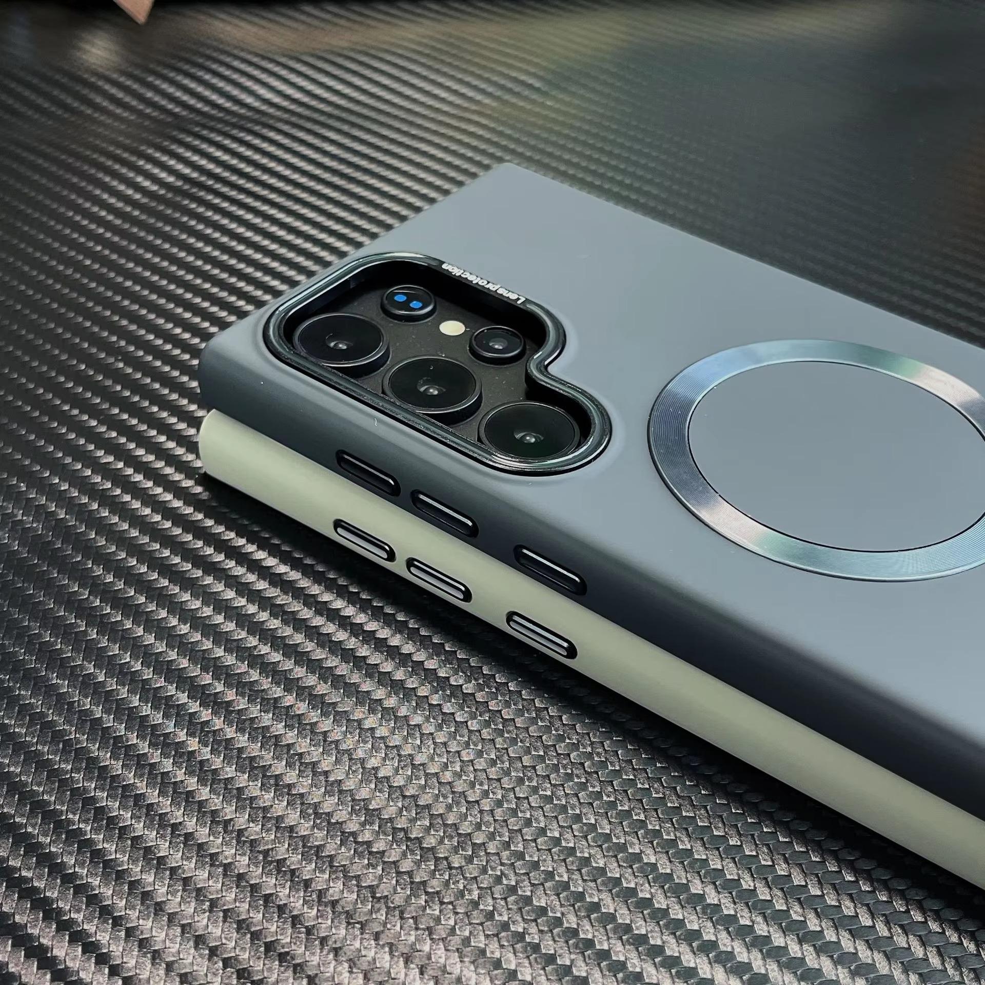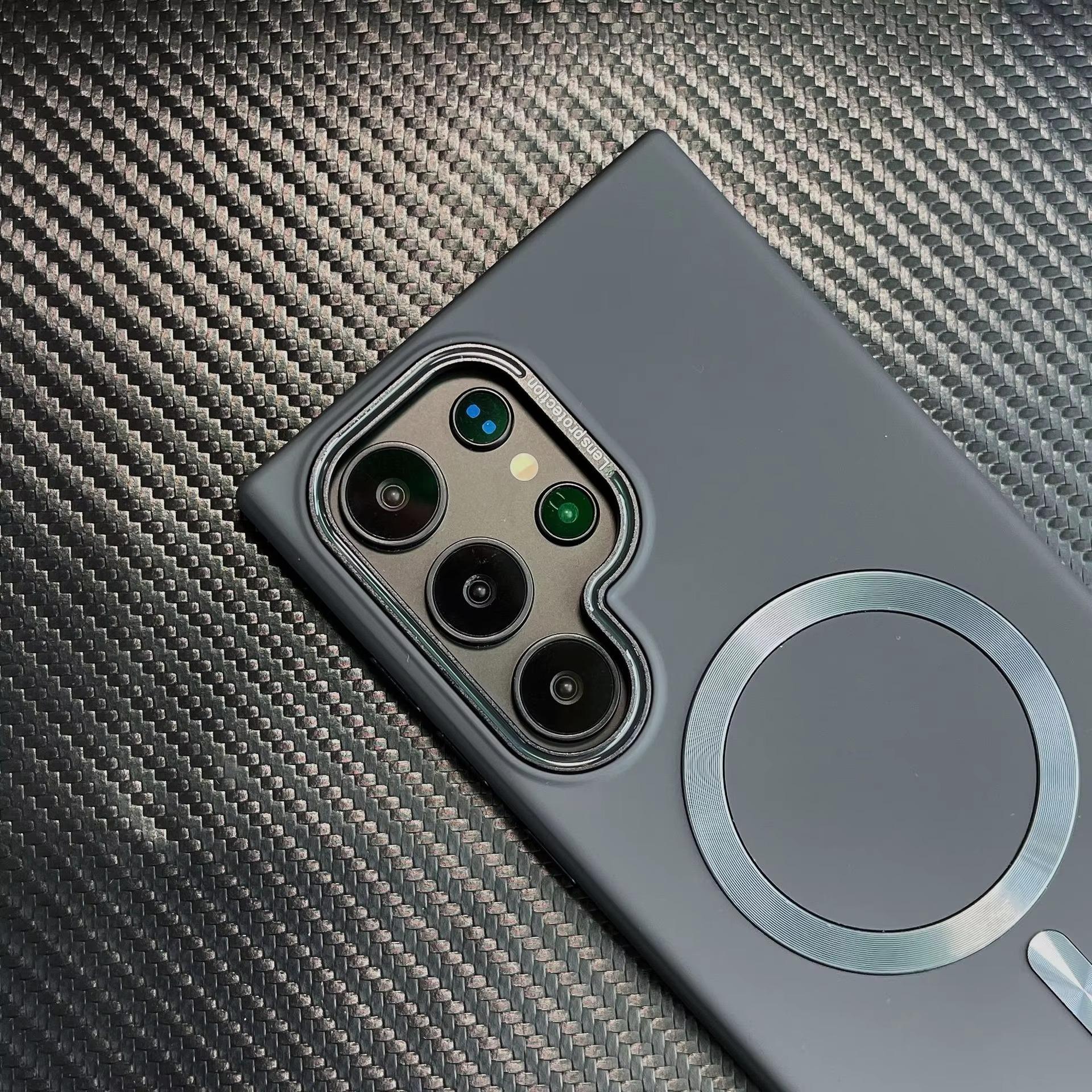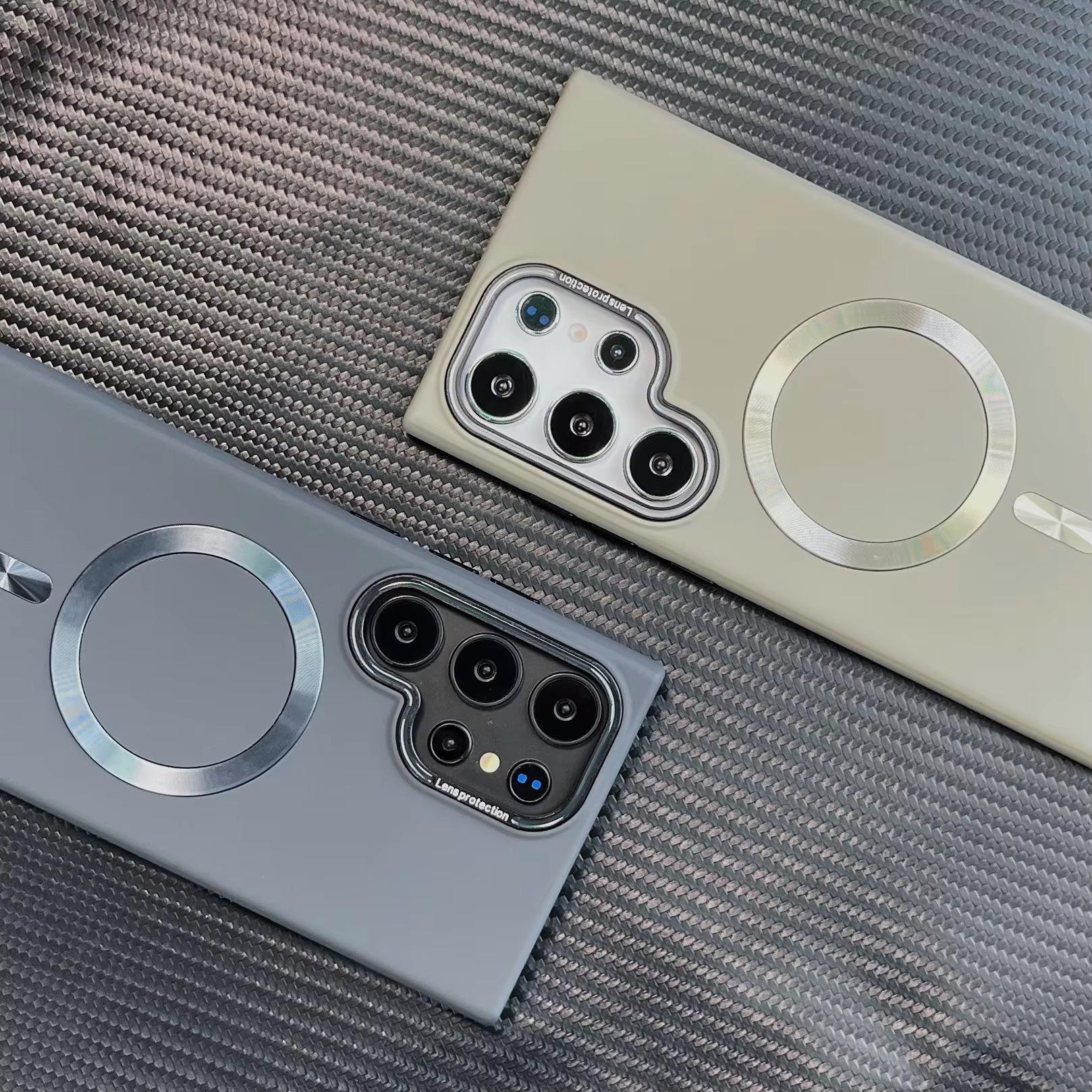 Frosted Magnetic Metal Lens Frame Phone Case For Samsung S25Ultra S24Ultra S23Ultra Ultra Thin Shockproof Hard Full Cover