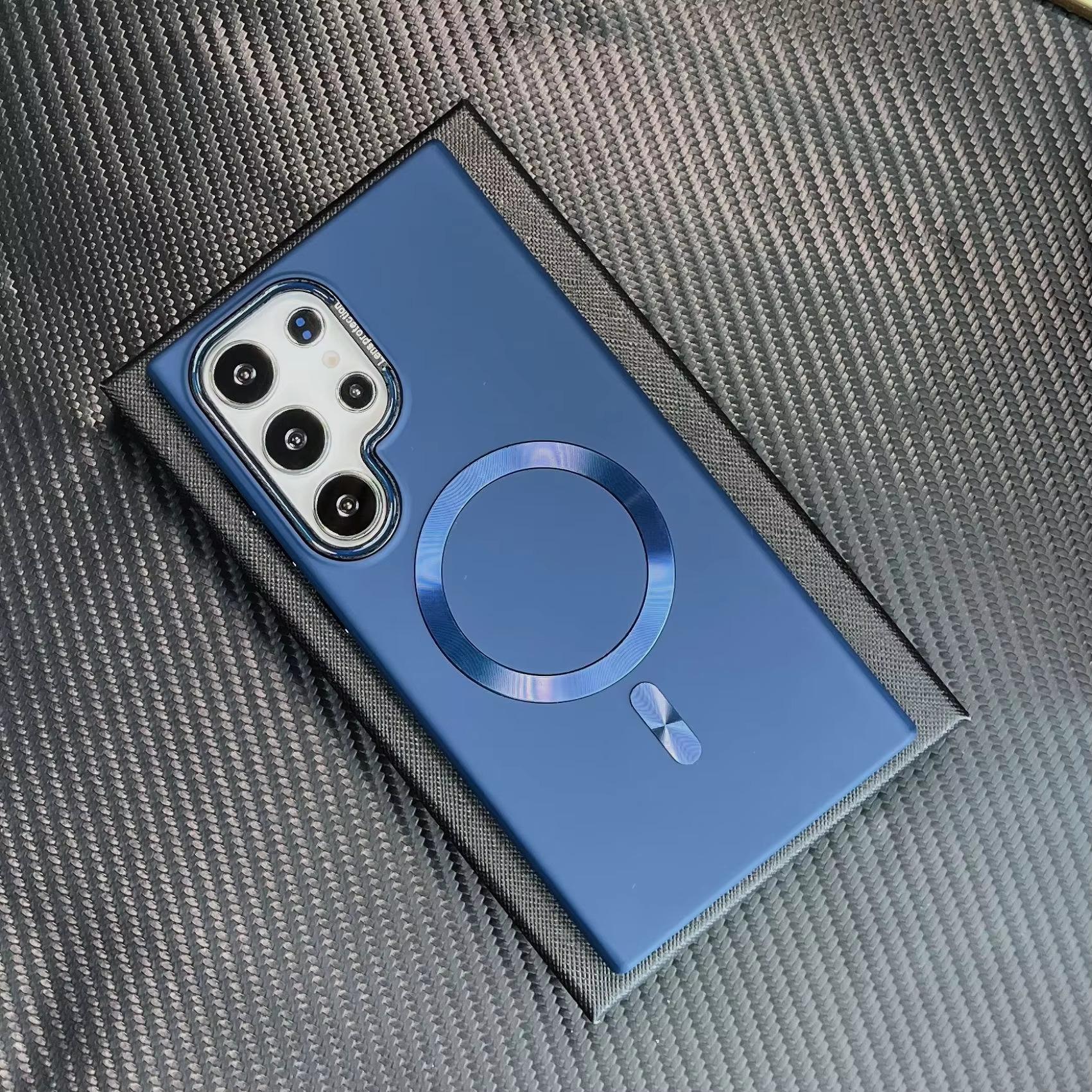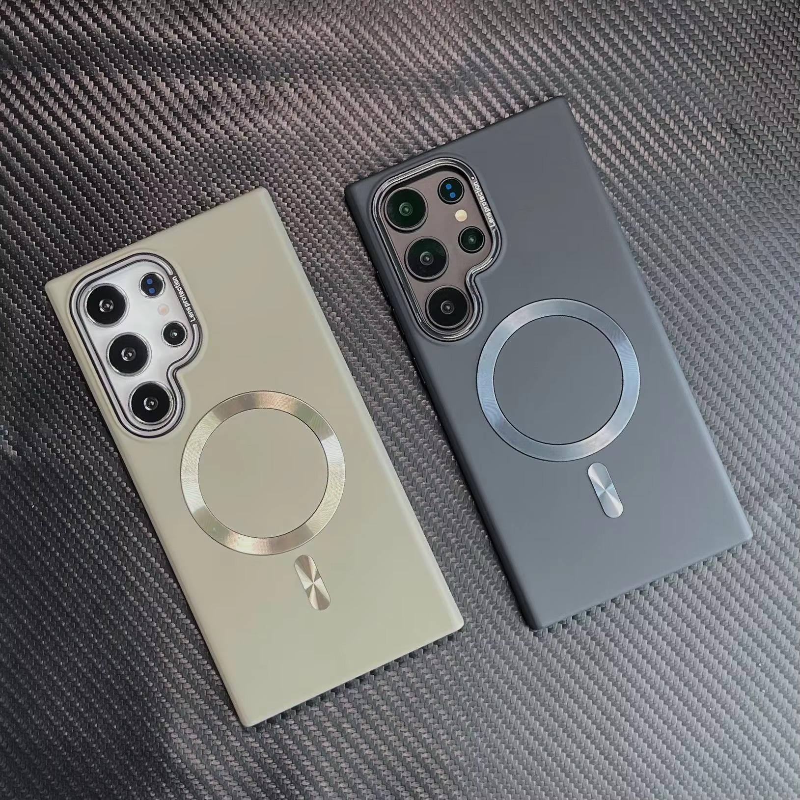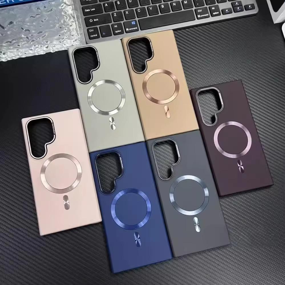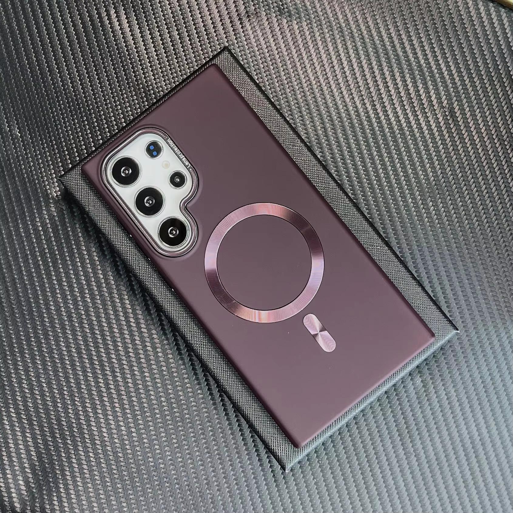 Frosted Magnetic Metal Lens Frame Phone Case For Samsung S25Ultra S24Ultra S23Ultra Ultra Thin Shockproof Hard Full Cover