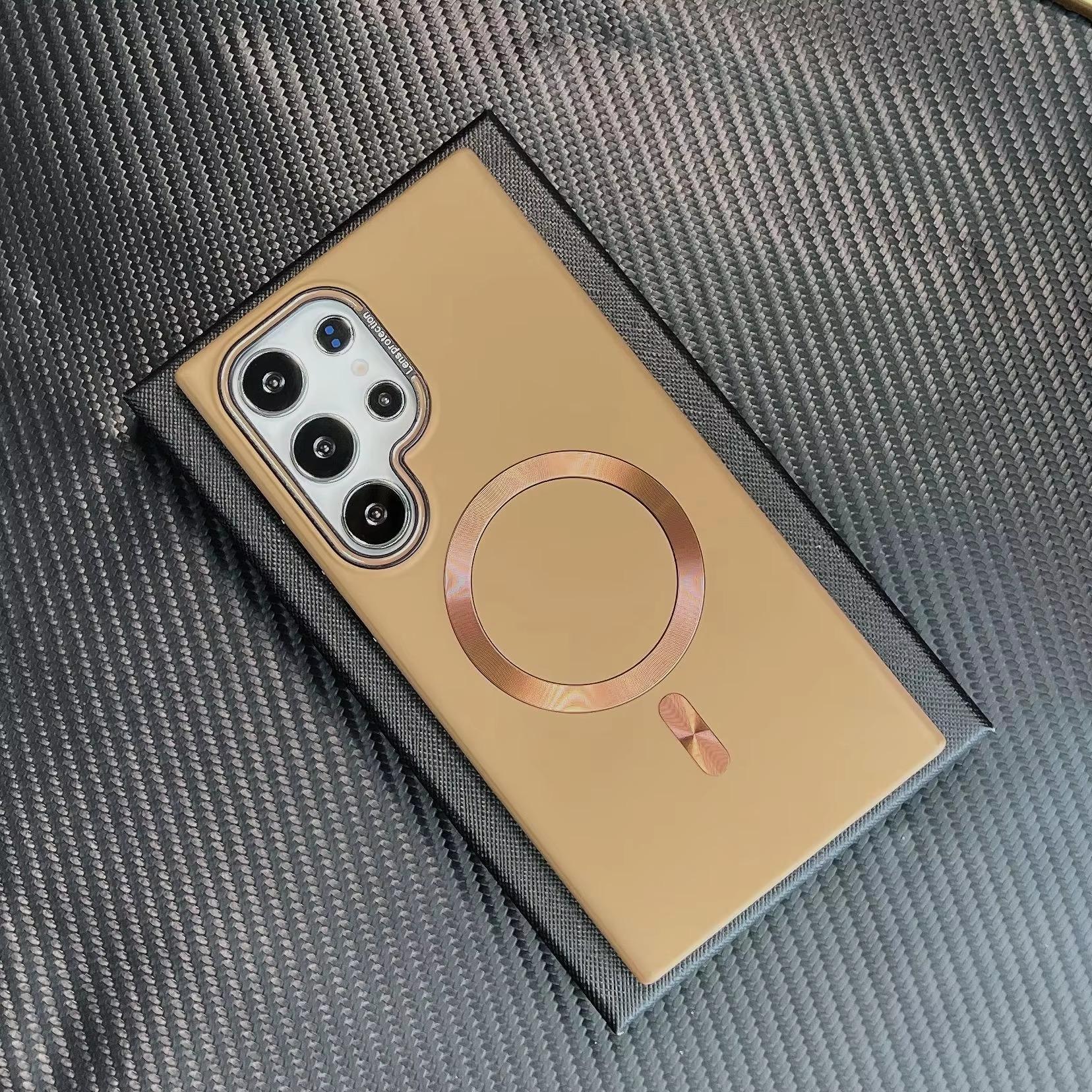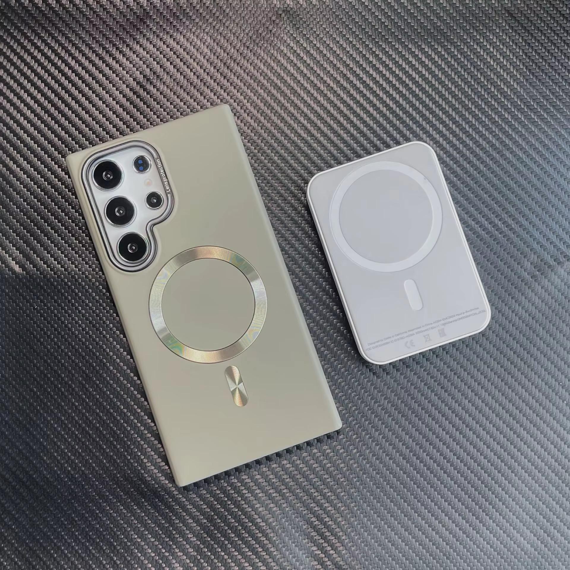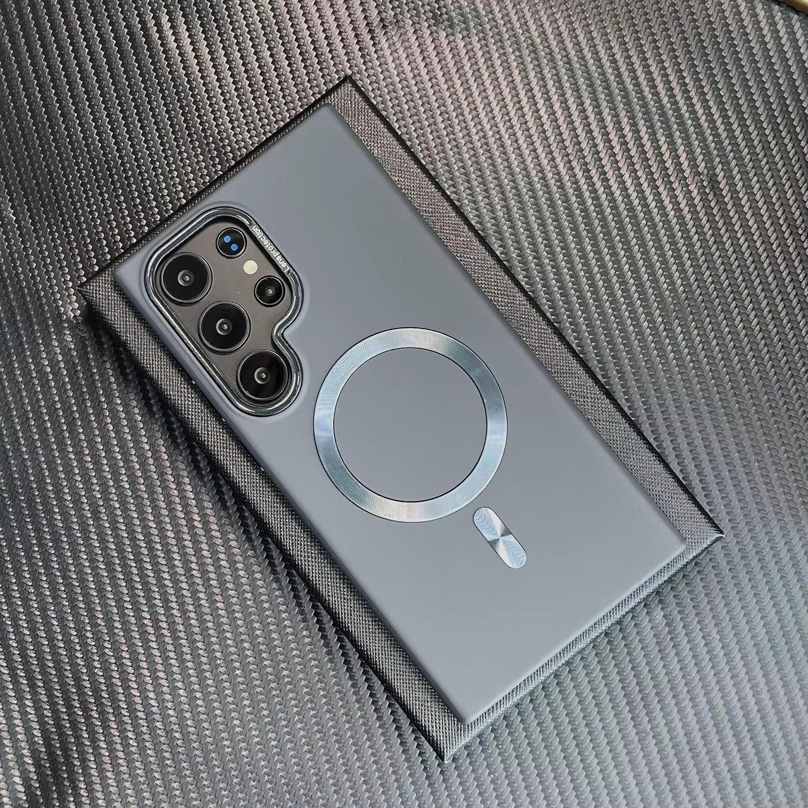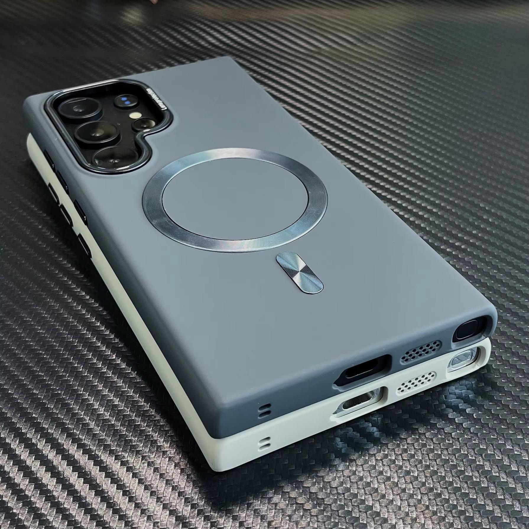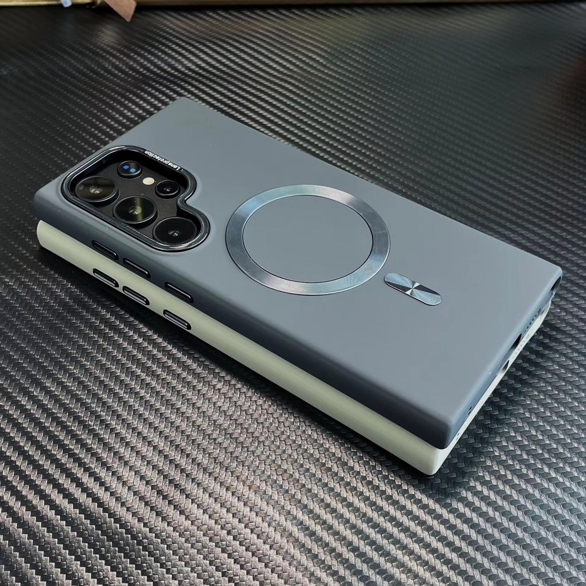 Frosted Magnetic Metal Lens Frame Phone Case For Samsung S25Ultra S24Ultra S23Ultra Ultra Thin Shockproof Hard Full Cover