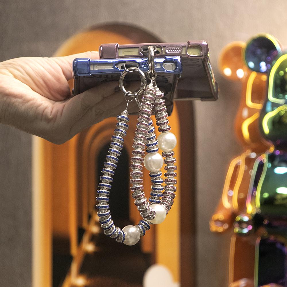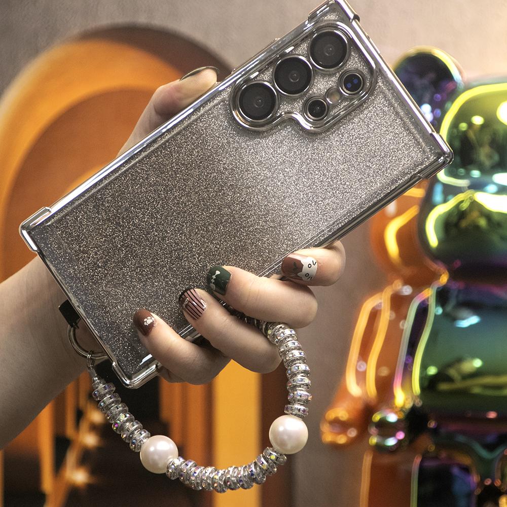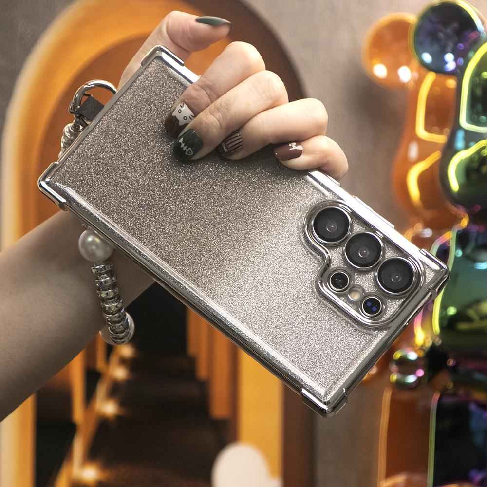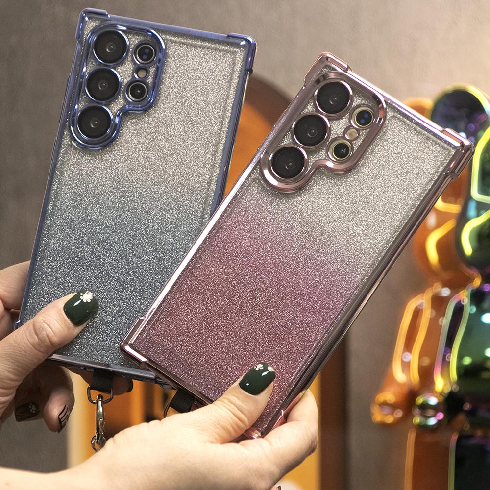 Gradient Plating Four Corners Phone Case with Pearl Diamond Wristband for Samsung S25Ultra S25 S24 S23 S22 S21 Note20 A53 A54 A55 Hard Acrylic Bumper Full Cover