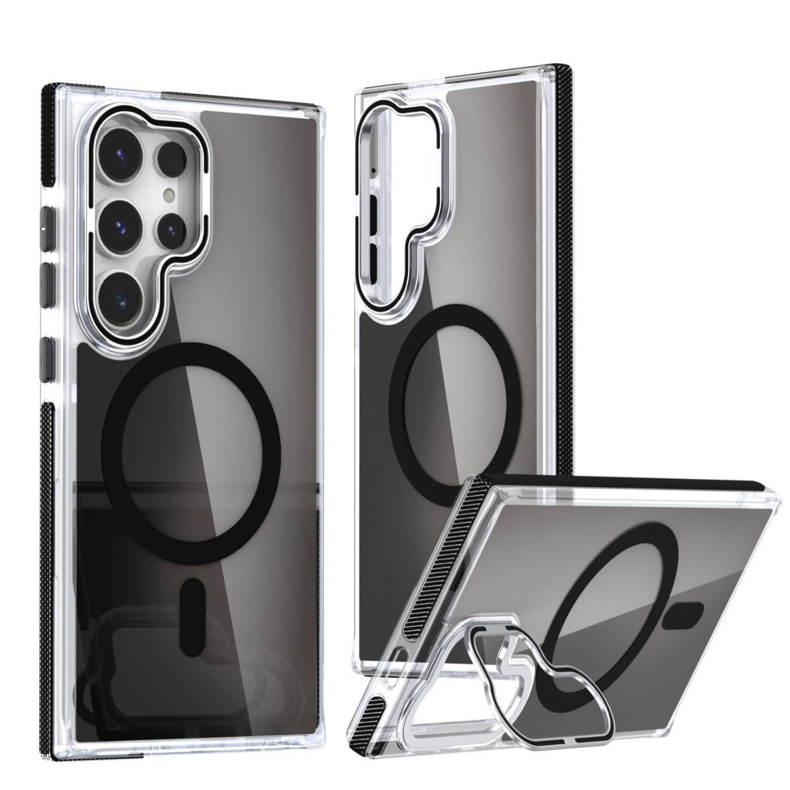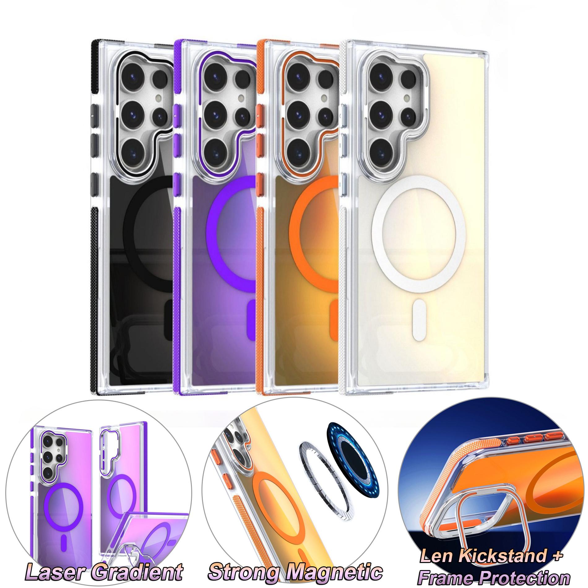 Laser Gradient Chameleon Camera Kickstand Strong Magnetic Wireless Charging Phone Case For Samsung S25Ultra S25 S24 S23 S22 Metal Frame Acrylic Shockproof Hard Cover