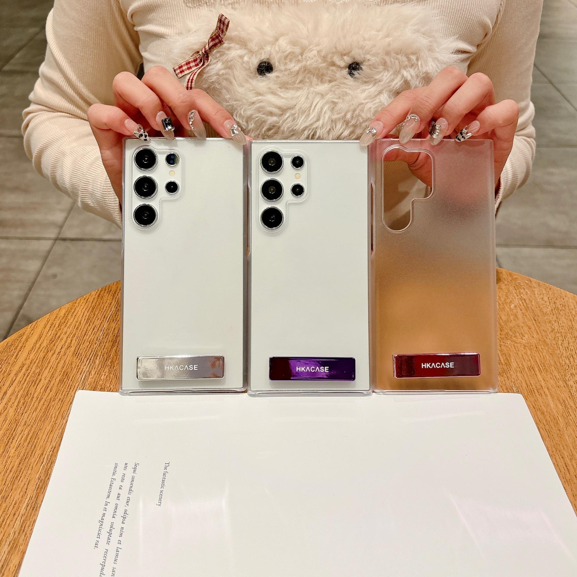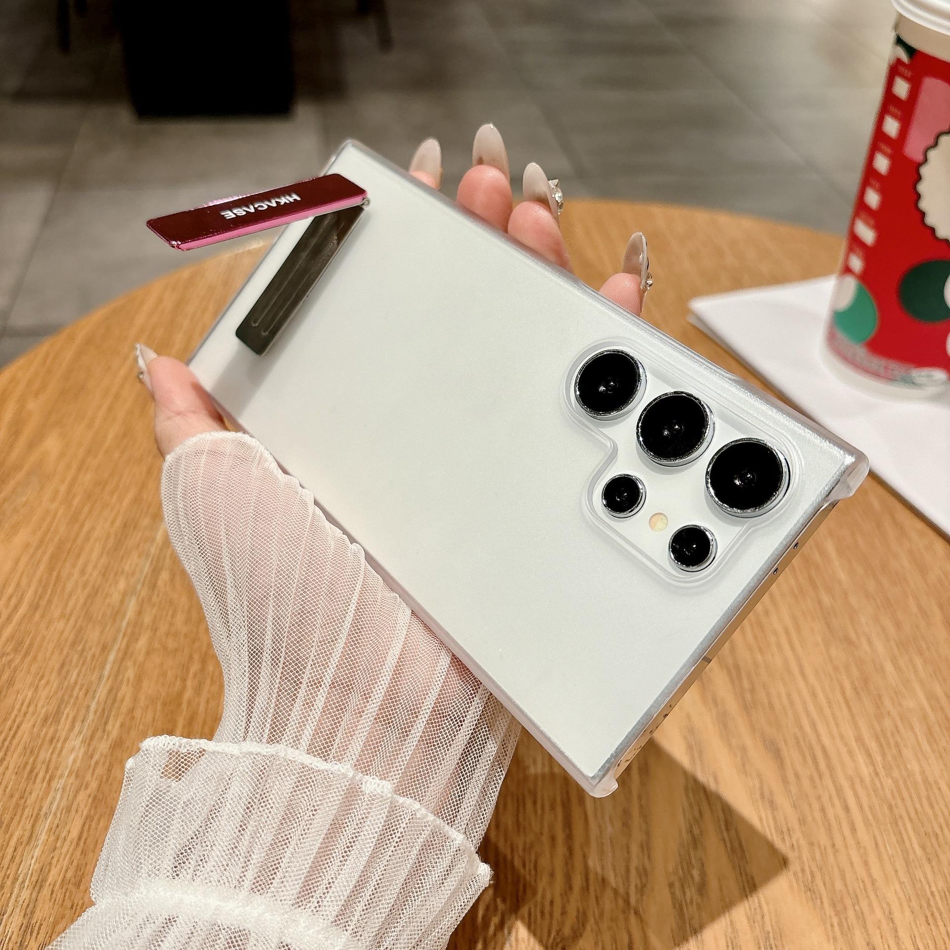 Matte PC Ultra Thin Transparent Frozen Fog Phone Case with Kickstand For Samsung S25Ultra S24 S23 S22 Note20 A14 A15 A16 A54 A55 A56 Not Yellowing Clear Hard Full Cover