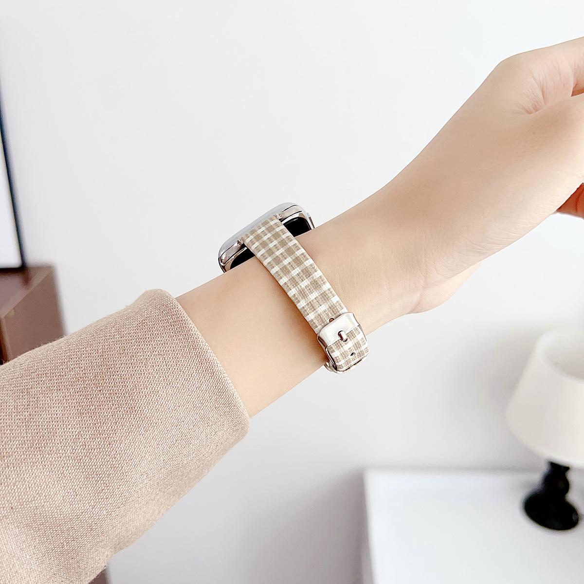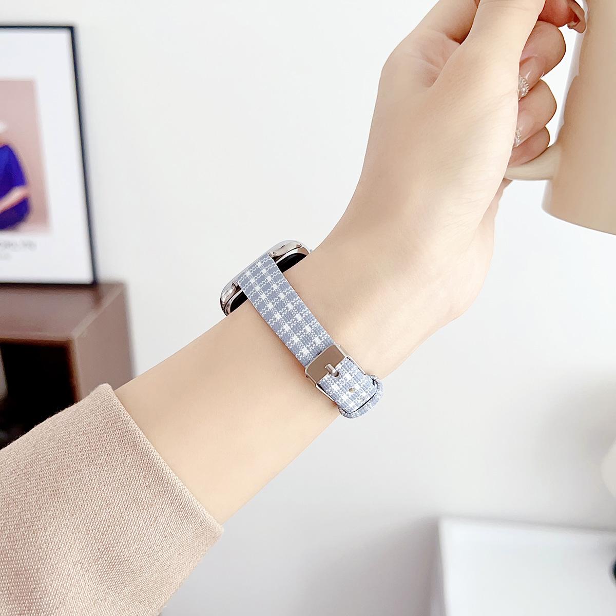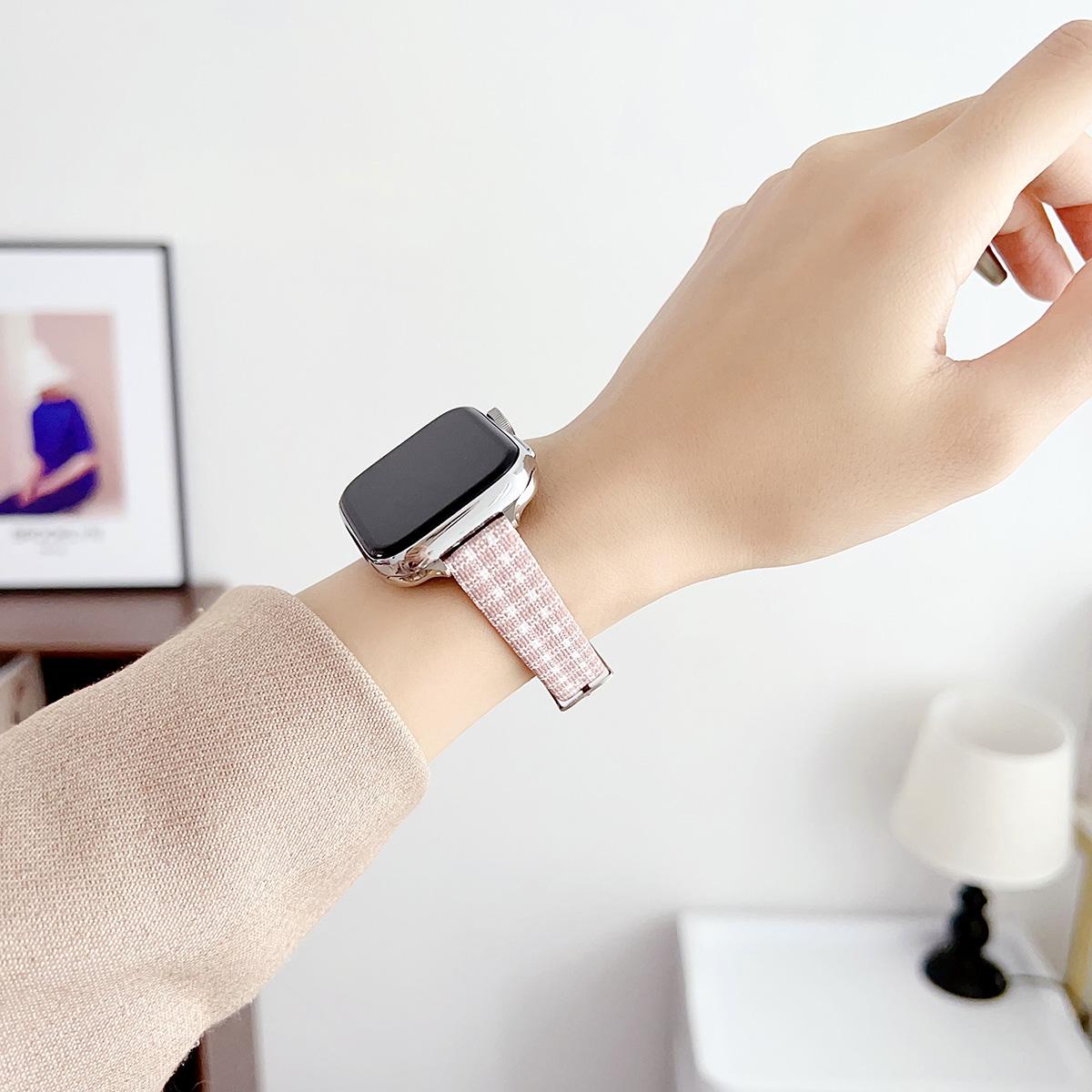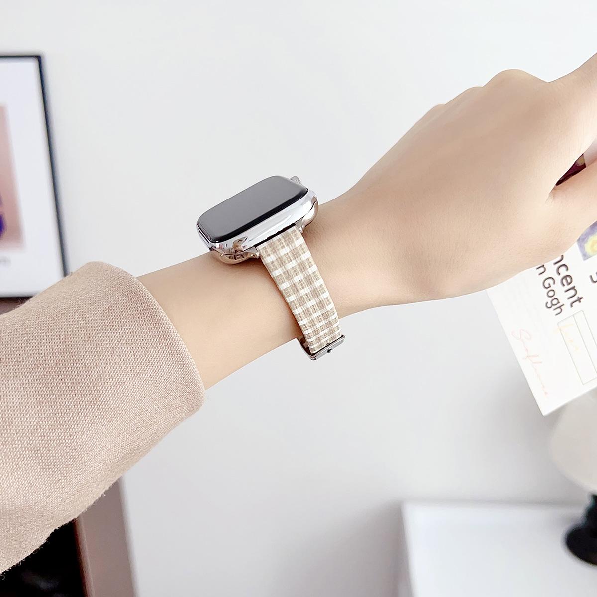 Plaid Canvas Metal Strap for Apple Watch 44mm Band 45 42 38 41 Ultra 49mm Link Bracelet for IWatch Series 9 8 7 6 SE 5 4