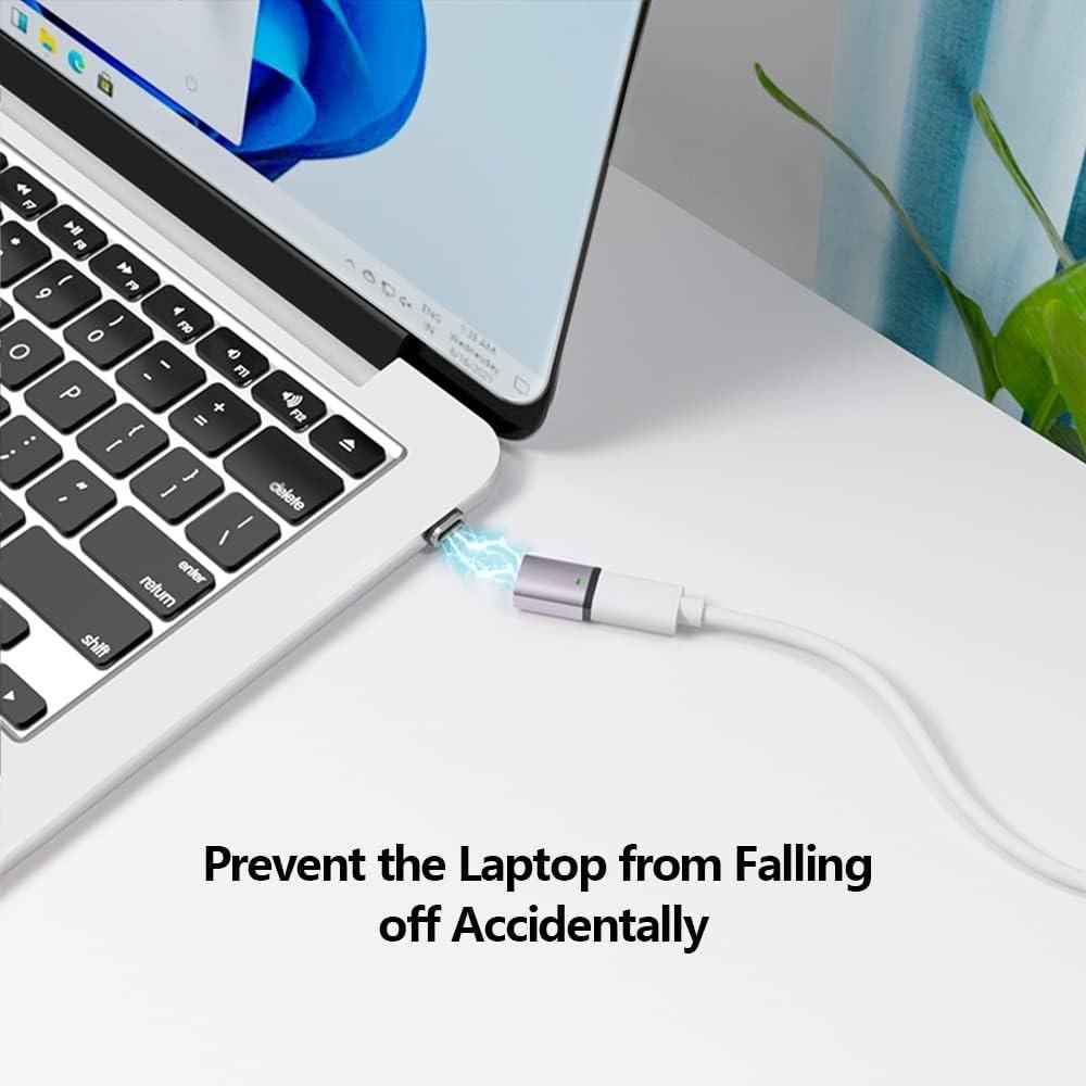 Portable and Durable: USB C magentic adapter right angle is travel friendly with portable and compact design. It is lightweight and durable. The LED light indicates that the usb c magnetic adapter is connected to the laptop and powered on. It will not change color and will not turn off.