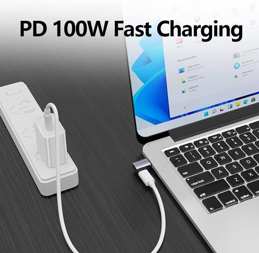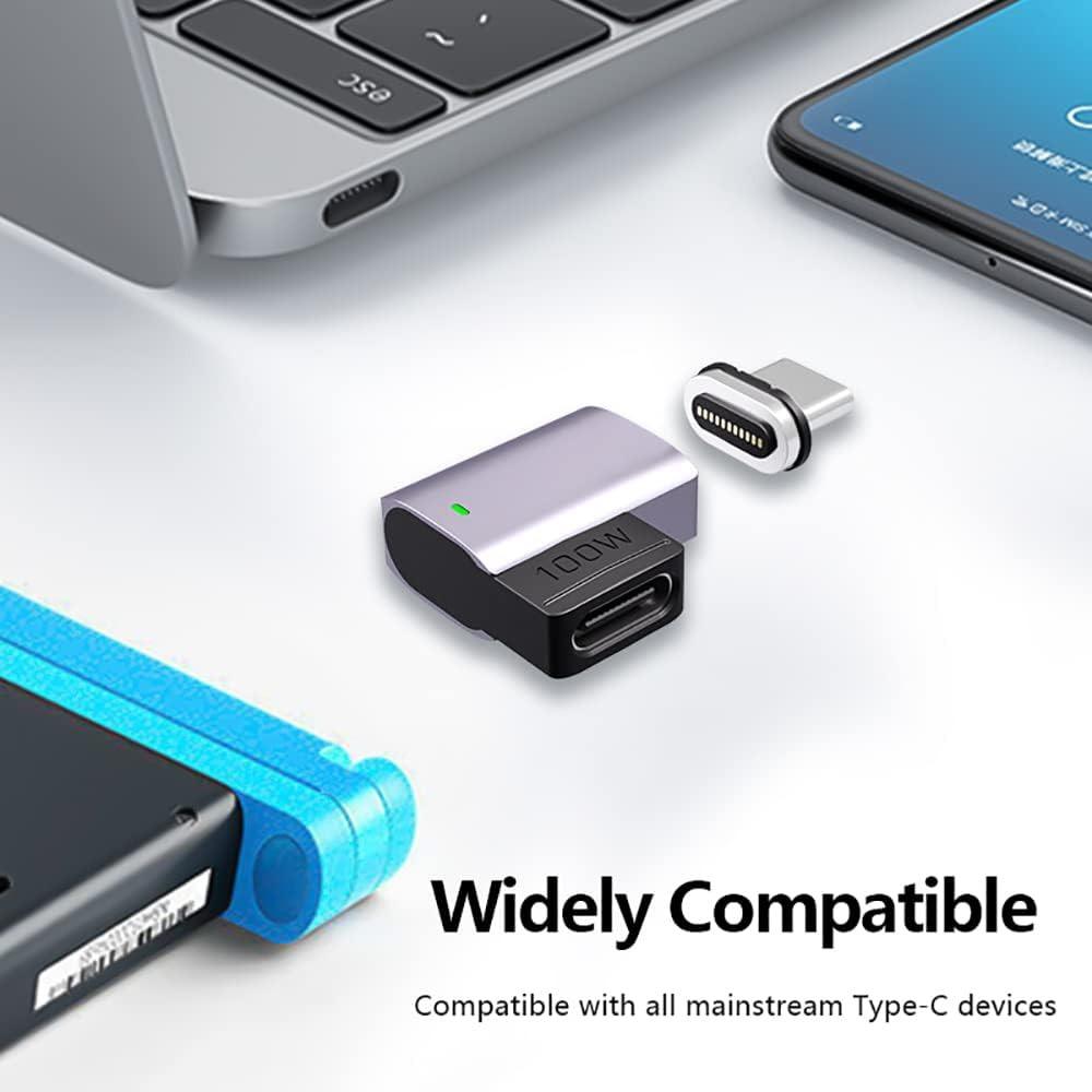 PD 100W Fast Charging and 480 Mbps Data Transmission: magnetic usb c adapter right angle 11pins is up to support 100W PD quick charge and 480mbps data transmission. Note: Not support video output.