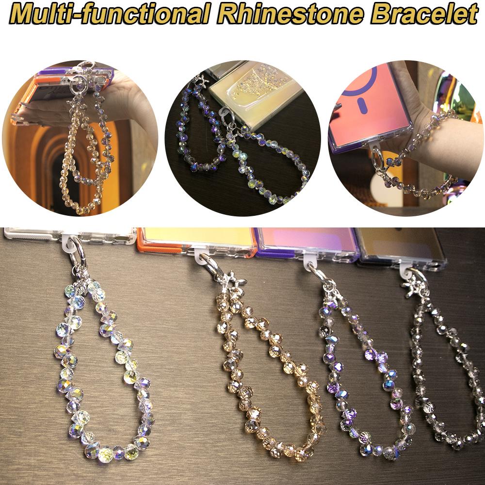 Fashion Colorful Glitter Gradient Phone Lanyard Wrist Rhinestone Strap Multifunctional Diamond Wristband Metal Accessories Color Hanging Bracelet Anti-lost Lanyards