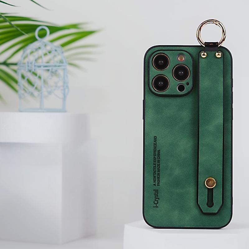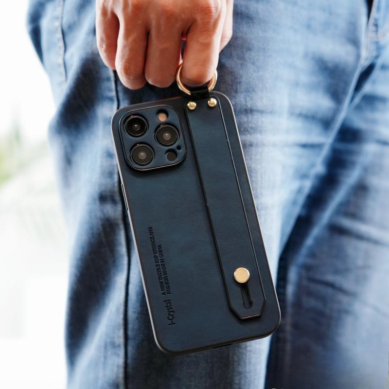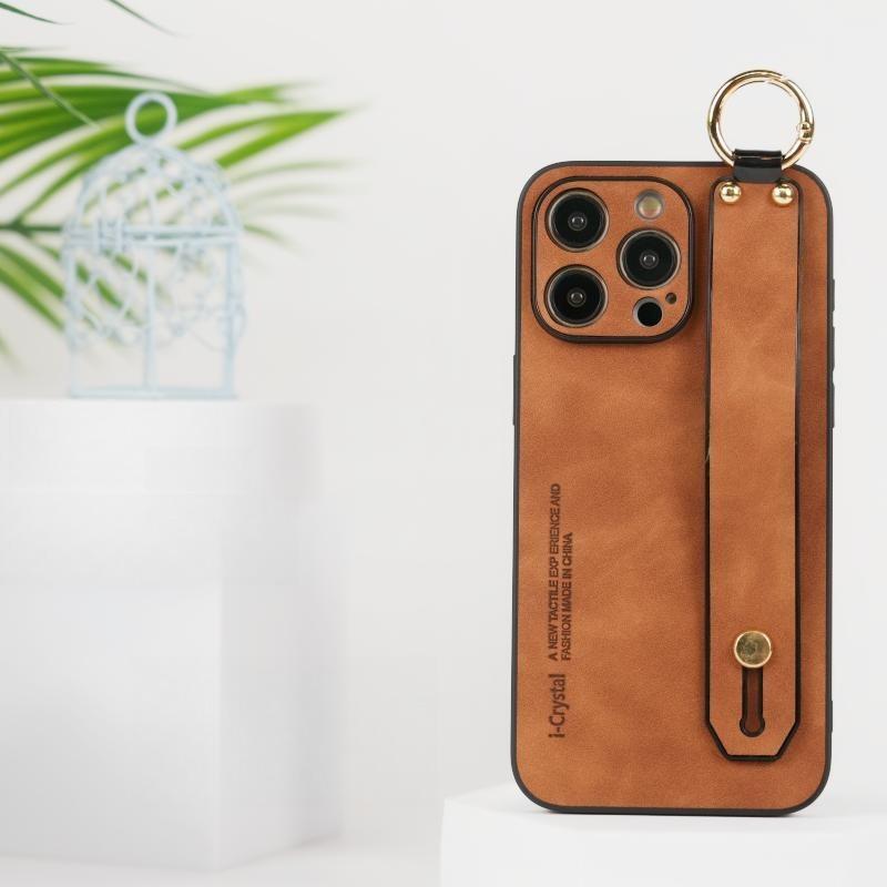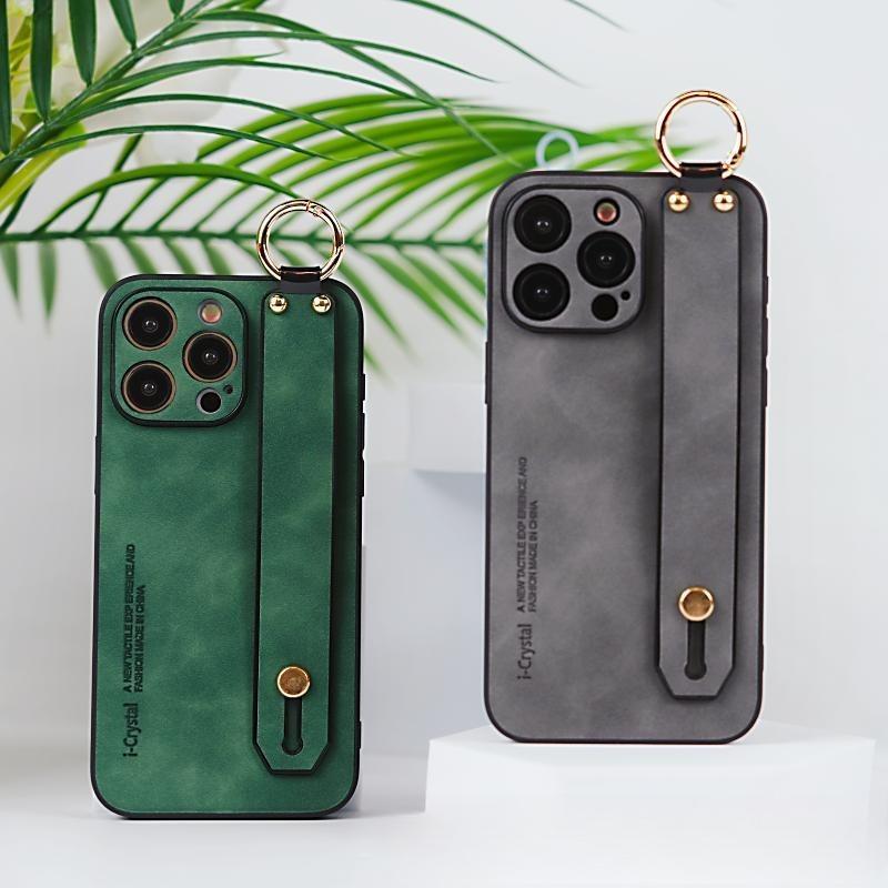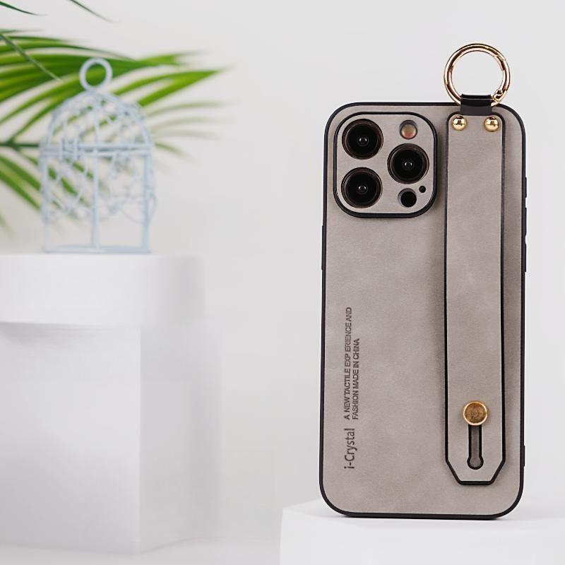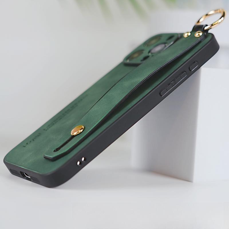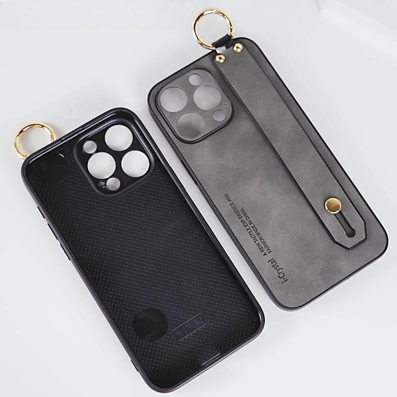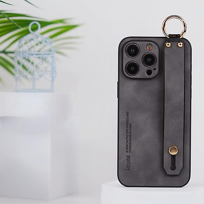 For iPhone 16ProMax 16 15 14 13 12 Case With Wristband, Matte Durable Faux Leather Kickstand Shockproof Phone Case