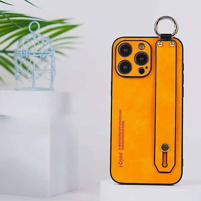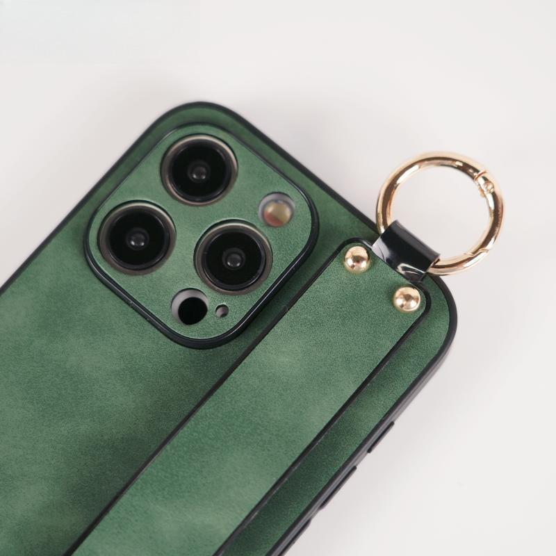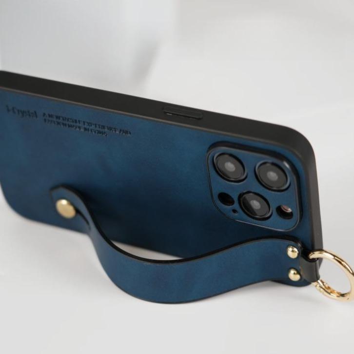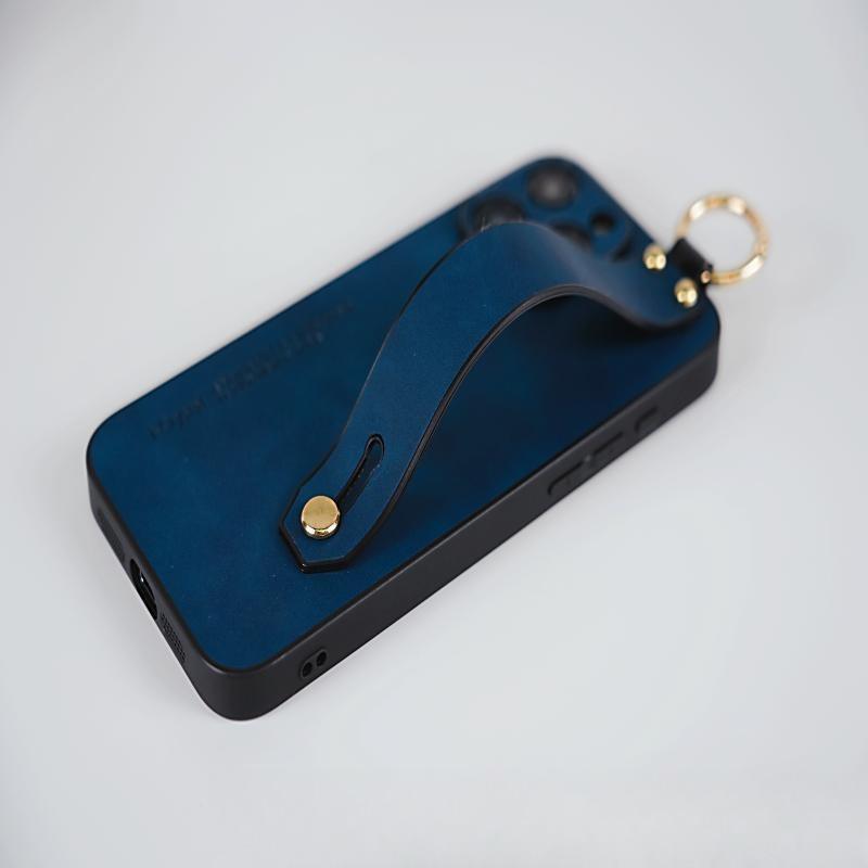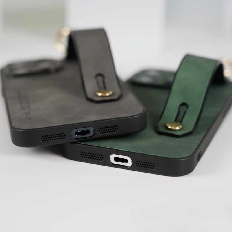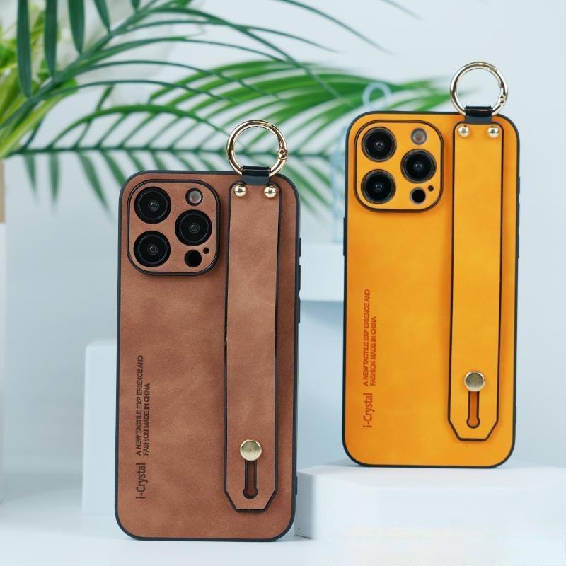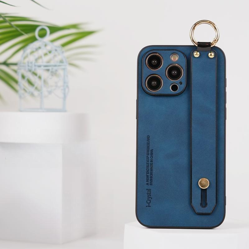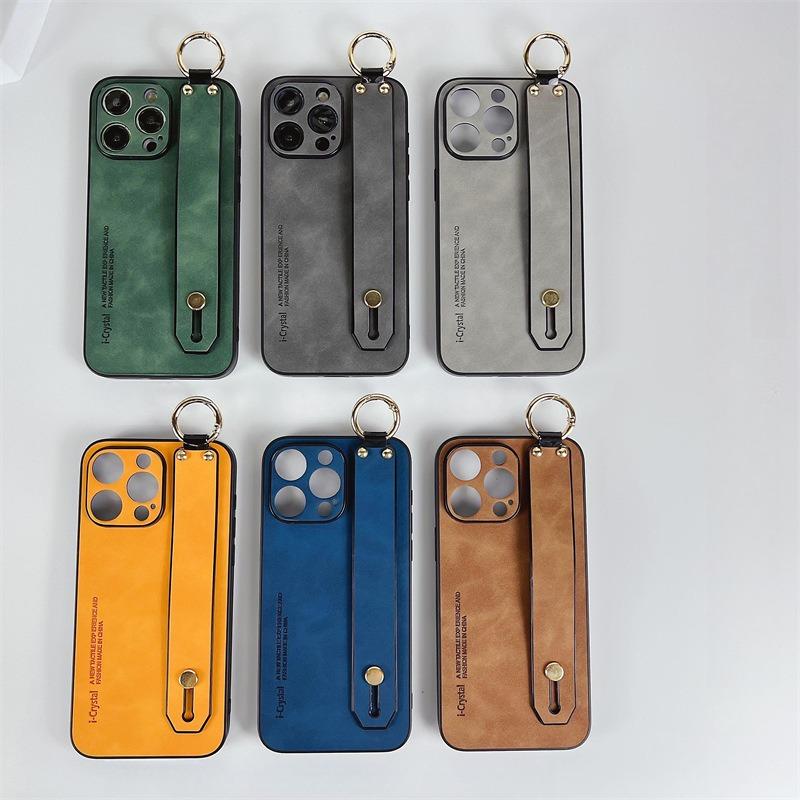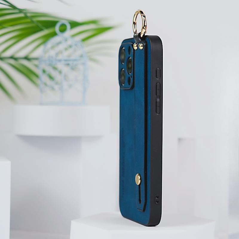 For iPhone 16ProMax 16 15 14 13 12 Case With Wristband, Matte Durable Faux Leather Kickstand Shockproof Phone Case