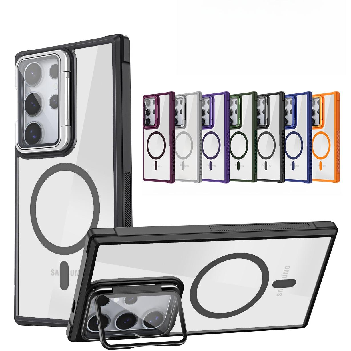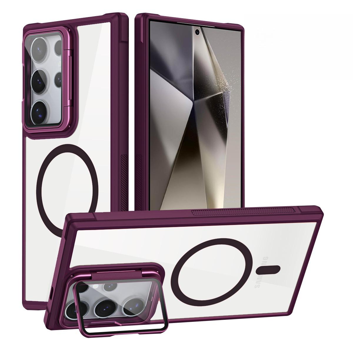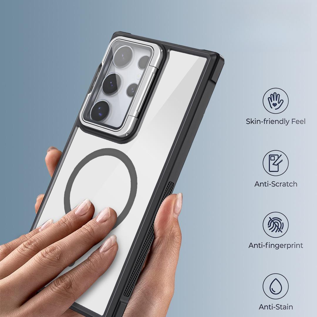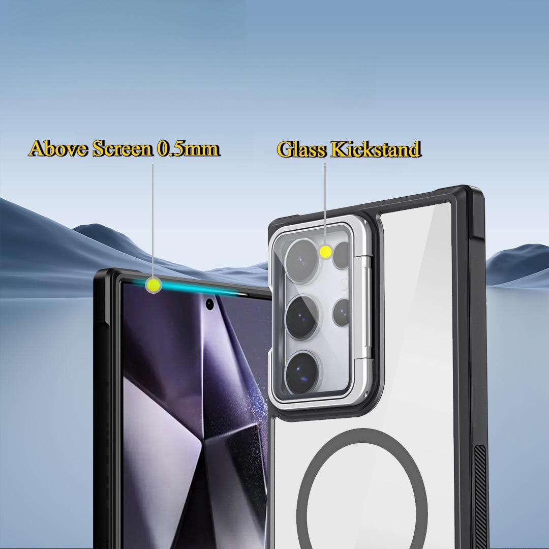For Samsung S25Ultra S25 S24 S23 S21FE S20FE Strong Magnetic Phone Case, Glass Camera Kickstand Protection, HD Acrylic Four Corner Shockproof Bumper Hand Feel Hard Full Cover
