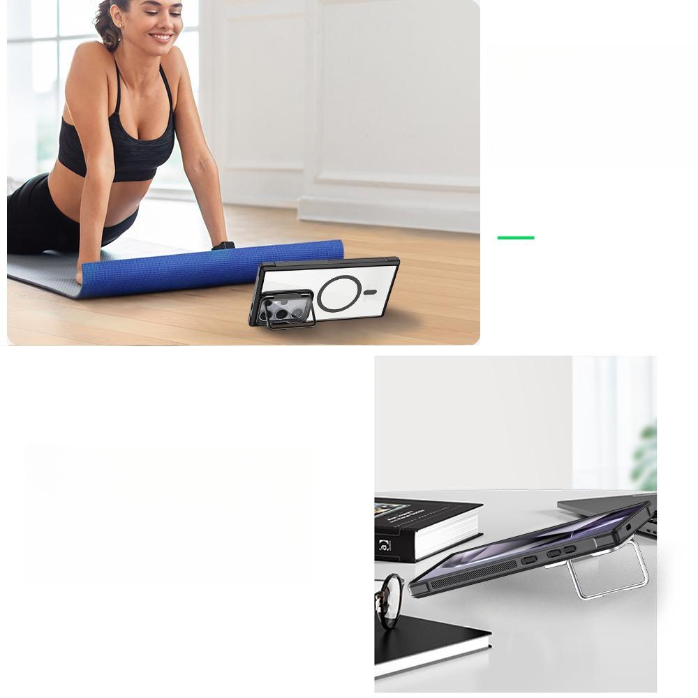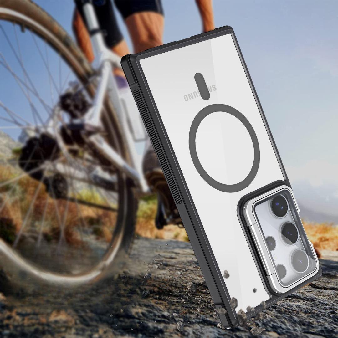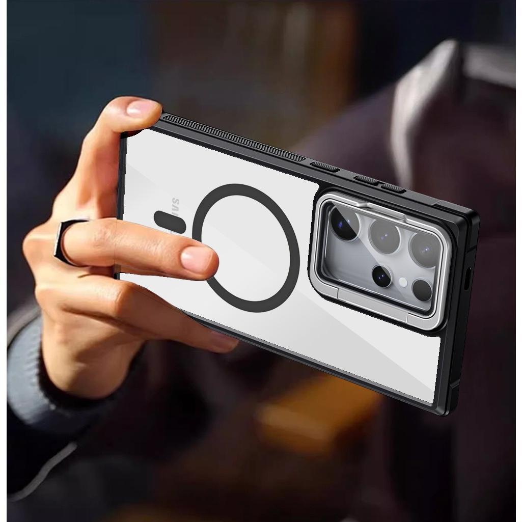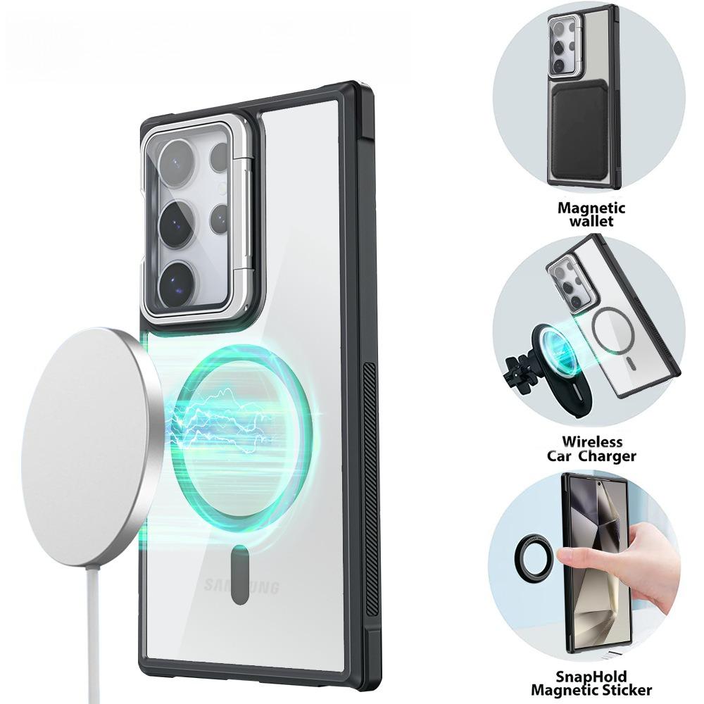 For Samsung S25Ultra S25 S24 S23 S21FE S20FE Strong Magnetic Phone Case, Glass Camera Kickstand Protection, HD Acrylic Four Corner Shockproof Bumper Hand Feel Hard Full Cover
