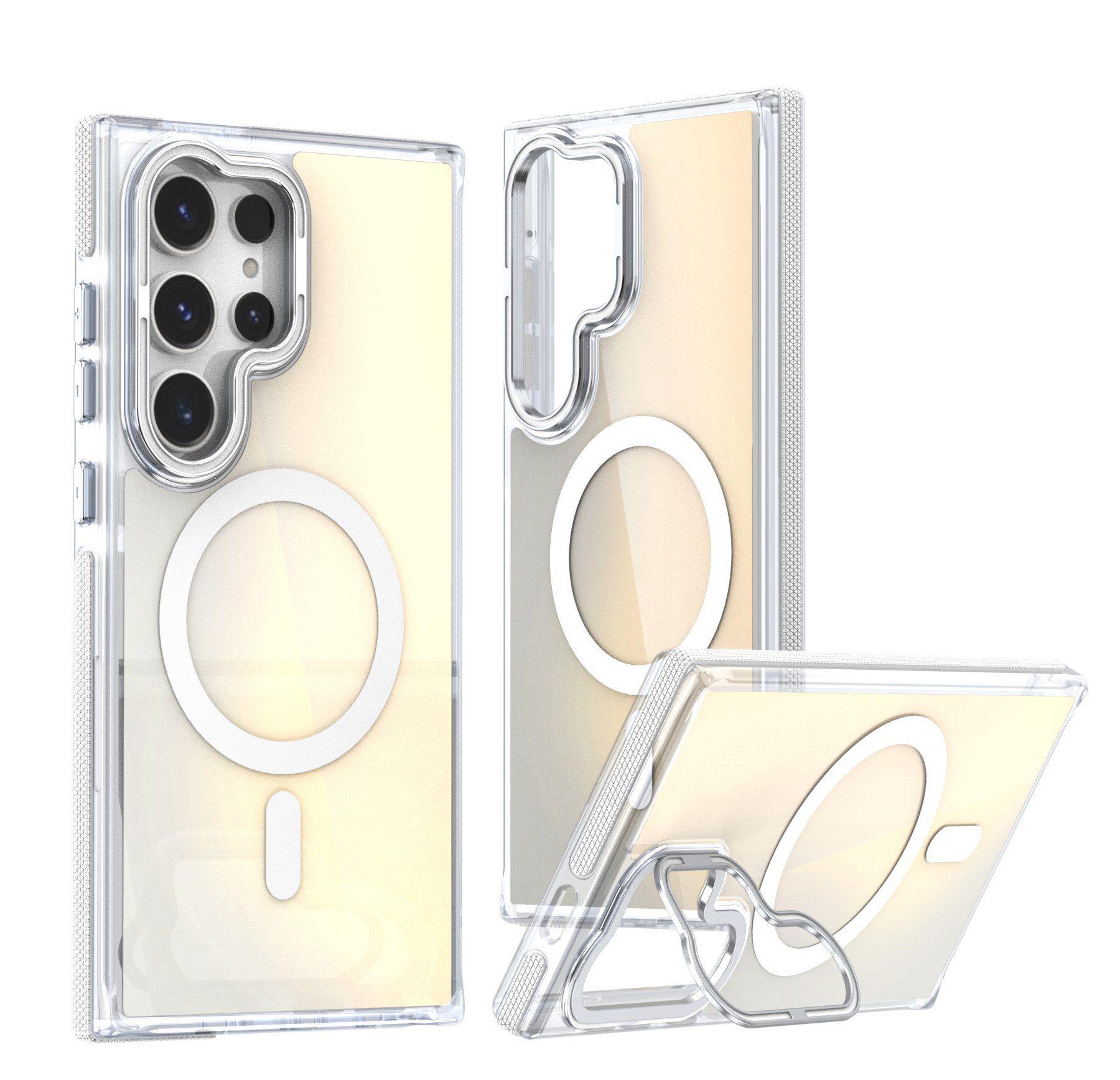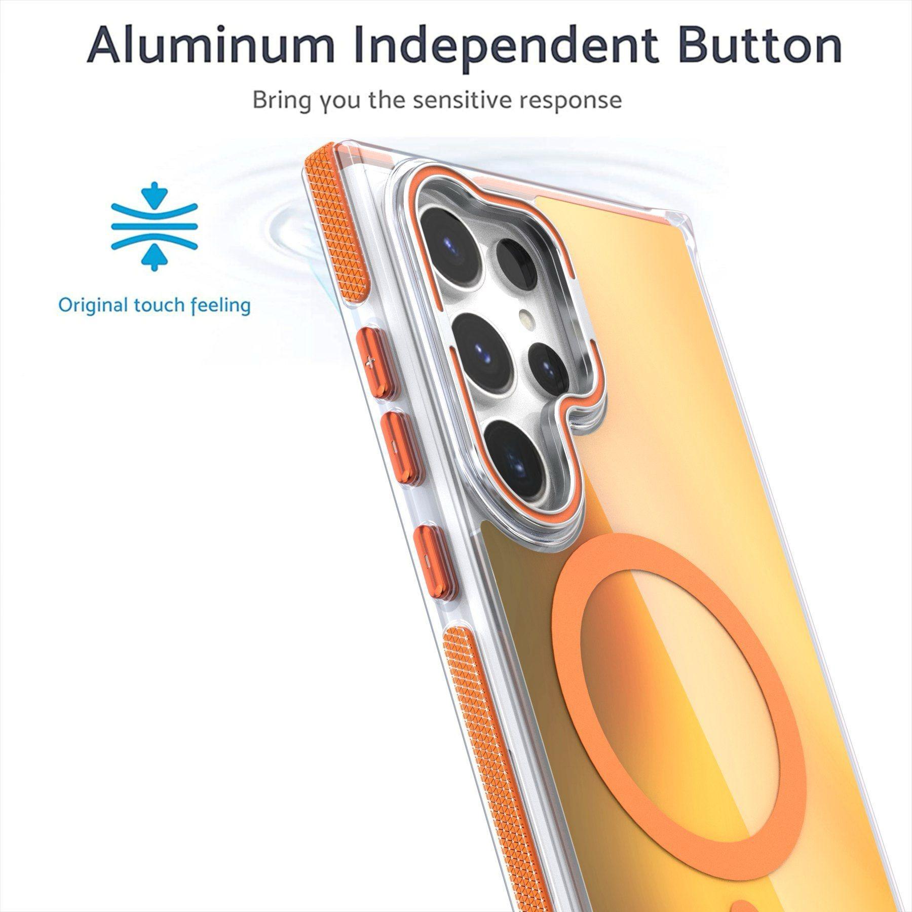 Laser Gradient Chameleon Camera Kickstand Strong Magnetic Wireless Charging Phone Case For Samsung S25Ultra S25 S24 S23 S22 Metal Frame Acrylic Shockproof Hard Cover
