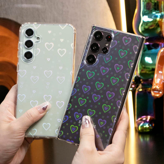 For Samsung S25Ultra S25 S24FE S24Ultra S23 S22 A55 A35 A25 A15 Plus Ultra Phone Case, Clear Laser Love Heart, Glitter Shockproof Hard Full Cover
