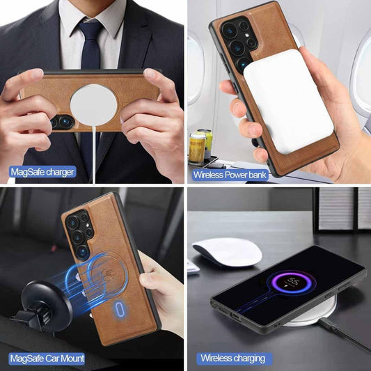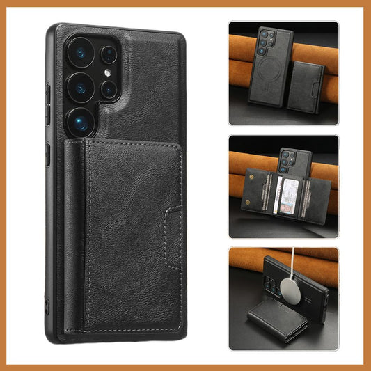 For Samsung S25 S24 S23 A16 A15 A36 A35 A56 A55 A53 Leather Phone Case with Strong Magnetic Wallet, Anti-Fall Card Bag Kickstand for Magsafe Shockproof Business Hard Full Cover