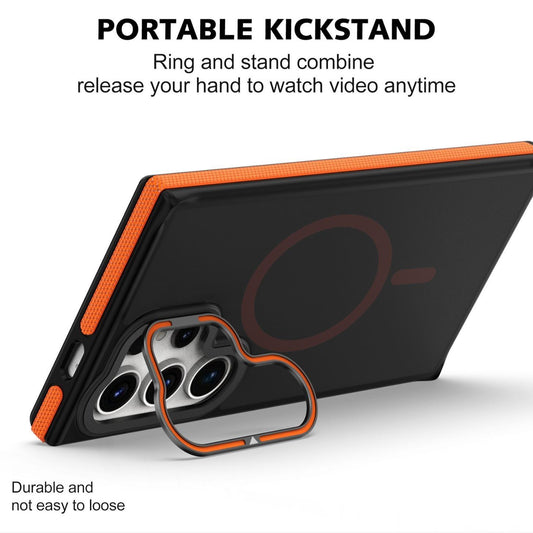 For Samsung S25Ultra S25 S24 S23FE A15 A14 A25 A24 A34 A35 A54 A55 Strong Magnetic Phone Case, Metal Camera Kickstand Protection, Elegant Matte Case Shockproof Bumper Hard Full Cover