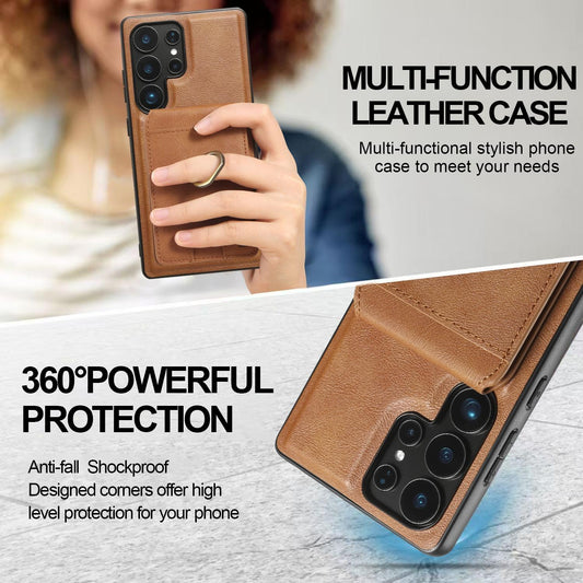 For Samsung S25 S24 S23 A16 A15 A36 A35 A56 A55 A53 Leather Phone Case with Strong Magnetic Wallet Ring Stand, Anti-Fall Card Bag Kickstand for Magsafe Shockproof Business Hard Full Cover