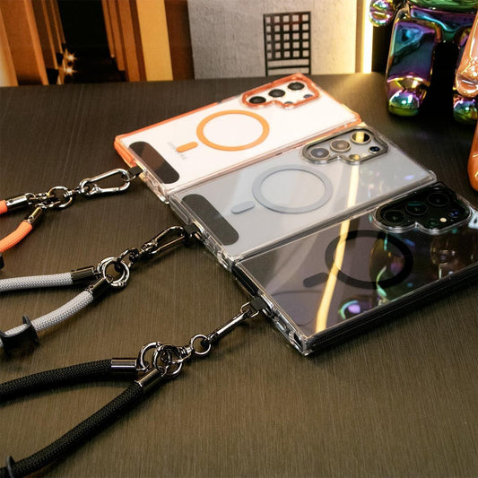 Clear Dual Color Strong Magnetic Wireless Charging Case For Samsung S25Ultra S24+ S23FE A14 A15 A16 A24 A25 A34 A35 A54 A55 Metal Camera Frame Bumper Acrylic Hard Cover with Adjustable Wristband