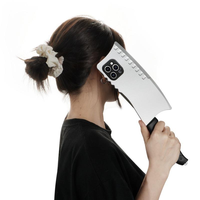 Creativity TPU Spoof Kitchen Knife Pattern Plating Len Protection Phone Case For iPhone 16ProMax 15 14 13 12 11 XR X/XS XSMax Hard Full Cover