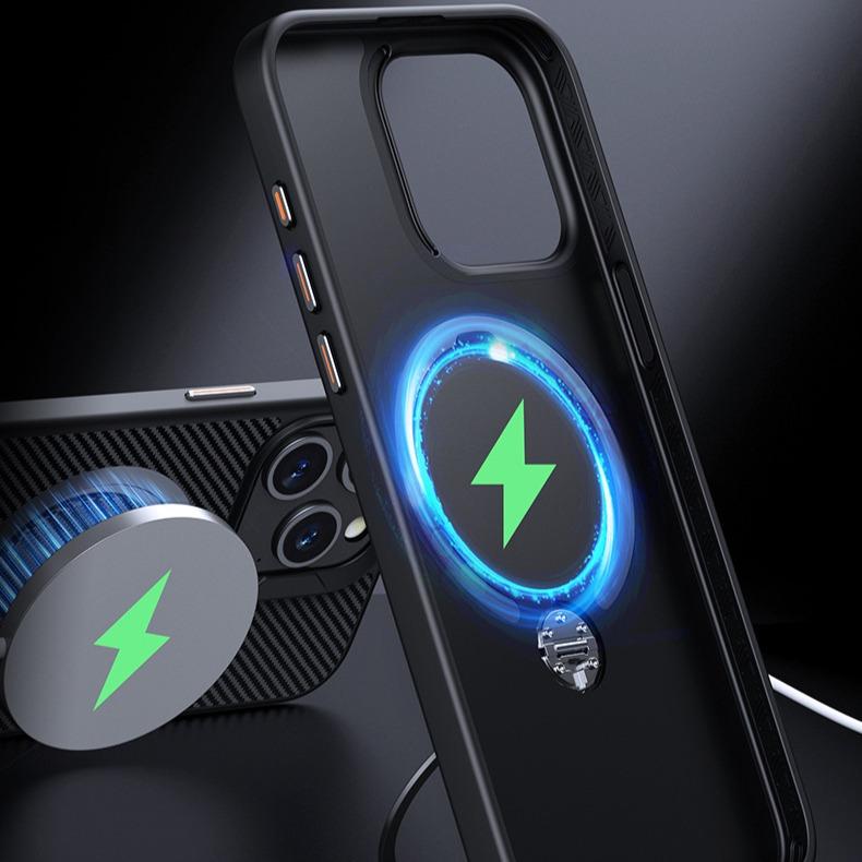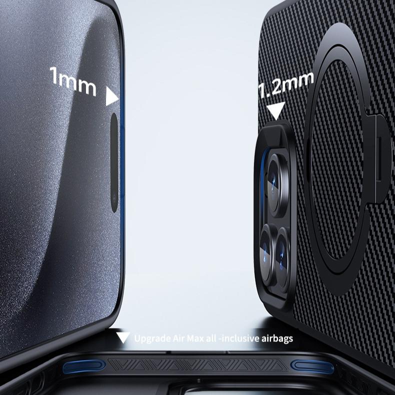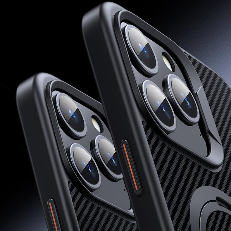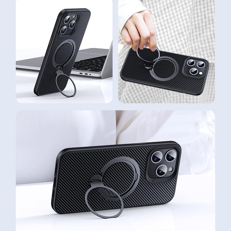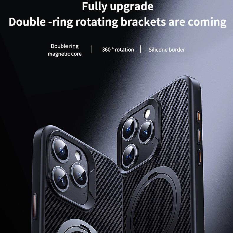 Double Ring Carbon Fiber Pattern Slim PC Strong Magnetic Phone Case with 360 Rotating Metal Kickstand For iPhone 16ProMax 15 14 13 12 Skin Feel Bumper Shockproof Hard Full Cover