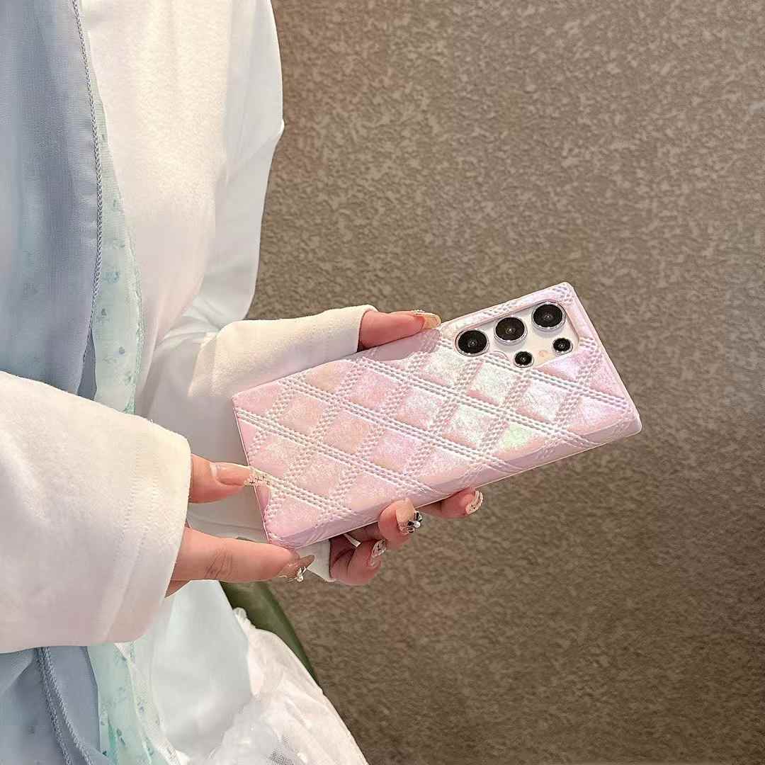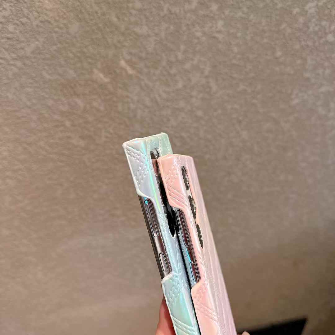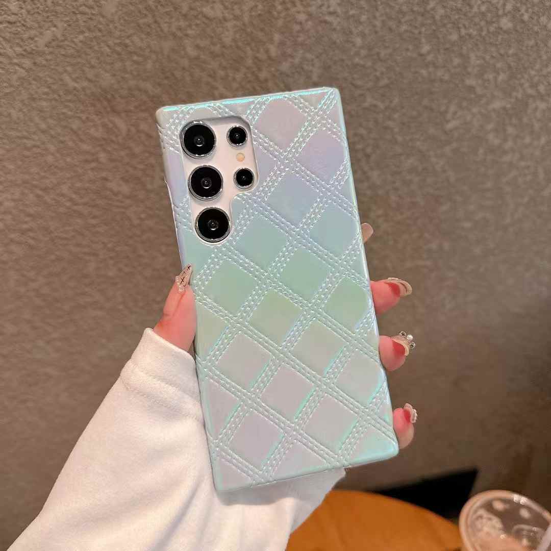 For Samsung S25Ultra S24Ultra S23Ultra S22Ultra Case, Colorful Gradient Laser Quilted Lining Leather Shockproof Hard Full Cover