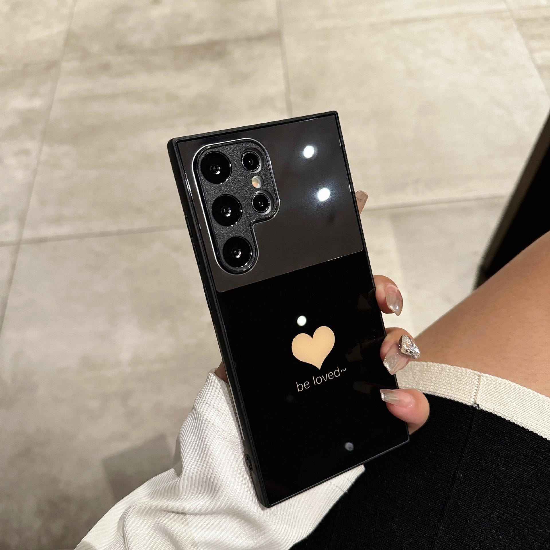 For Samsung S25Ultra S25 S24 S23 S22 S21 Phone Case, Luxury Glitter Mirror Love Heart Plating Acrylic, Camera Protection Hard Full Cover