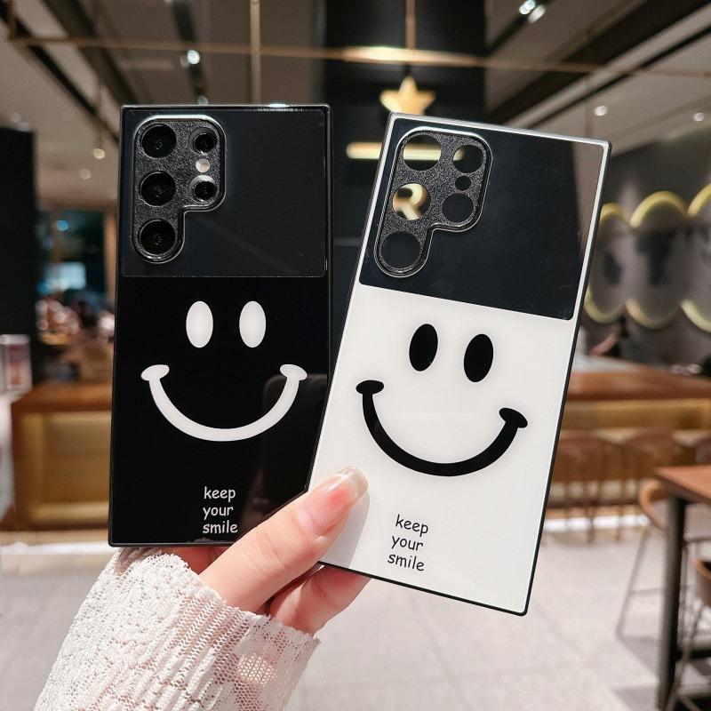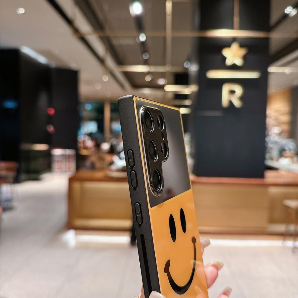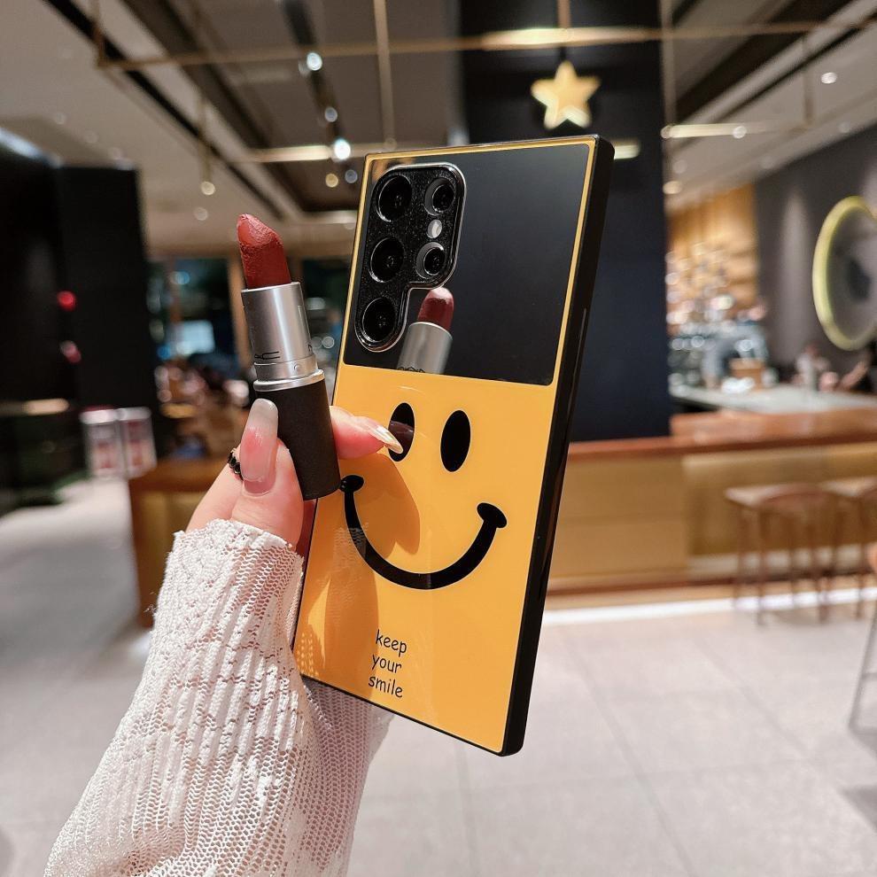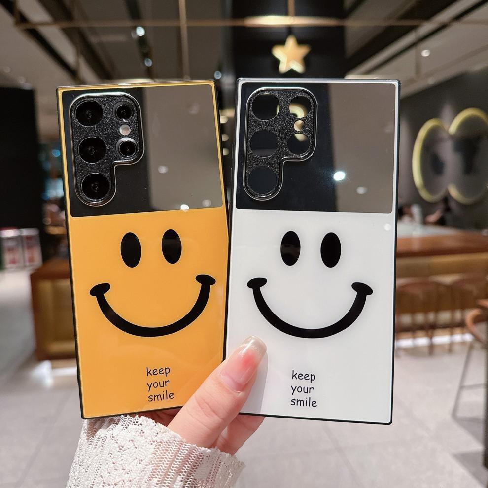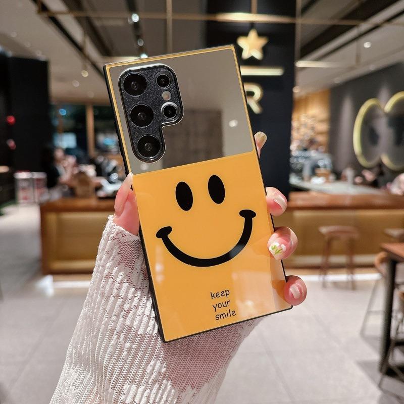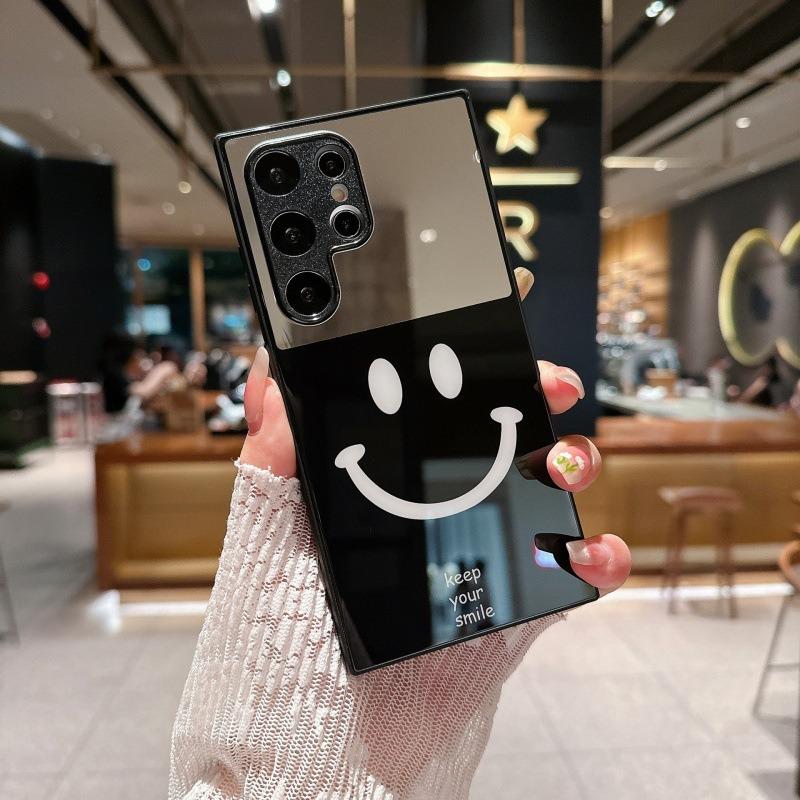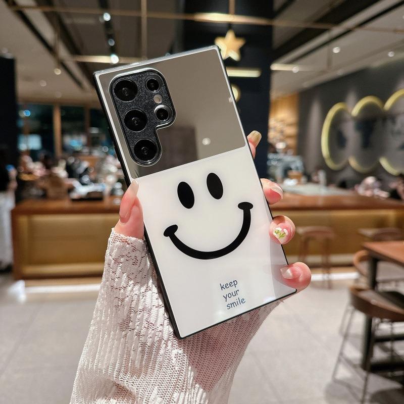 For Samsung S25Ultra S25 S24 S23 S22 S21 Phone Case, Luxury Glitter Mirror Smiling Face Plating Acrylic, Camera Protection Hard Full Cover