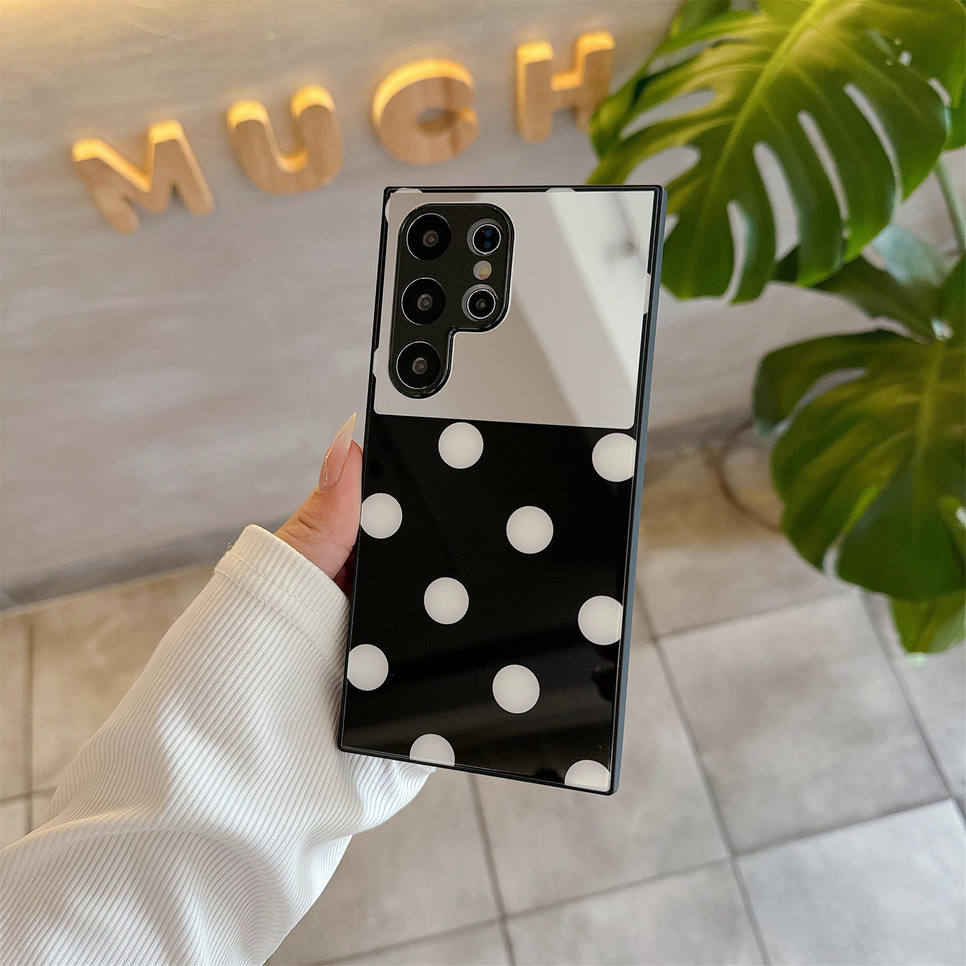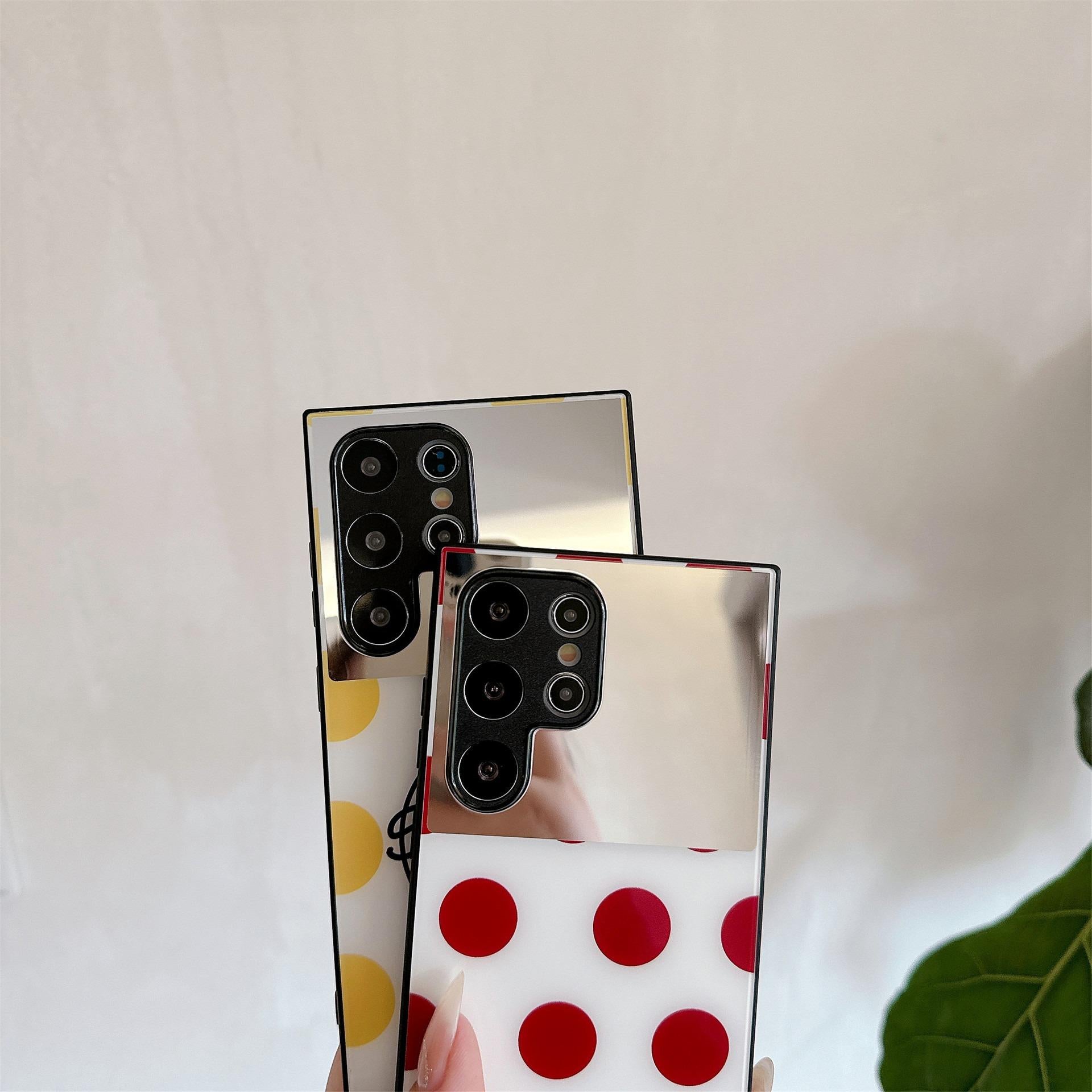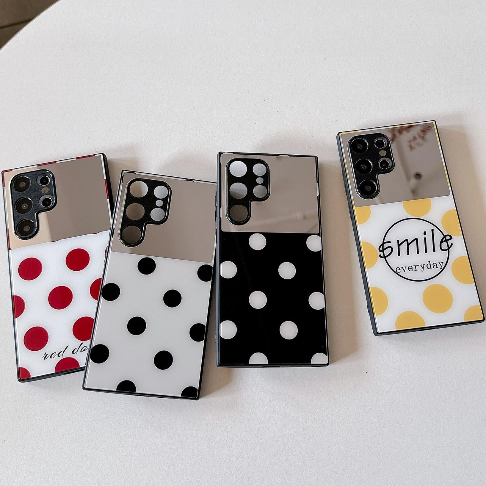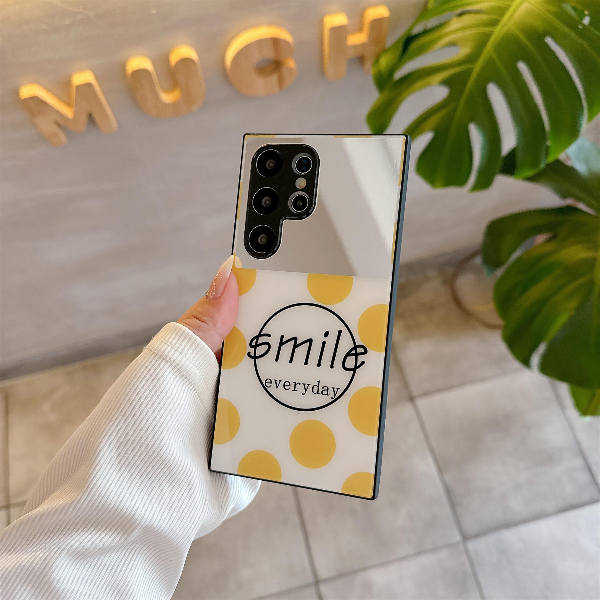 For Samsung S25Ultra S25 S24 S23 S22 S21 Phone Case, Luxury Glitter Mirror Wave Point Smile Plating Acrylic, Camera Protection Hard Full Cover