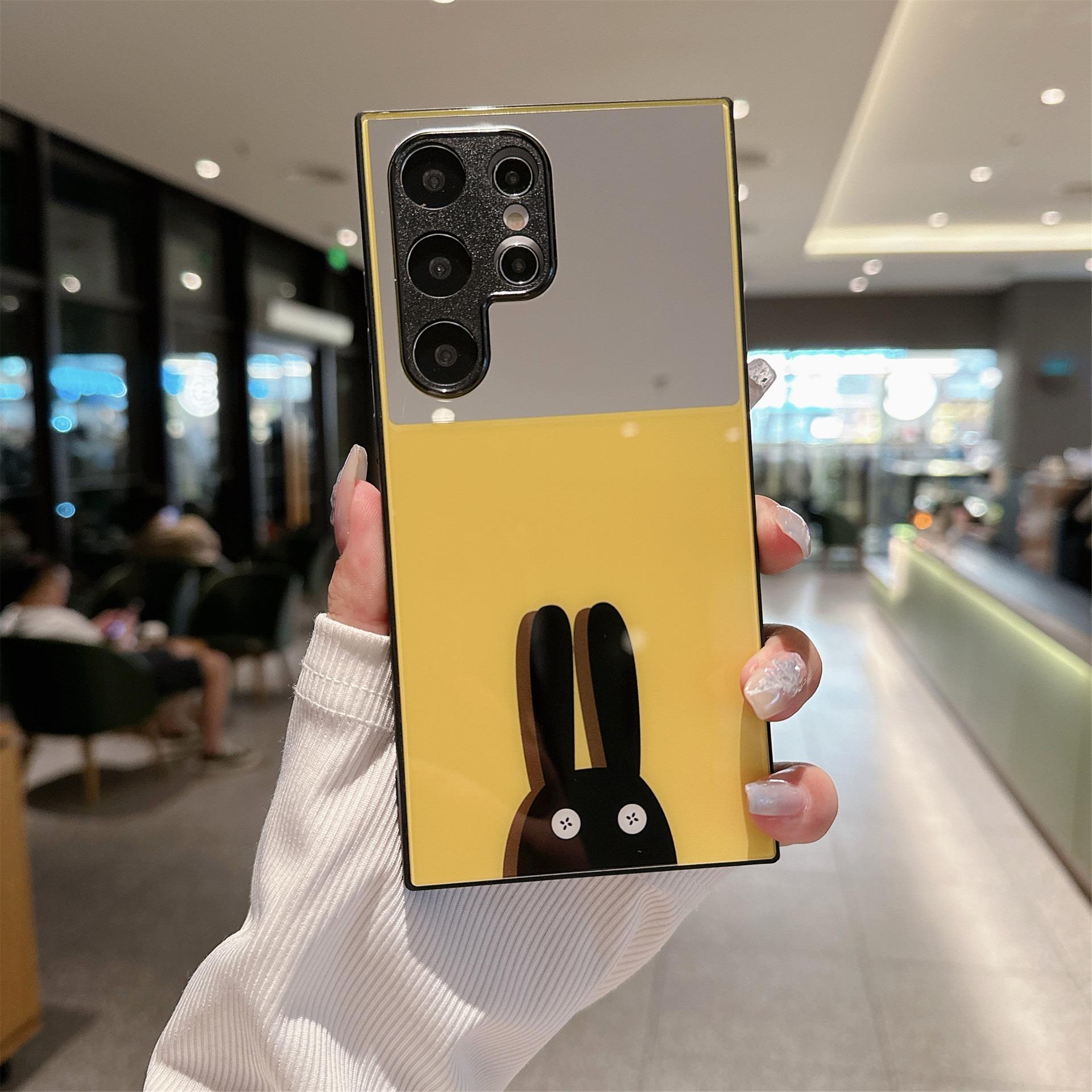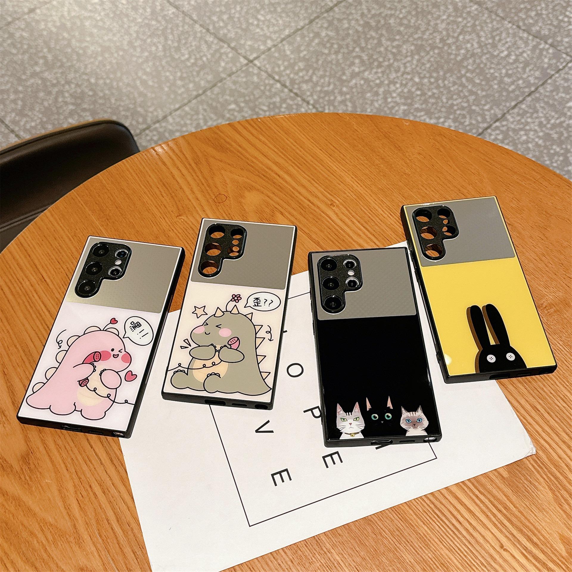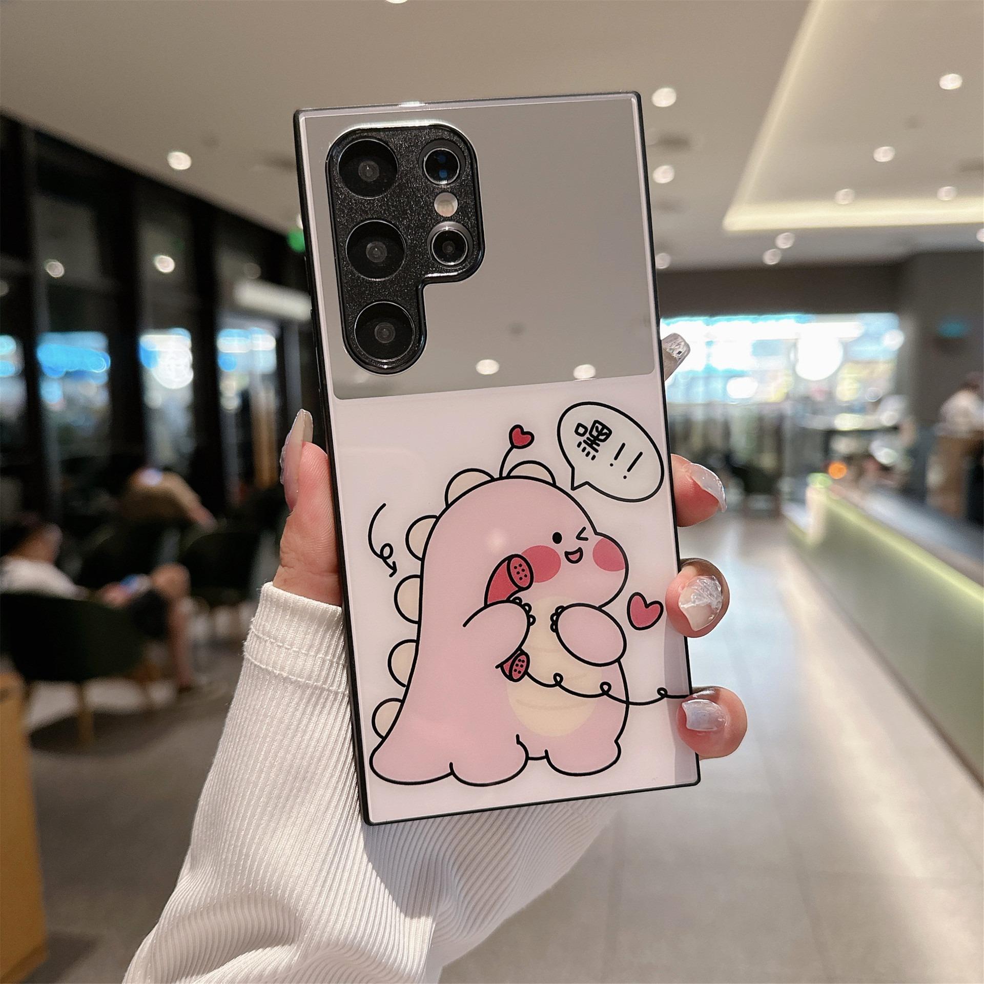 For Samsung S25Ultra S25 S24 S23 S22 S21 Phone Case, Luxury Glitter Rabbit Dinosaur Cat Mirror Cartoon Plating Acrylic, Camera Protection Hard Full Cover