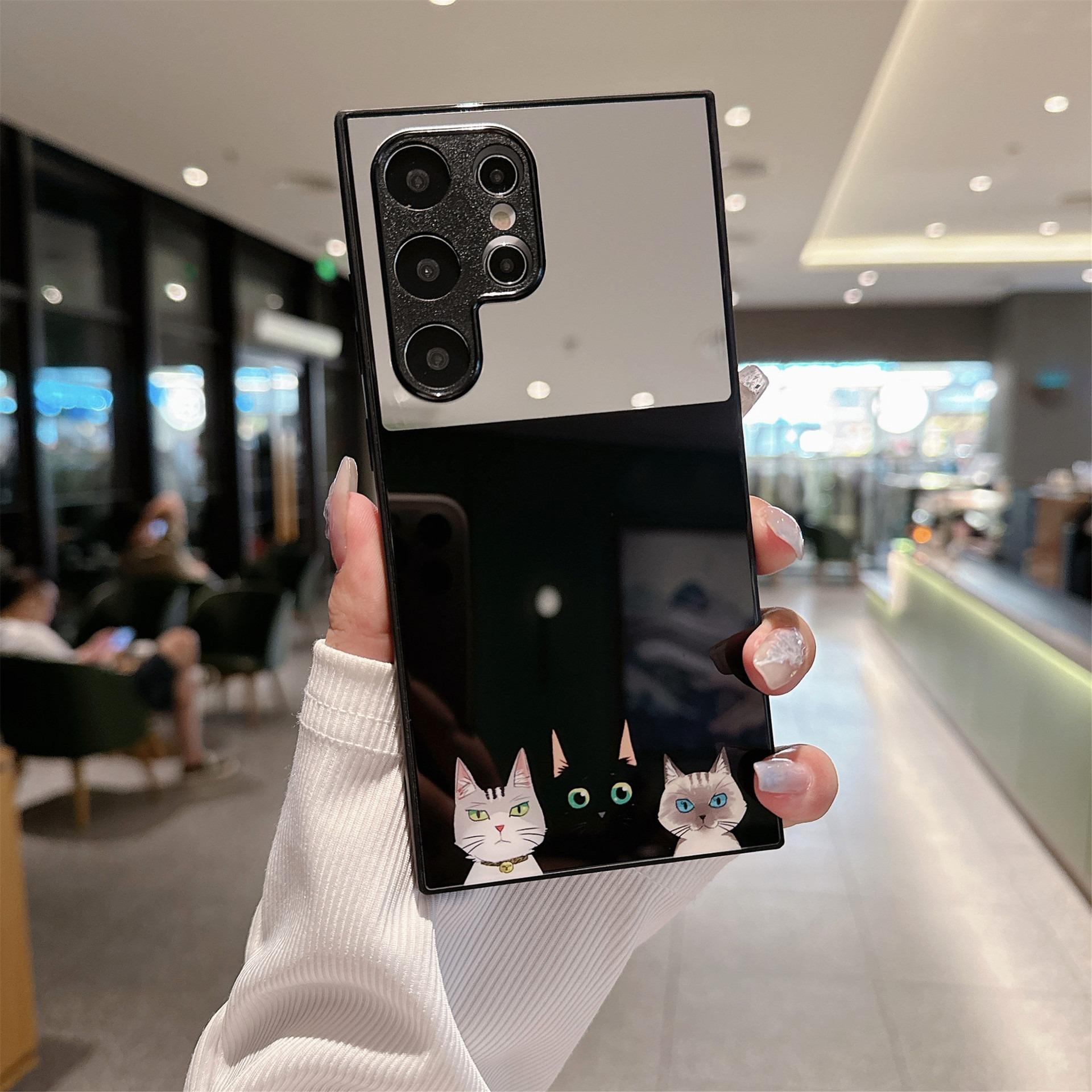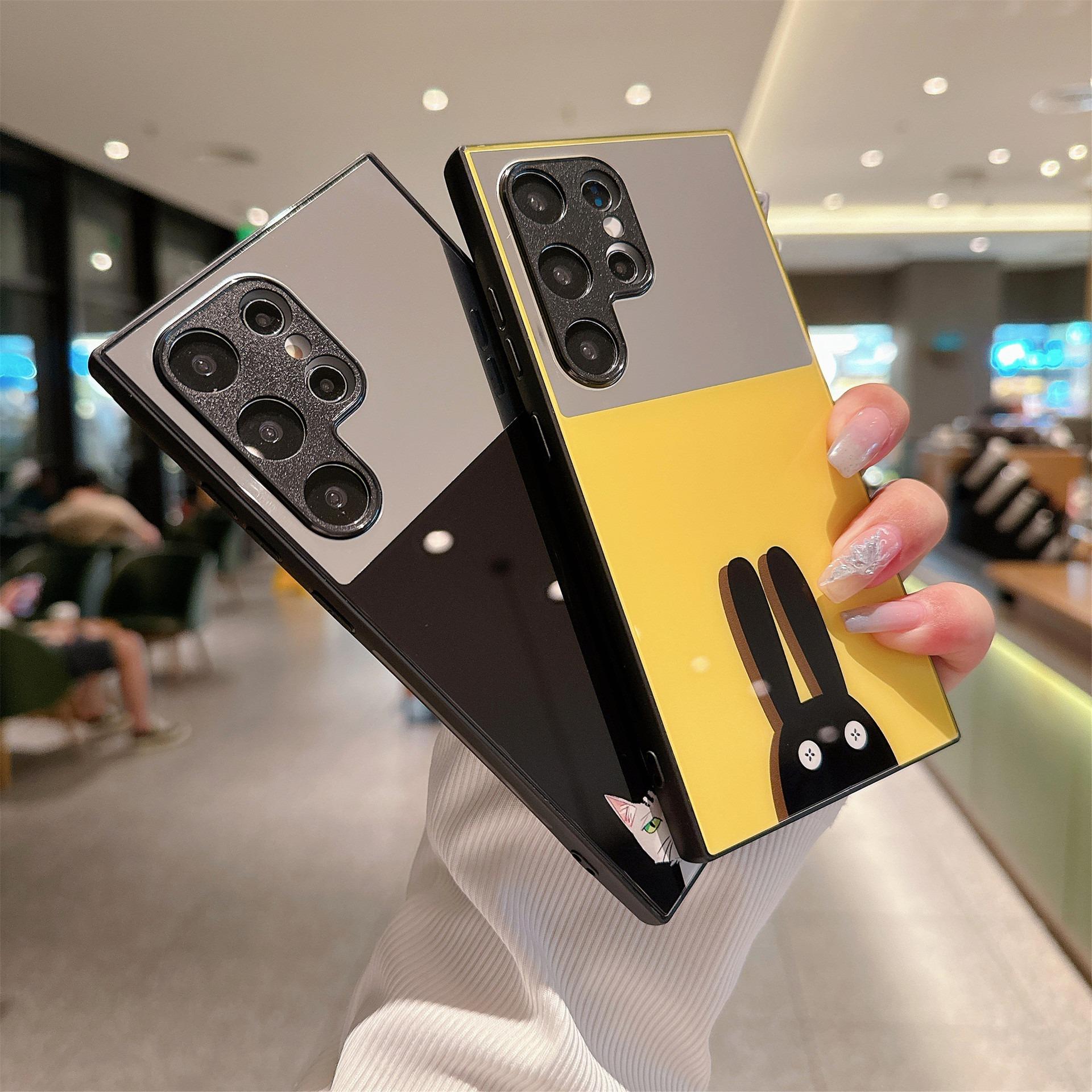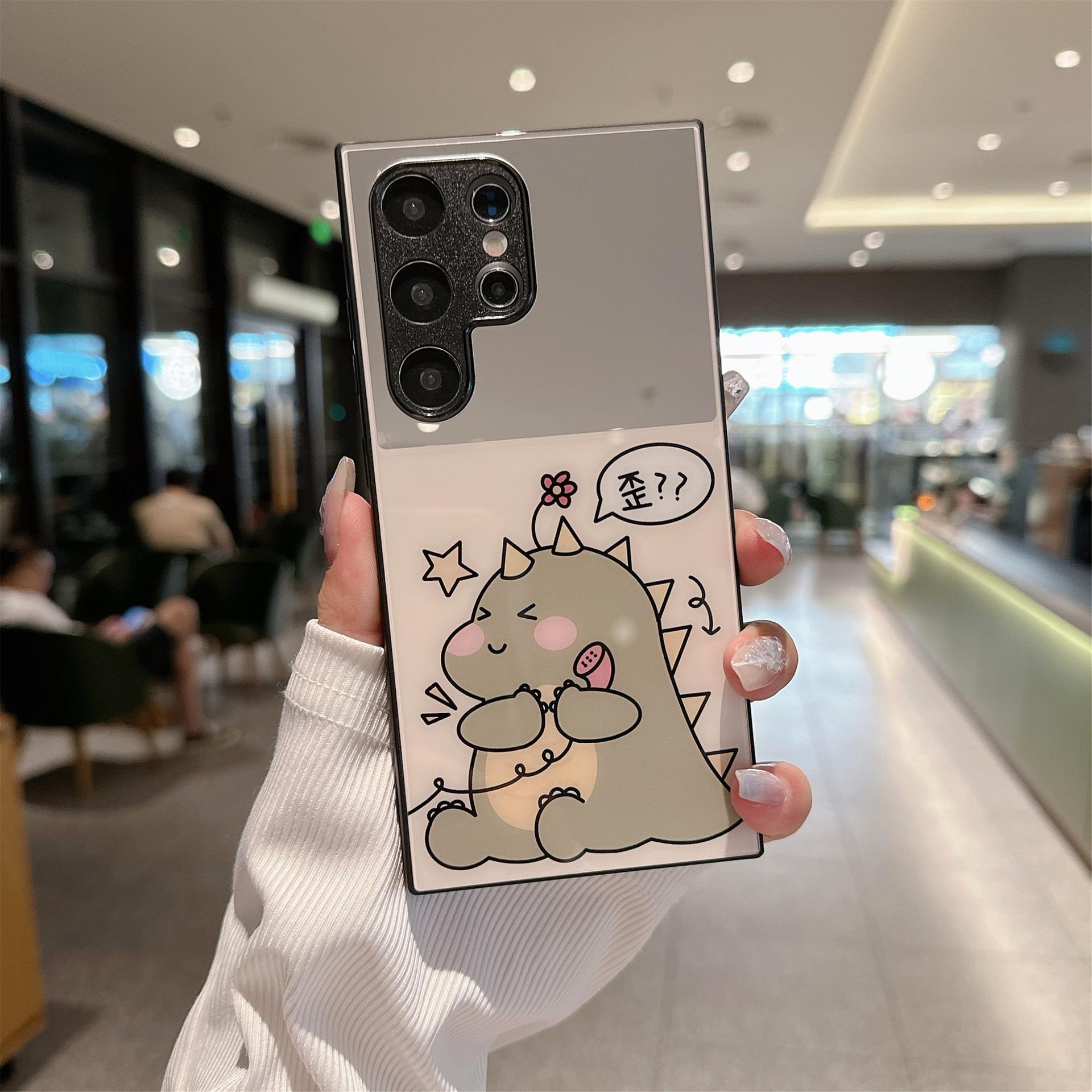 For Samsung S25Ultra S25 S24 S23 S22 S21 Phone Case, Luxury Glitter Rabbit Dinosaur Cat Mirror Cartoon Plating Acrylic, Camera Protection Hard Full Cover