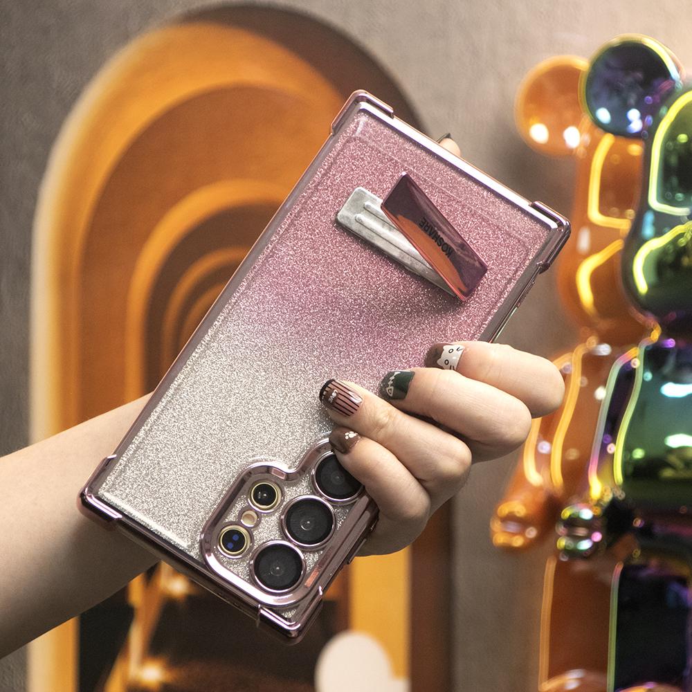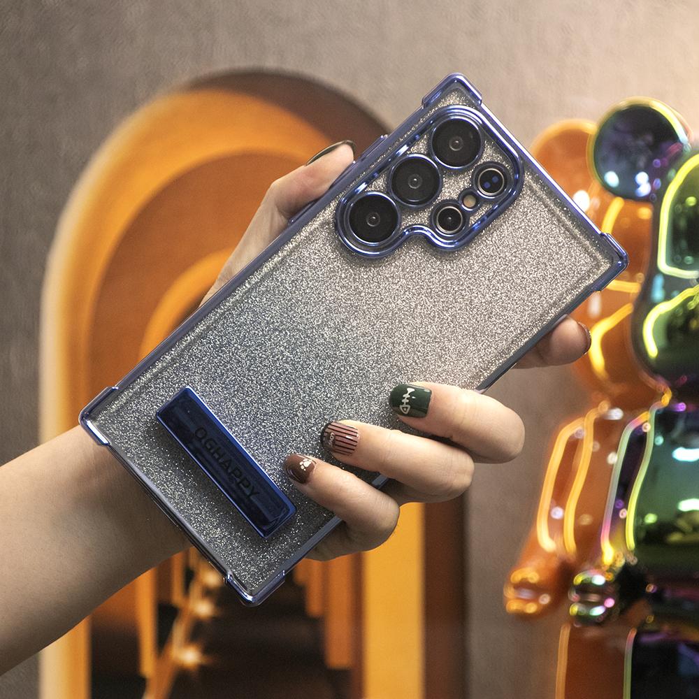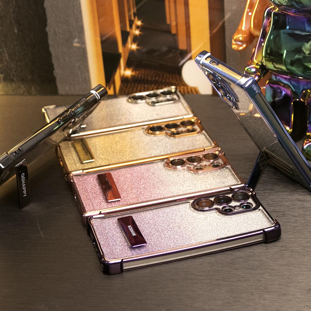 Gradient Plating Four Corners Thin Kickstand Phone Case for Samsung S25Ultra S25 S24 S23 S22 S21 Note20 A53 A54 A55 Hard Acrylic Bumper Full Cover