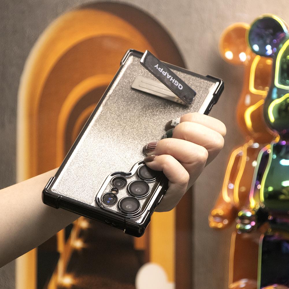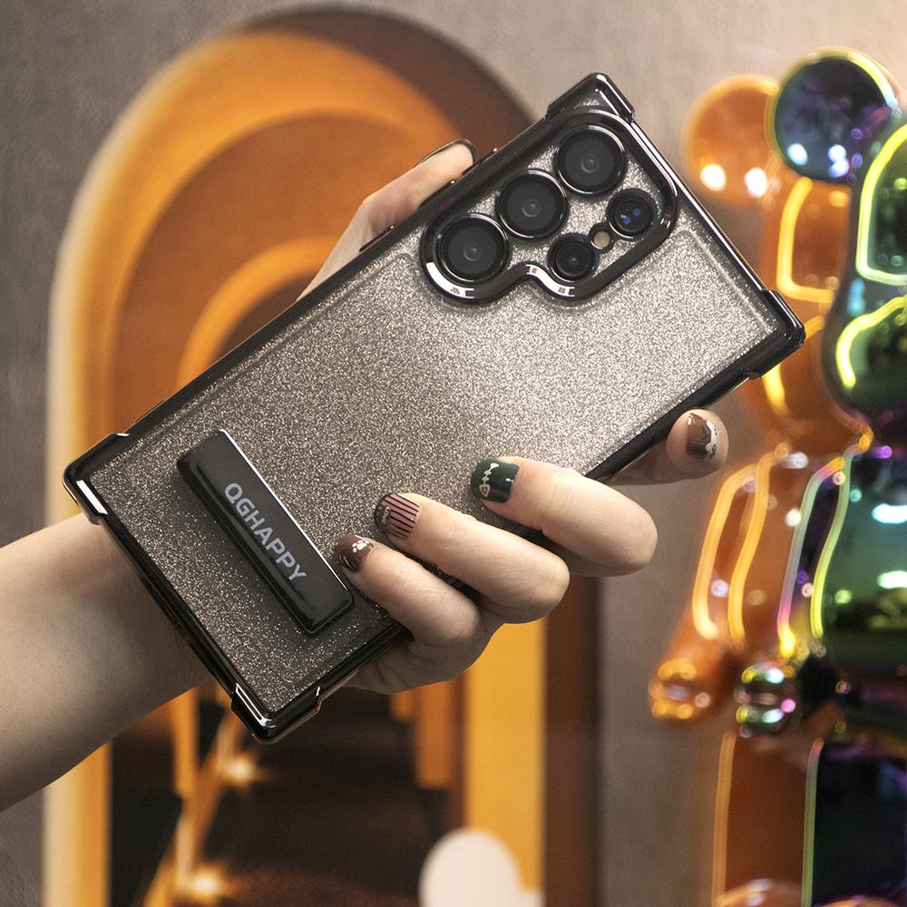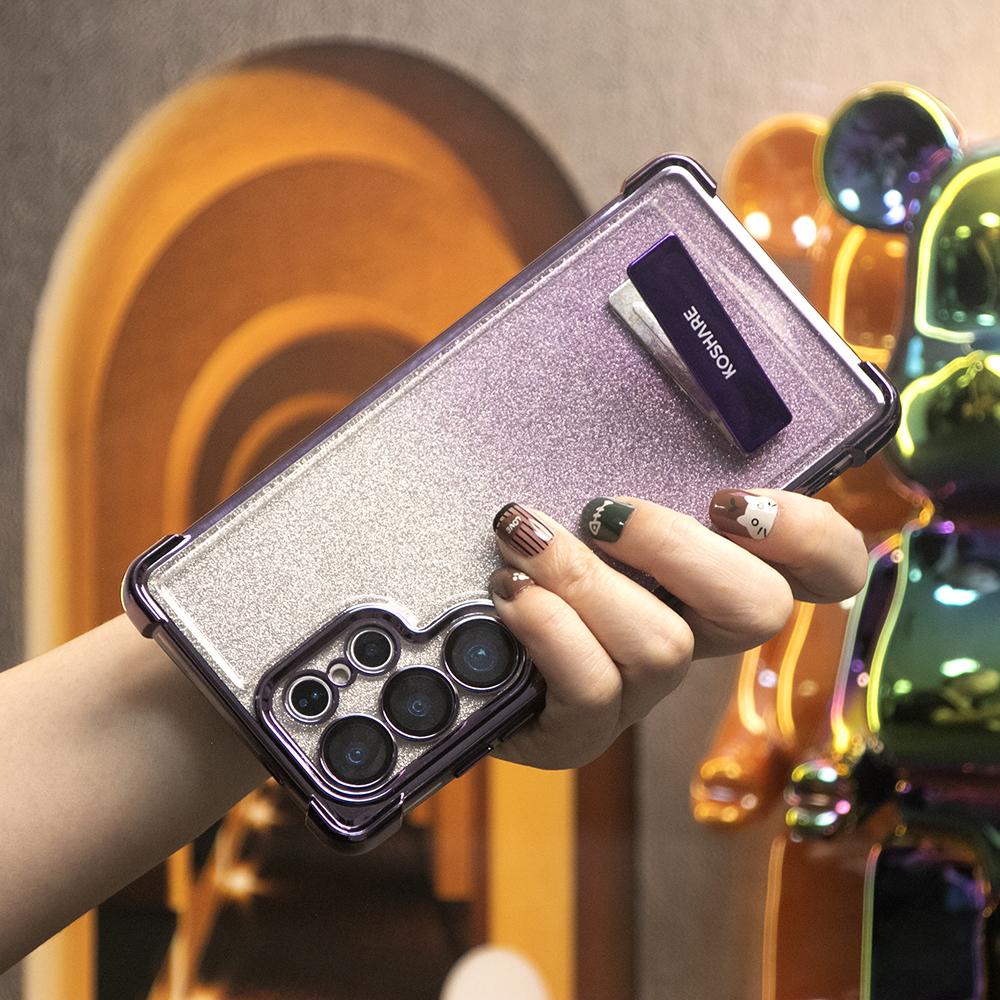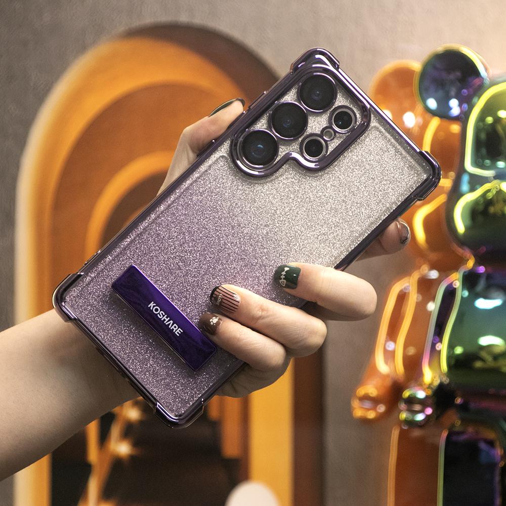 Gradient Plating Four Corners Thin Kickstand Phone Case for Samsung S25Ultra S25 S24 S23 S22 S21 Note20 A53 A54 A55 Hard Acrylic Bumper Full Cover