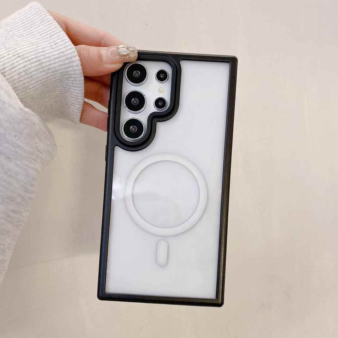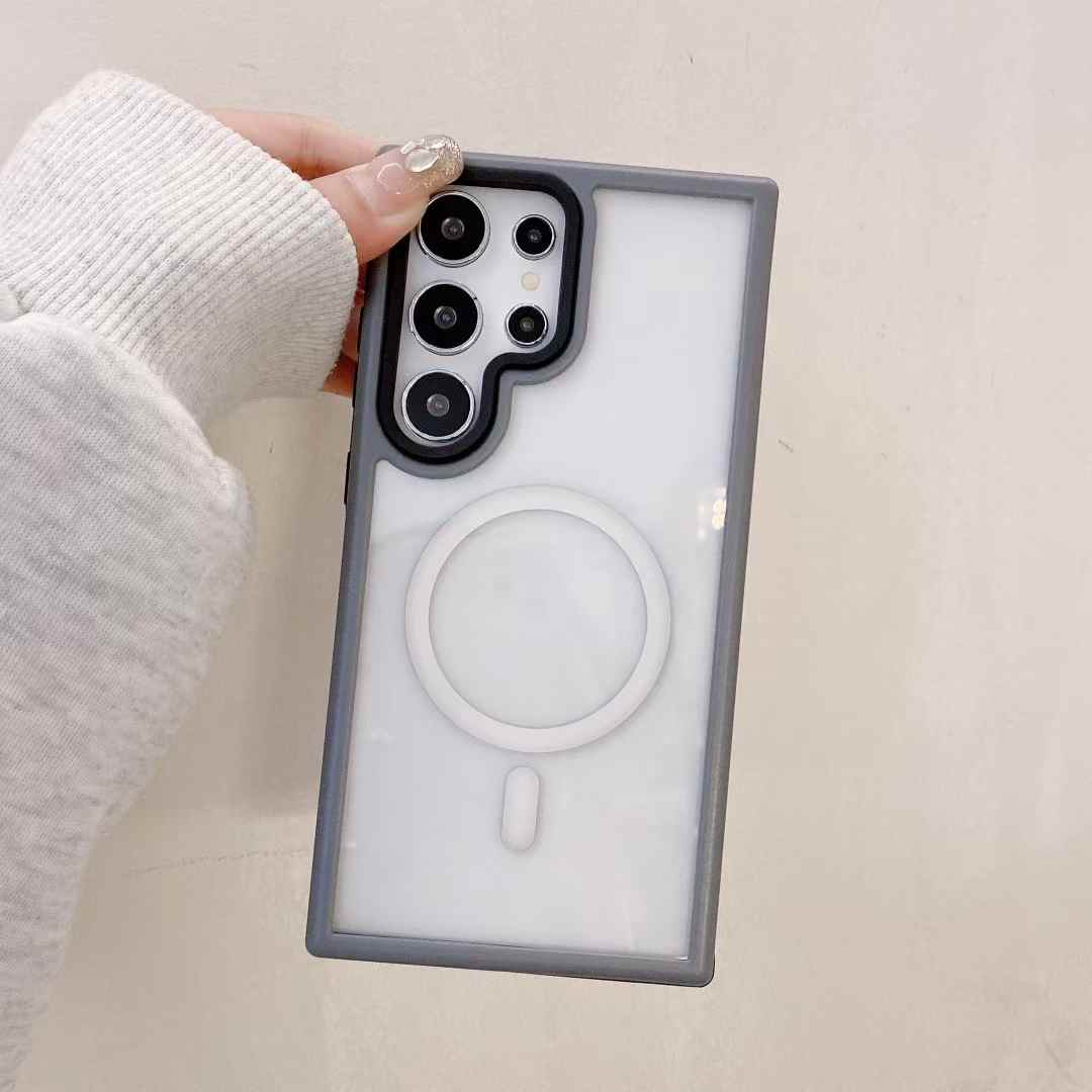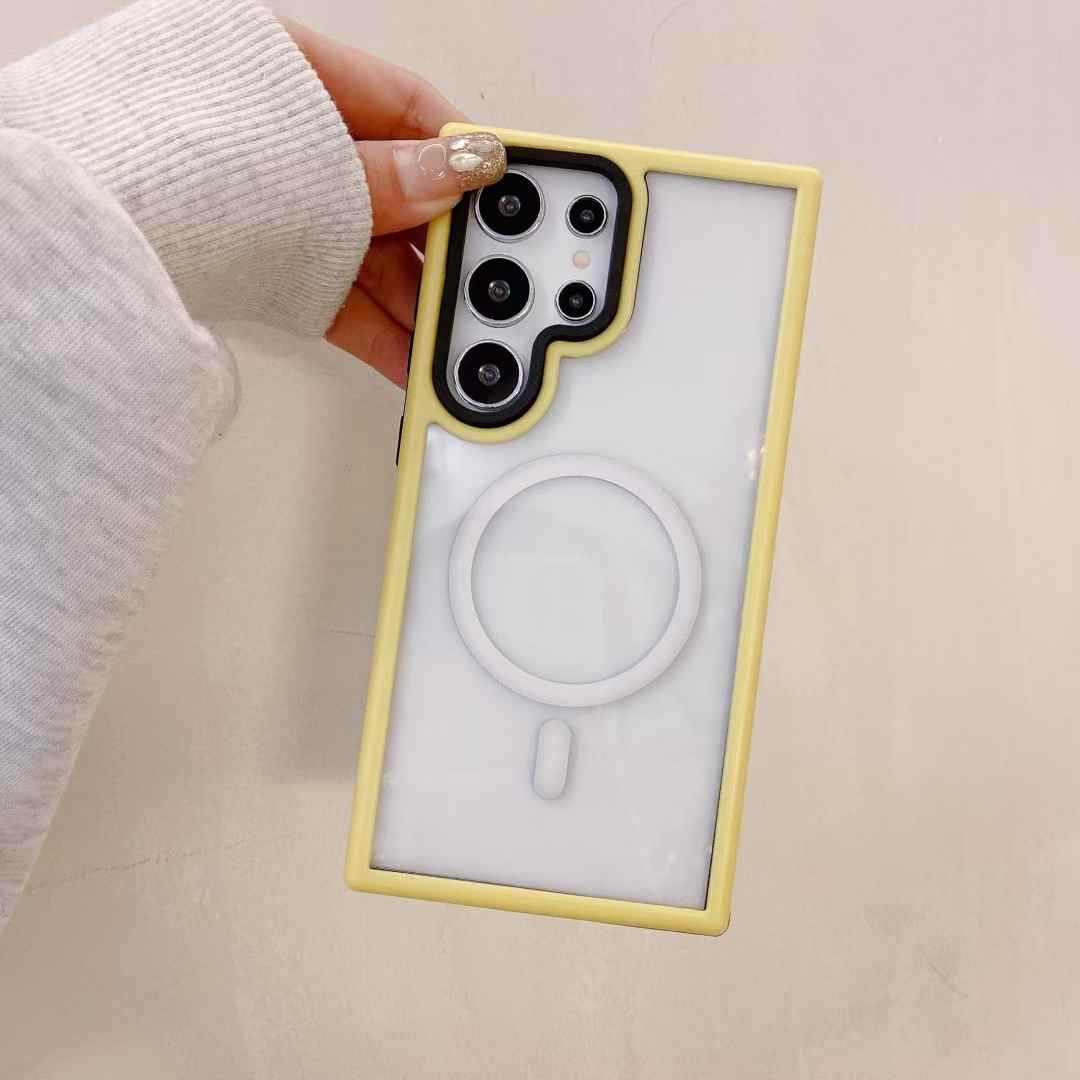Two-tone Macaron Acrylic Transparent Magnetic Len Protection Phone Case For Samsung S25Ultra S25+ S25 S24Ultra S24+ S24, Hard Shockproof Full Cover